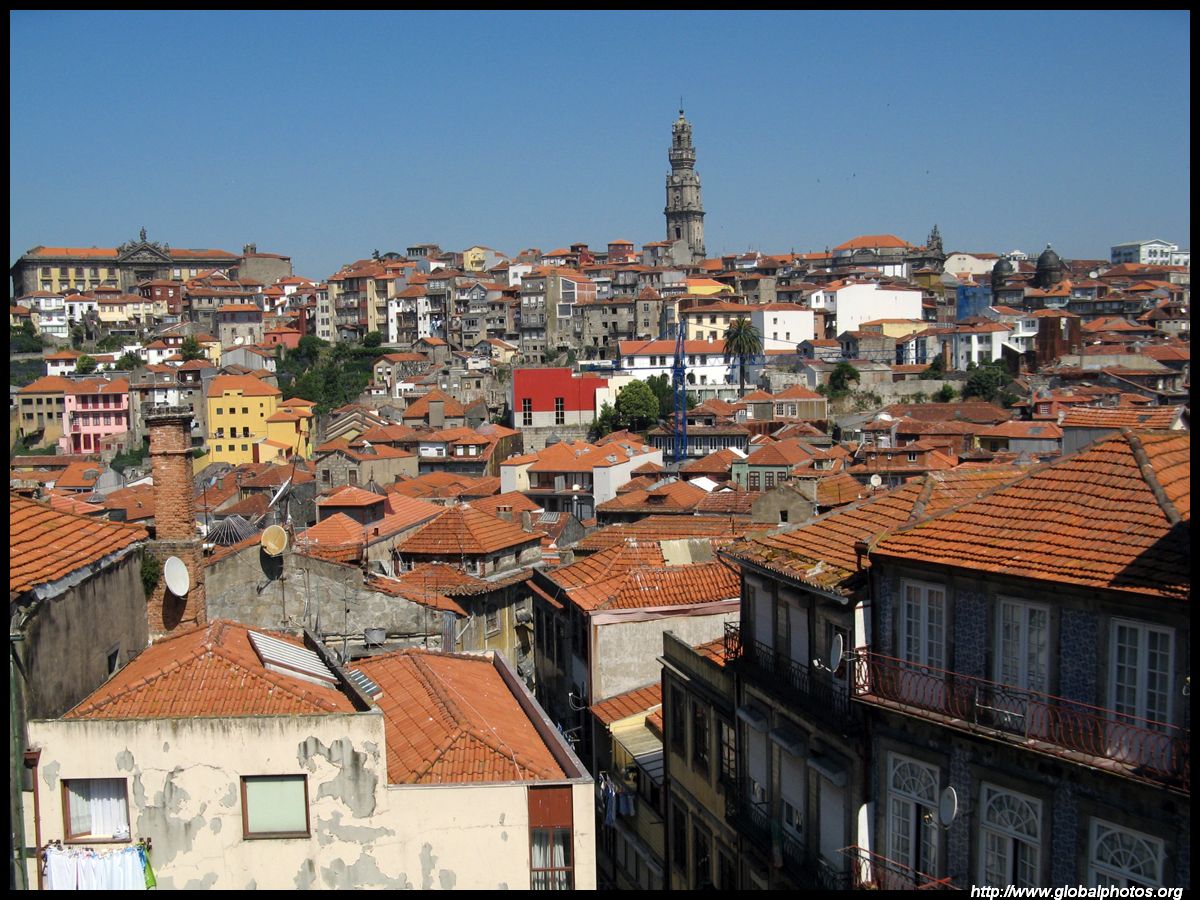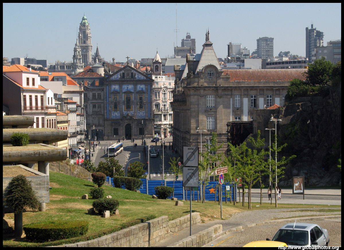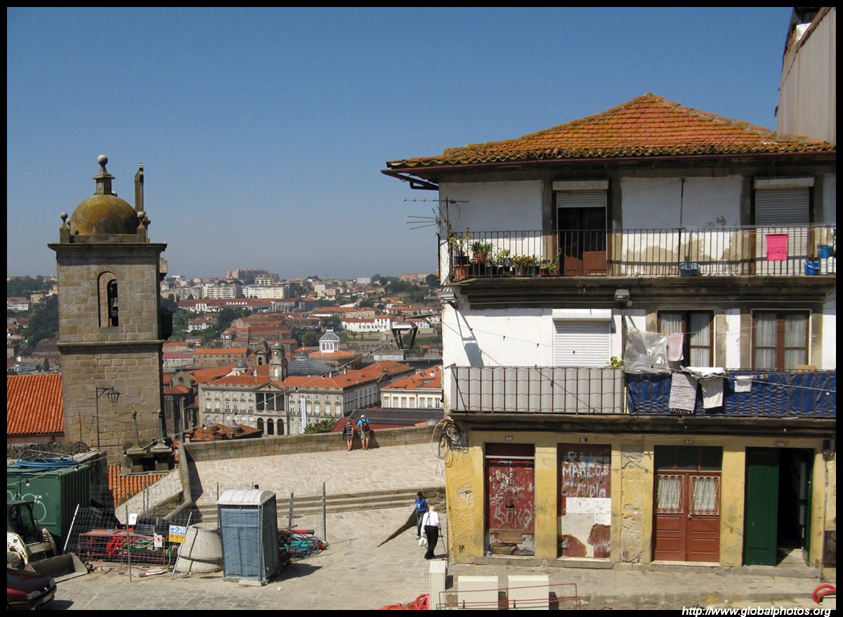 Porto is a hilly city. While the actual distances are not far on a map, going downhill then uphill to the church on the other side pictured here can be an intense work-out!