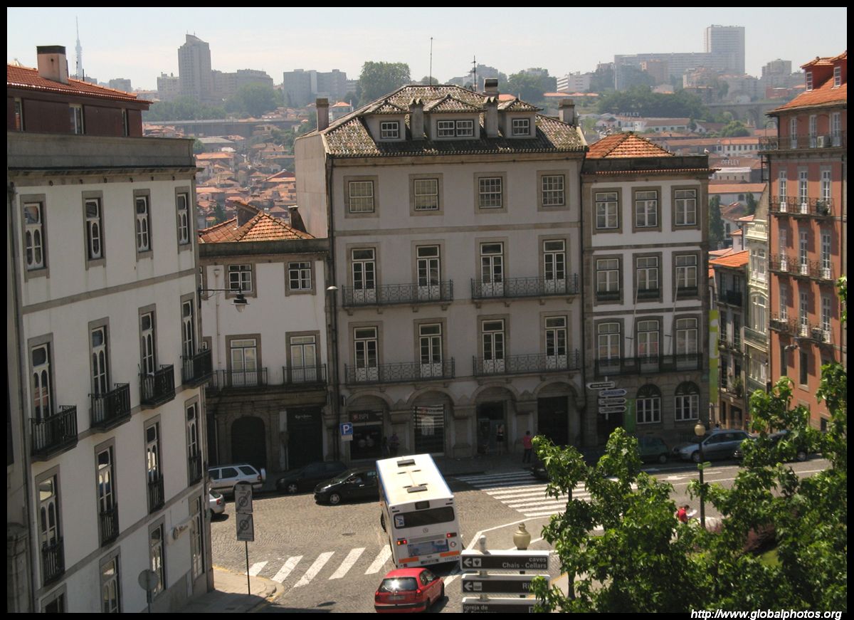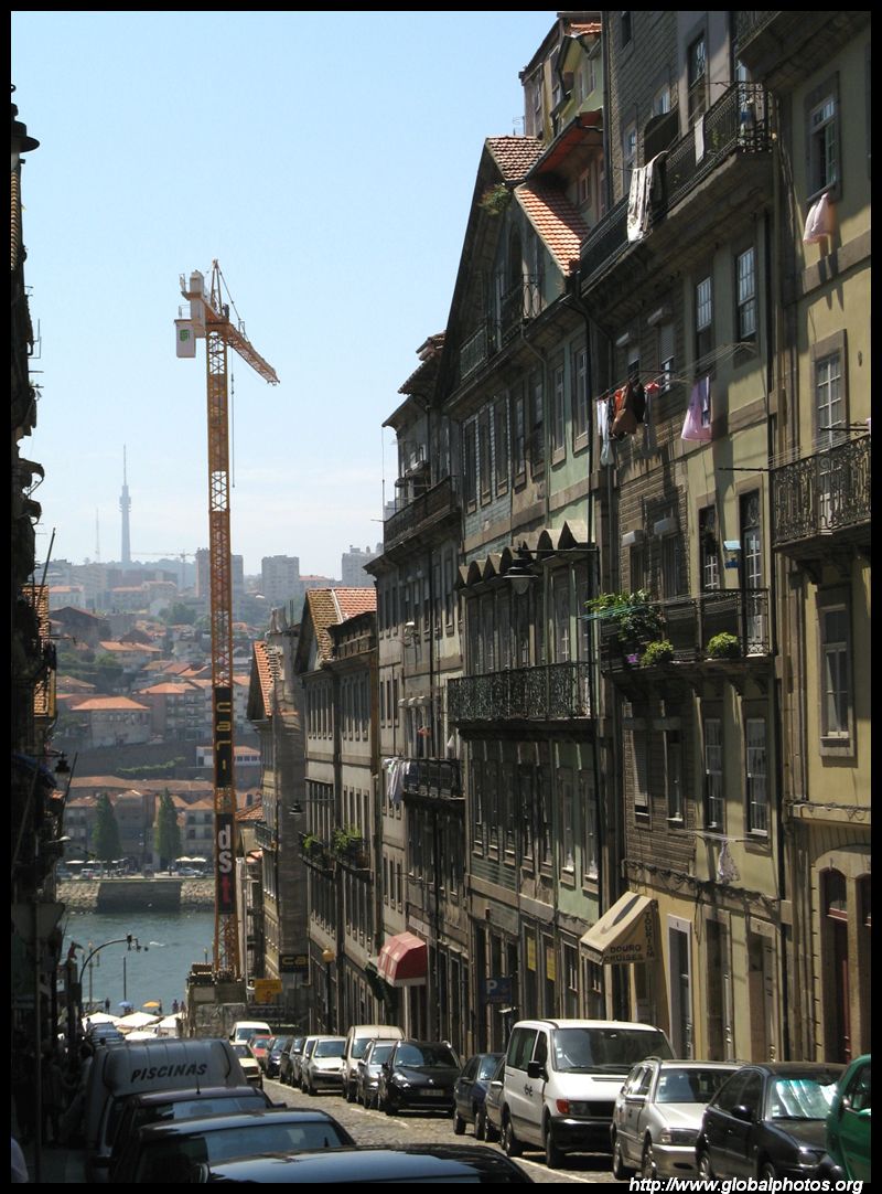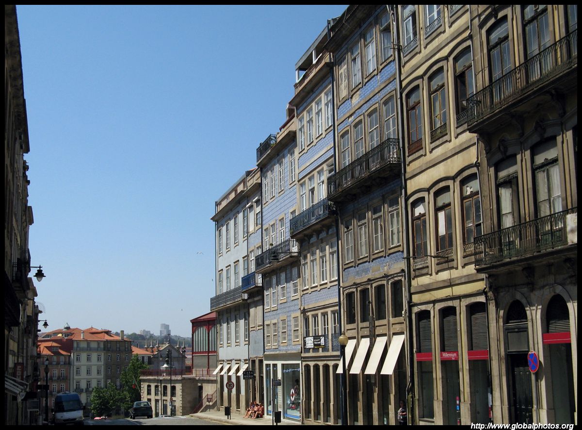 There are so many hills in Porto it's hard to tell when one ends and the next one begins. But the narrow alleys have ended and this main street now heads downhill towards the river.