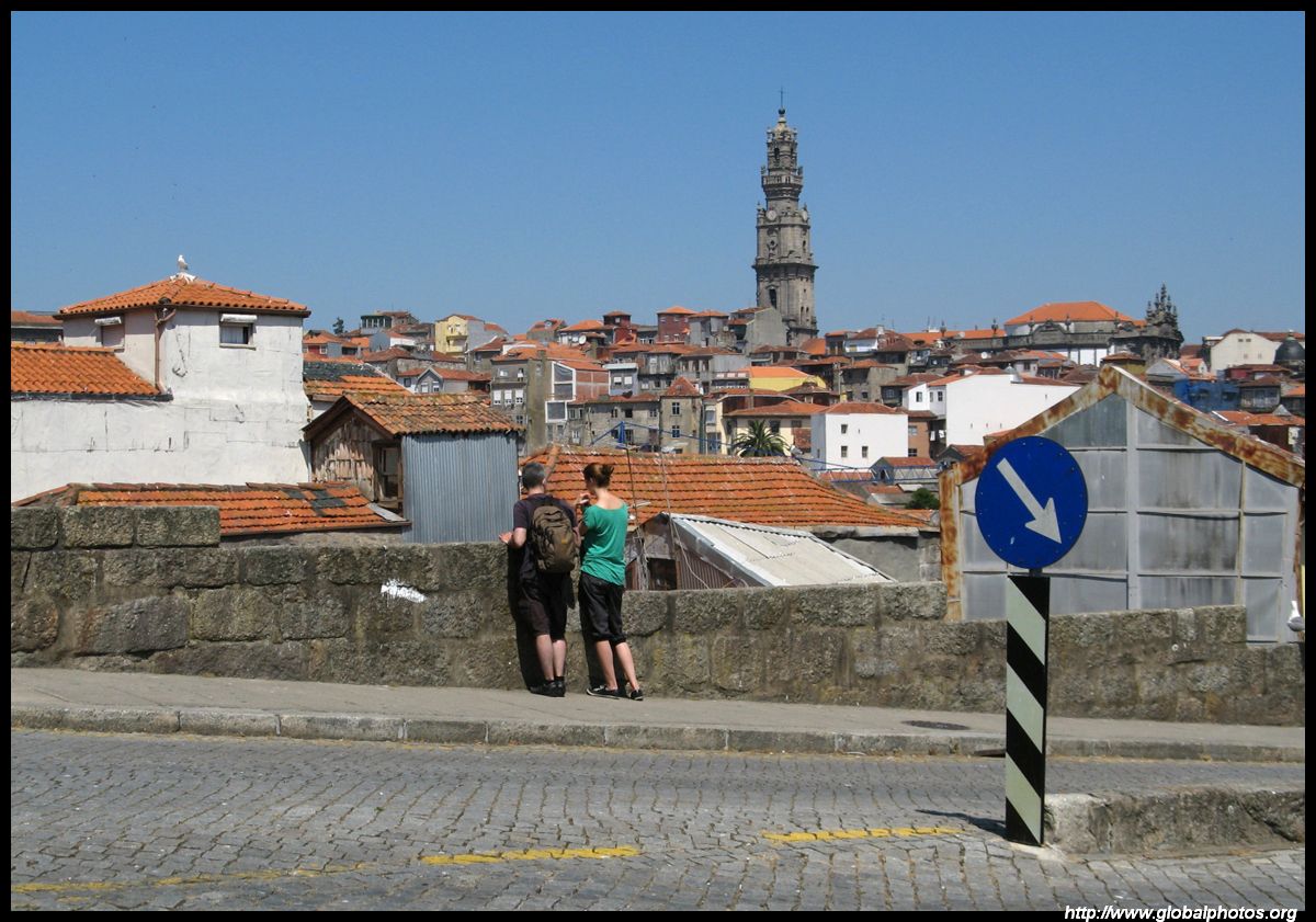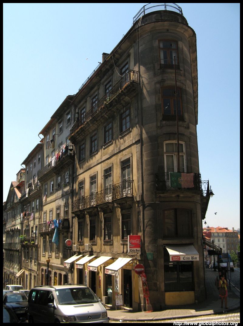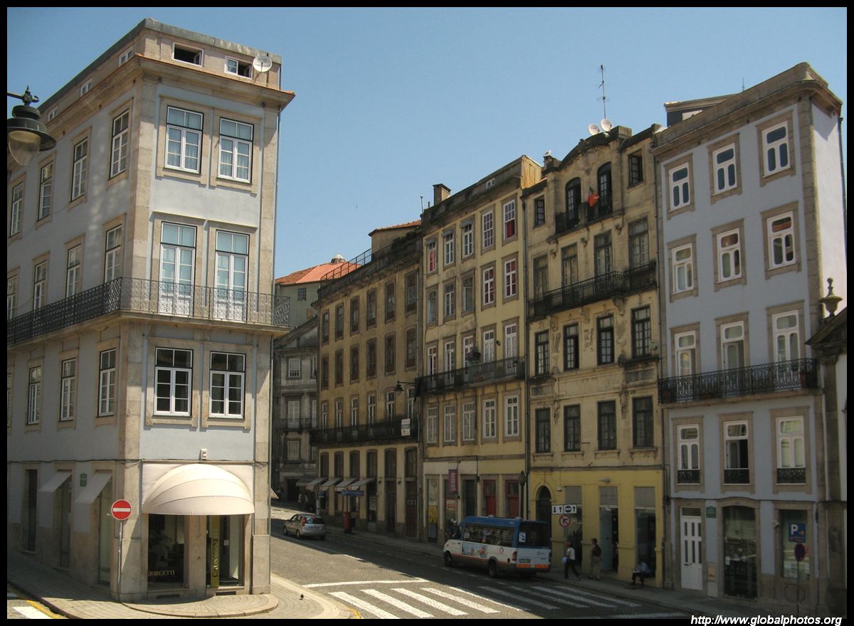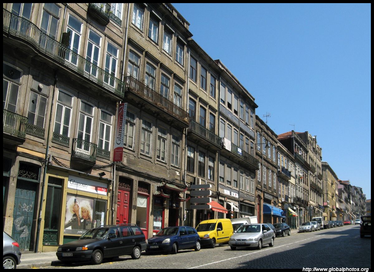 There are so many hills in Porto it's hard to tell when one ends and the next one begins. But the narrow alleys have ended and this main street now heads downhill towards the river.