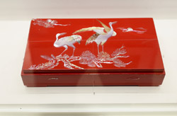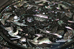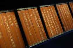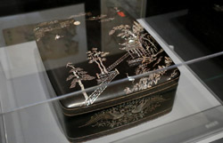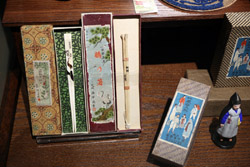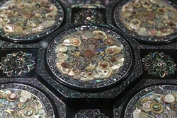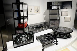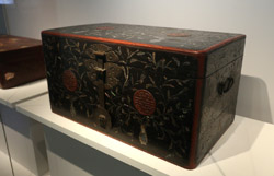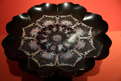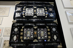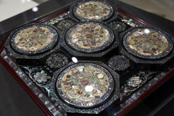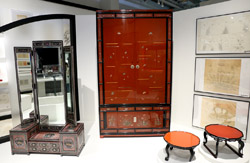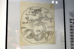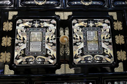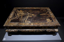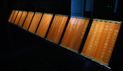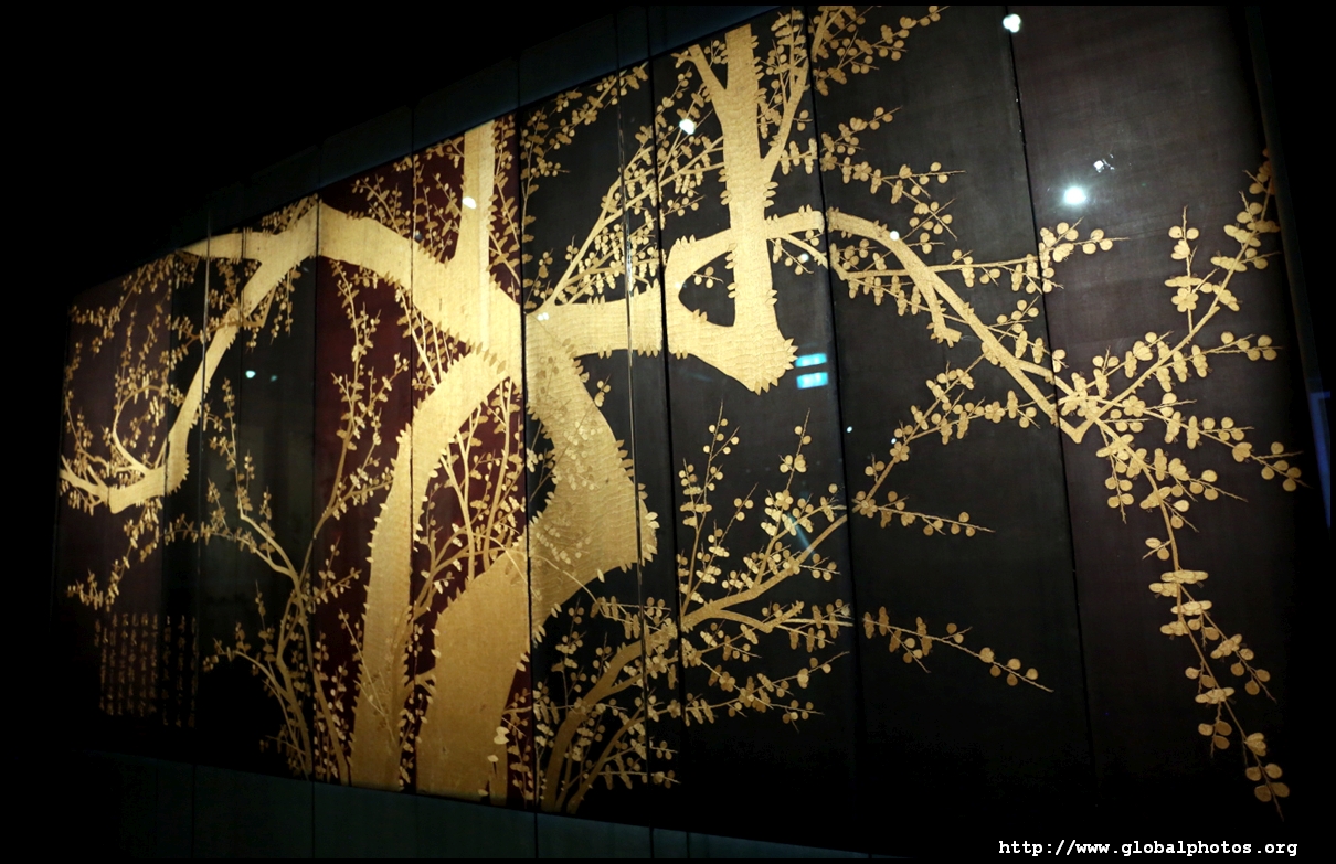 10 panels of plum blossoms embroidered with yellow thread make up this folding screen.