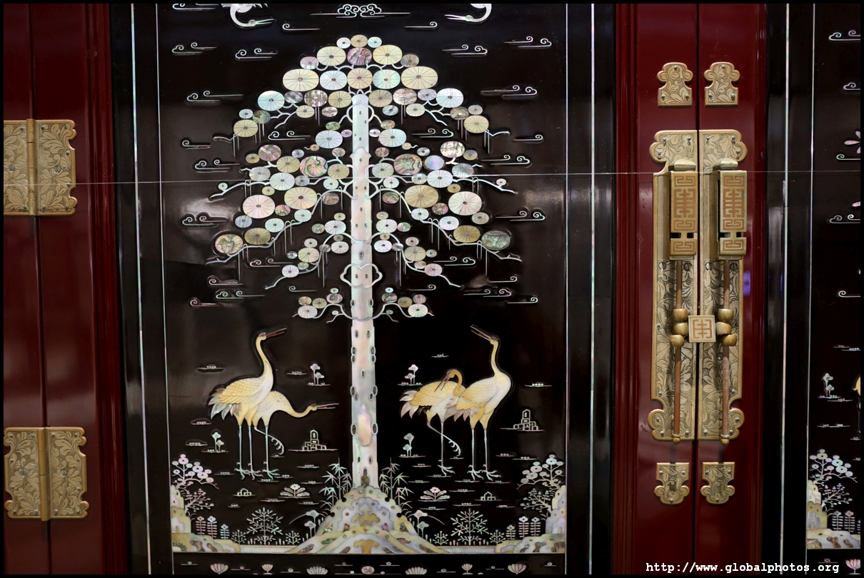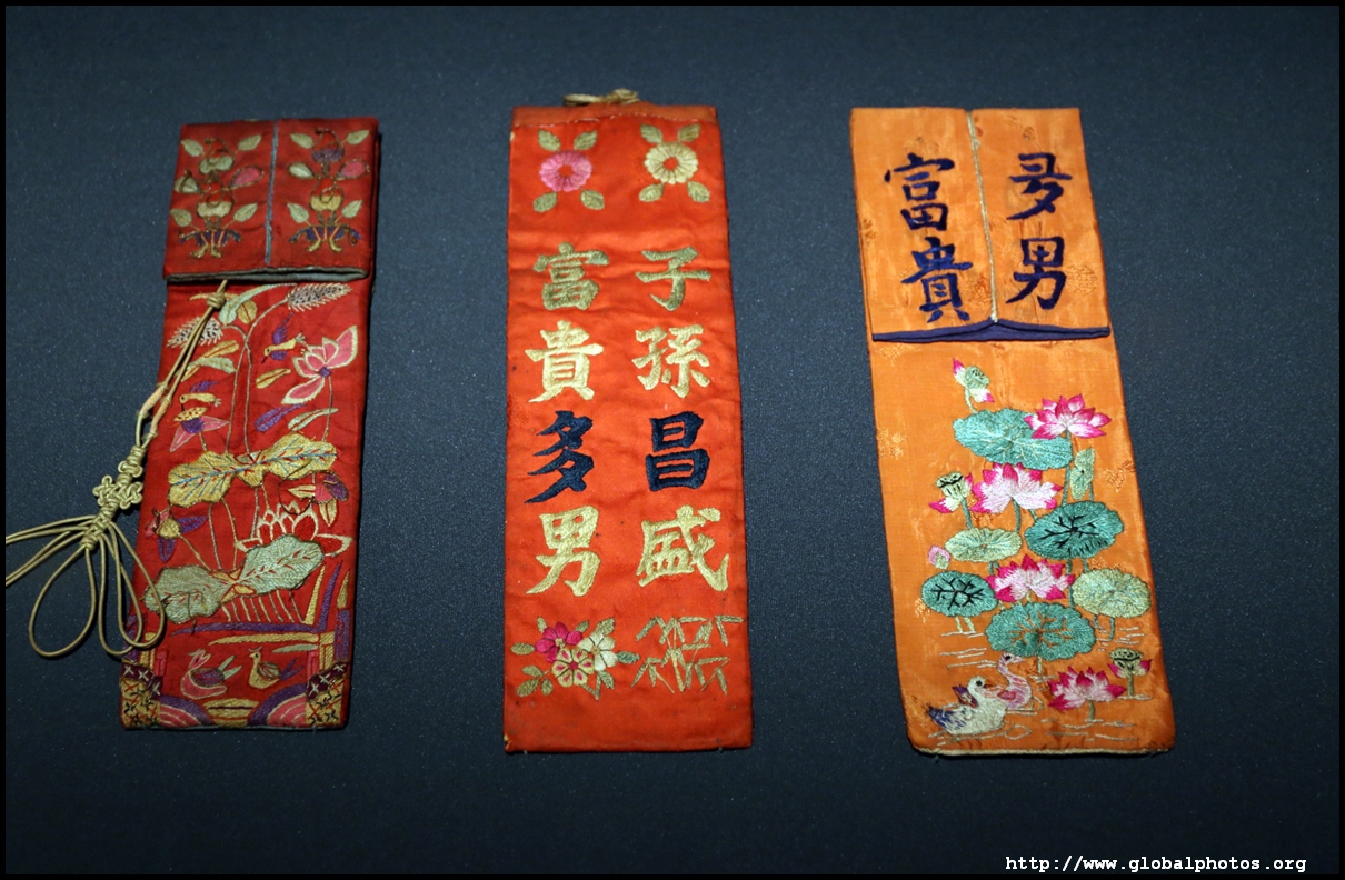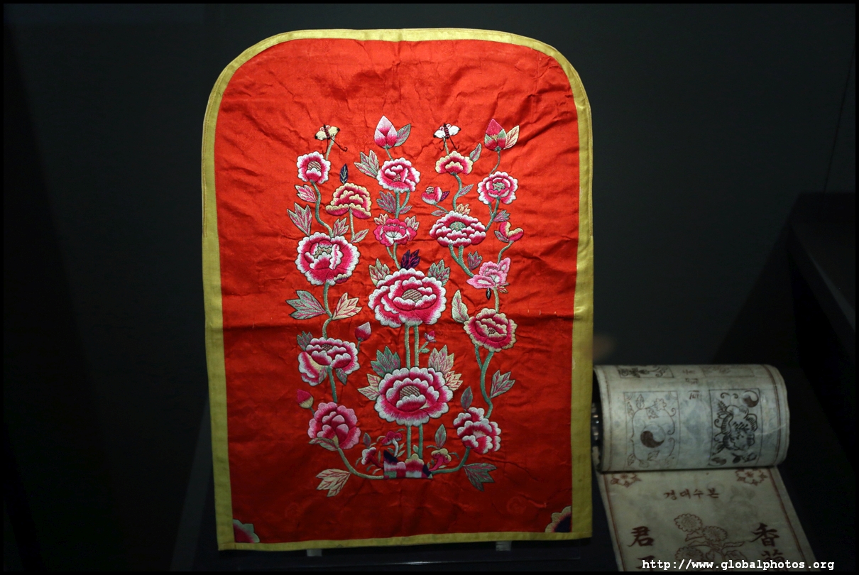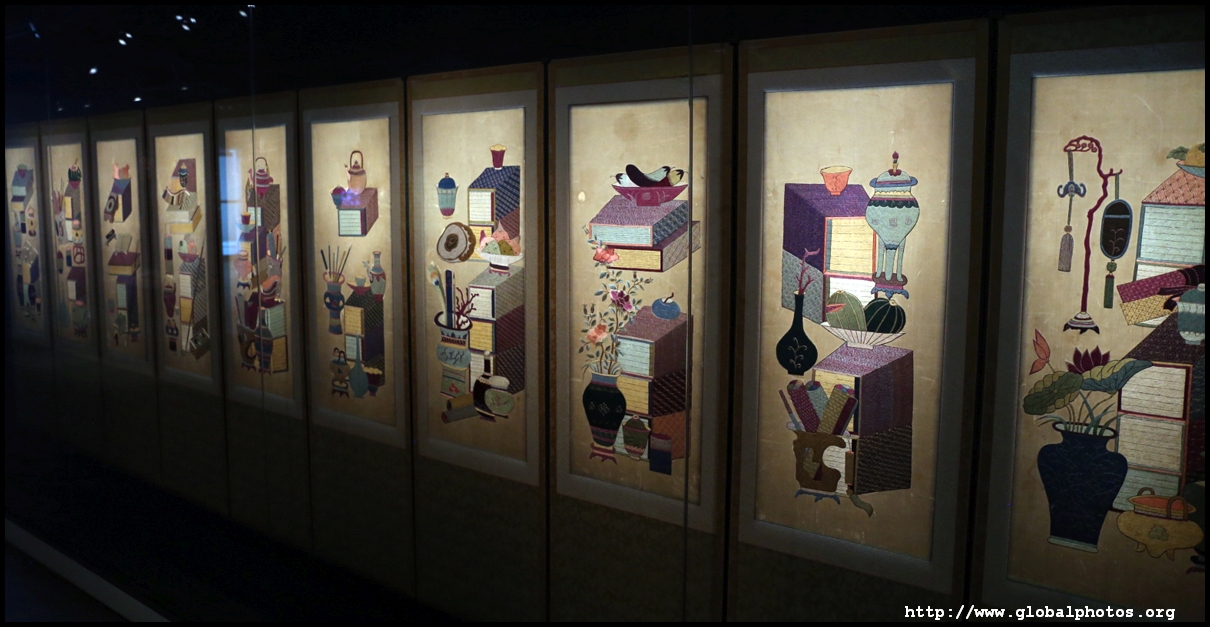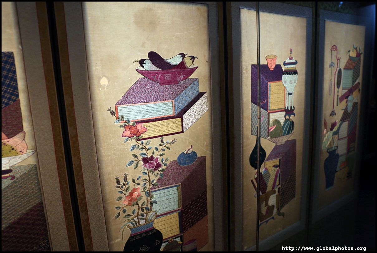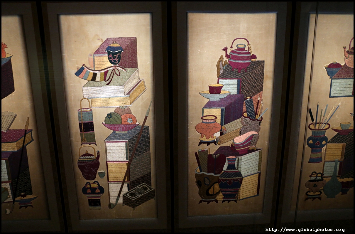This 10-piece folding screen is full of birds and flowers, put together using various stitching techniques to symbolize longevity, prosperity, fertility, success, and more.