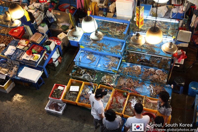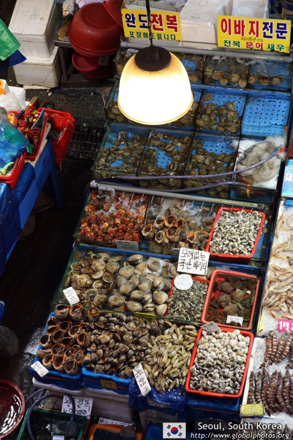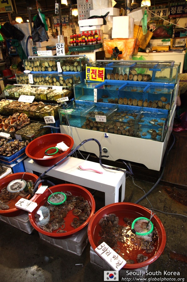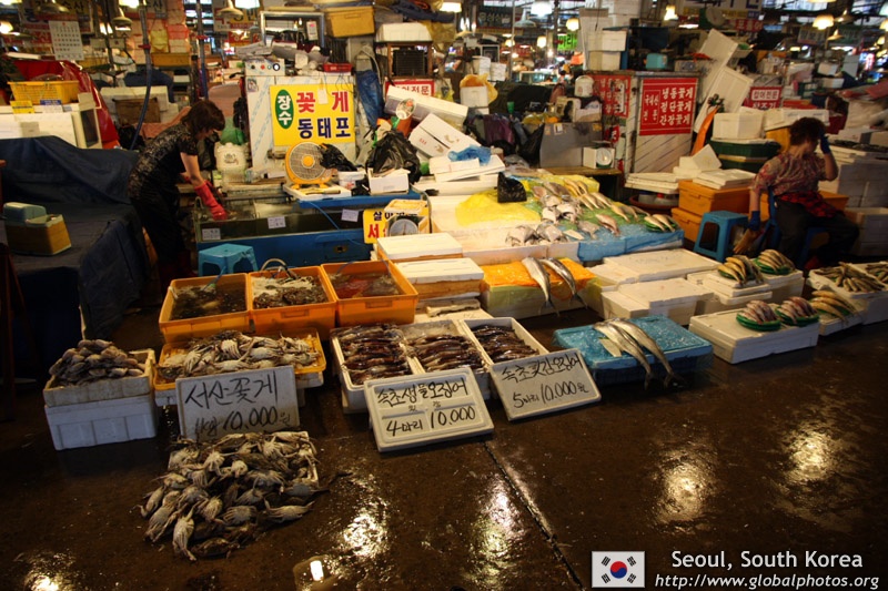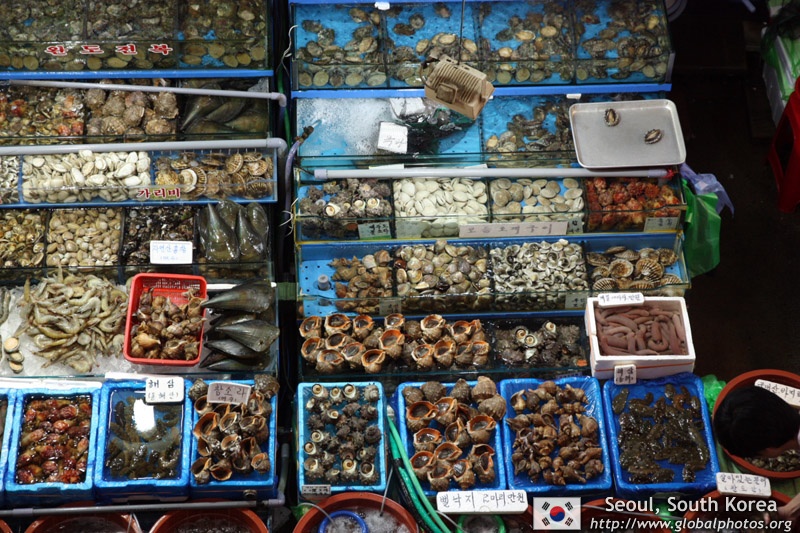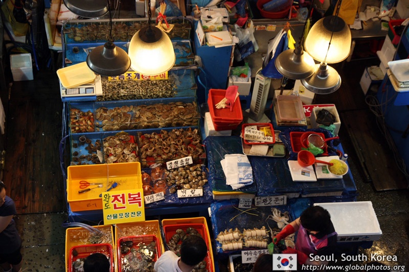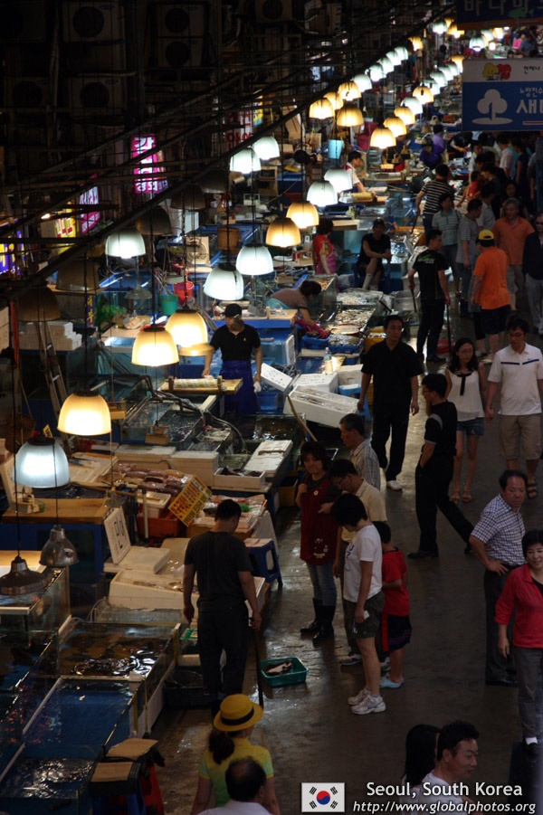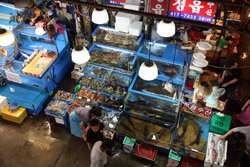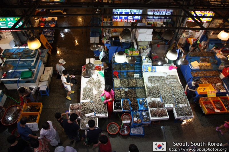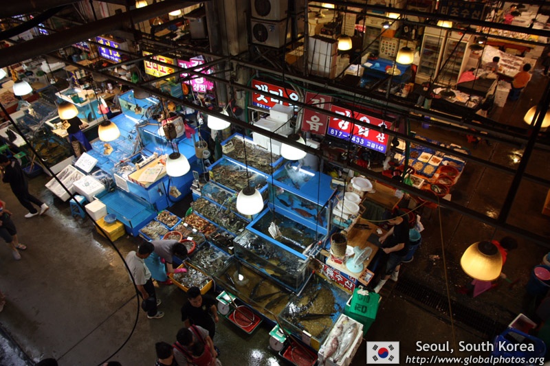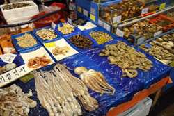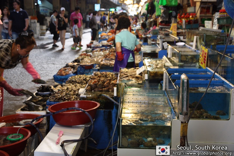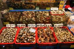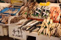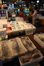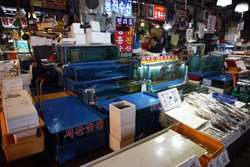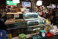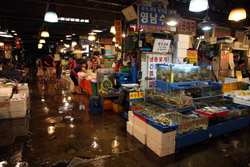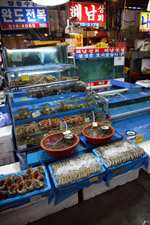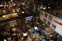 The sheer volume of the abundant fish and seafood, not to mention the freshness of the products, will overwhelm you. They are transported during the night directly from fishing boats in the East Sea, the Yellow Sea, and the South Sea, as well as from the Pacific Ocean.