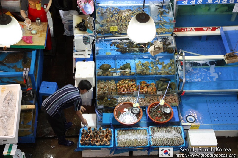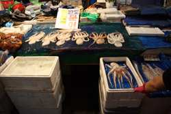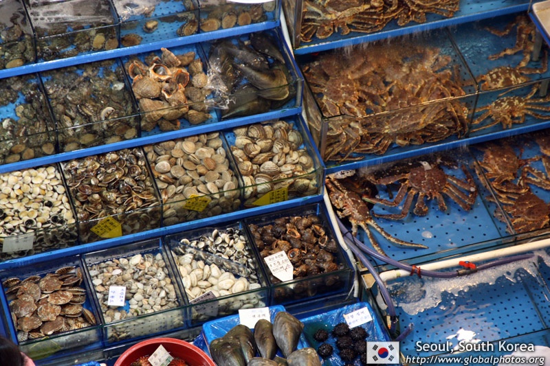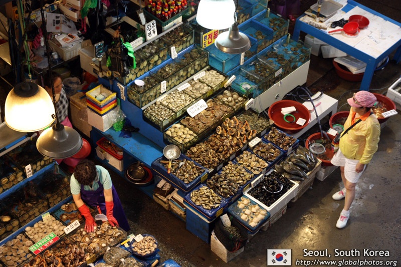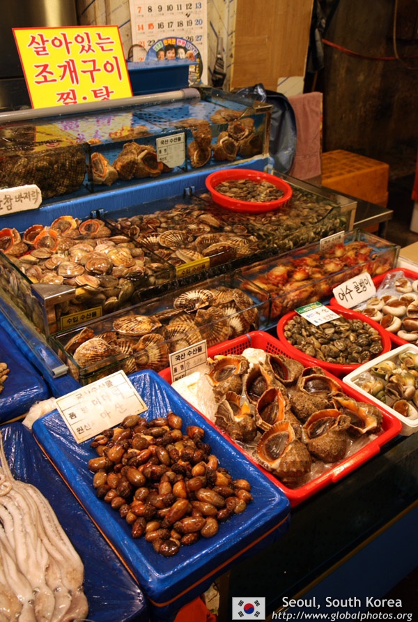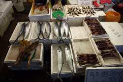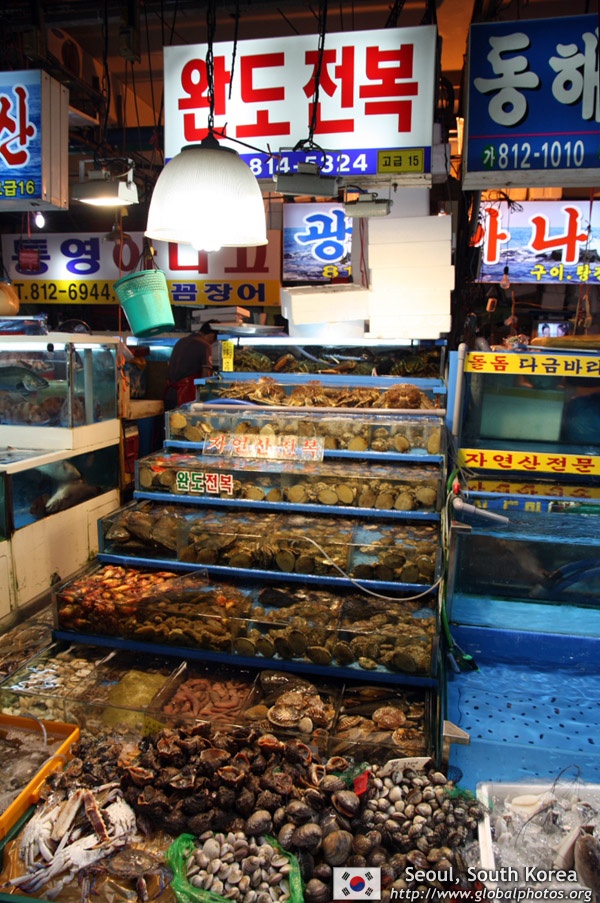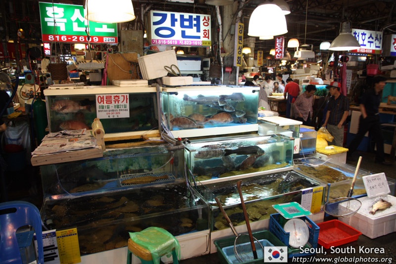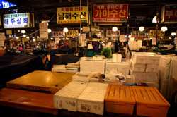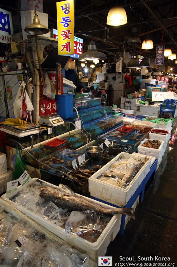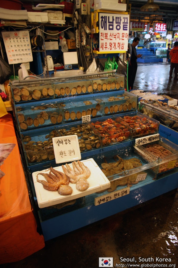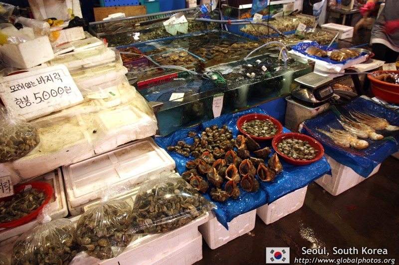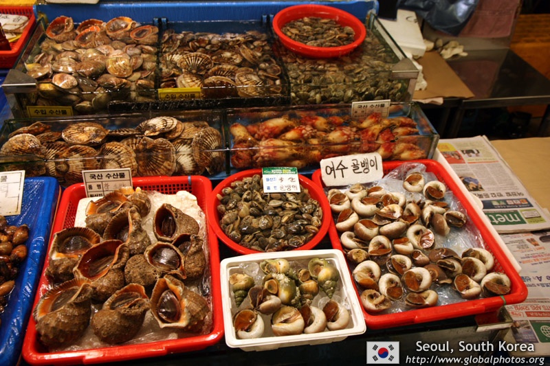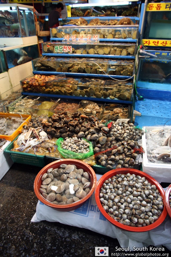 The sheer volume of the abundant fish and seafood, not to mention the freshness of the products, will overwhelm you. They are transported during the night directly from fishing boats in the East Sea, the Yellow Sea, and the South Sea, as well as from the Pacific Ocean.