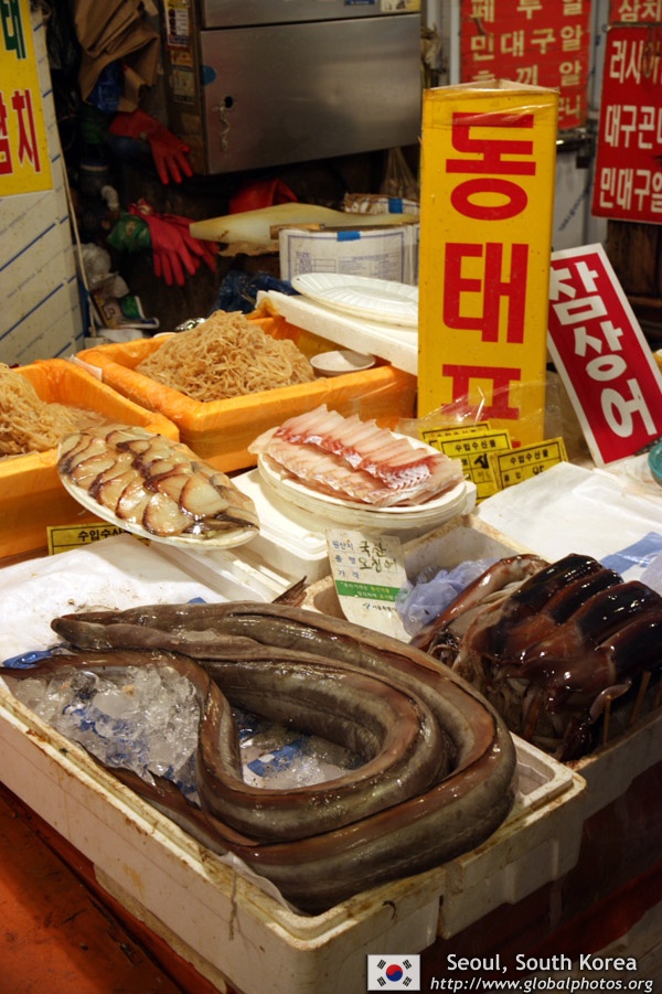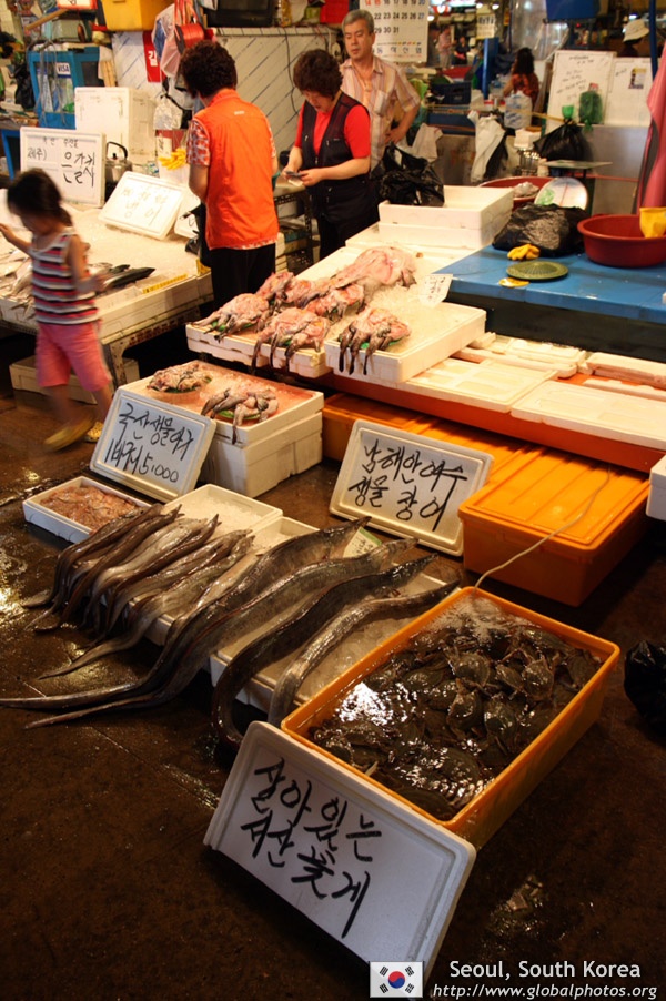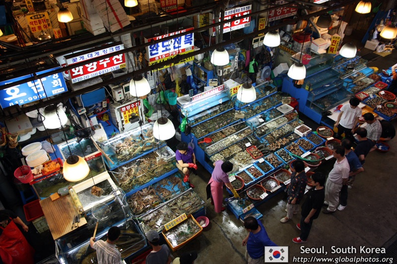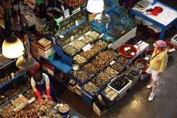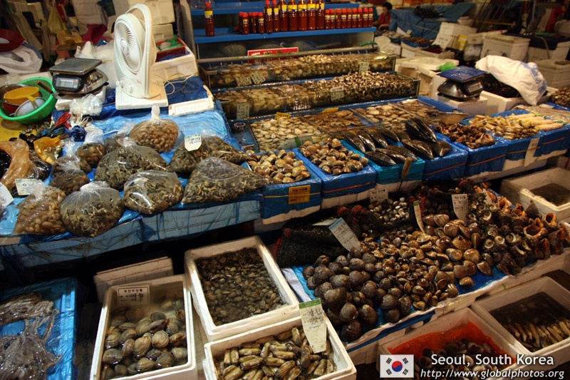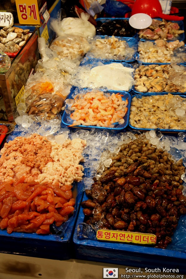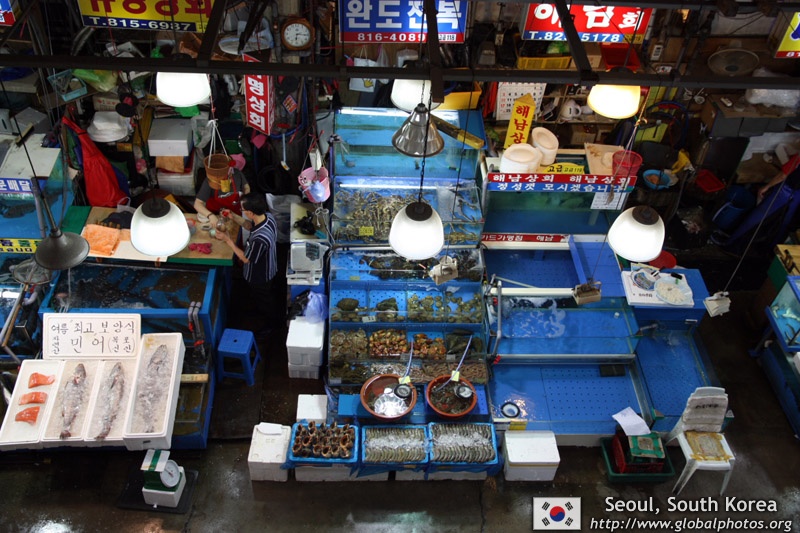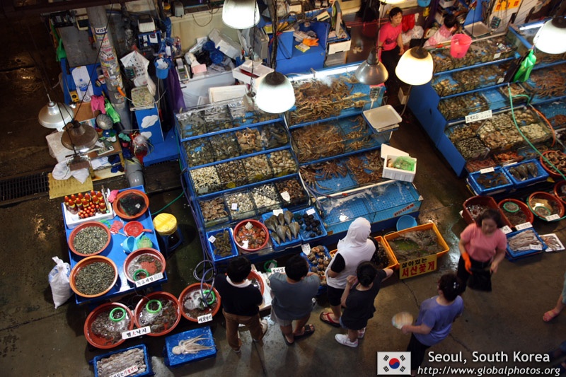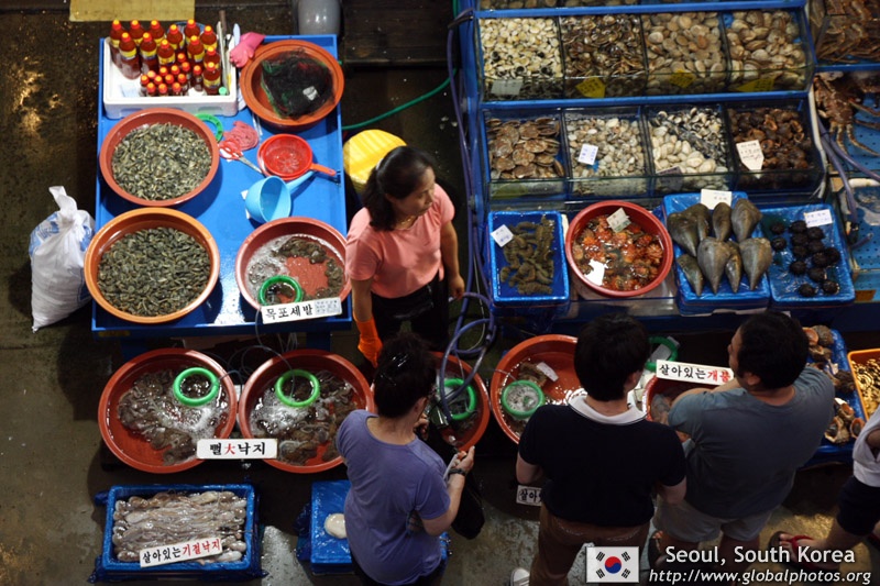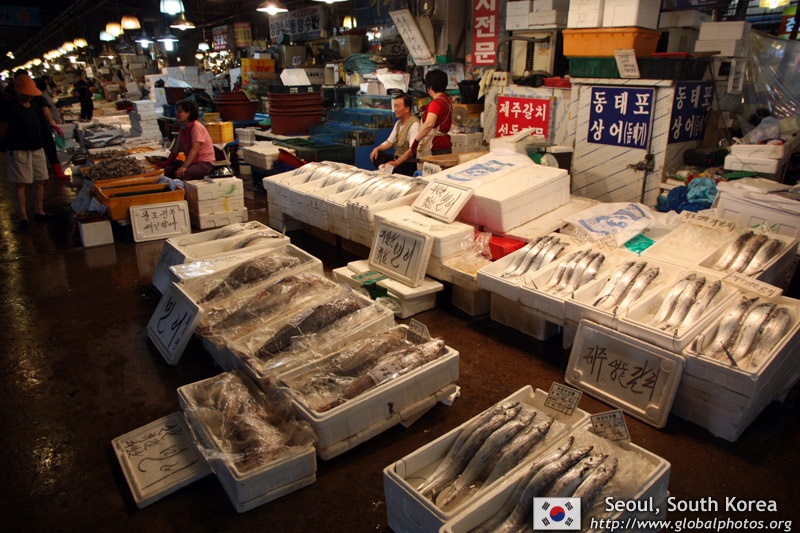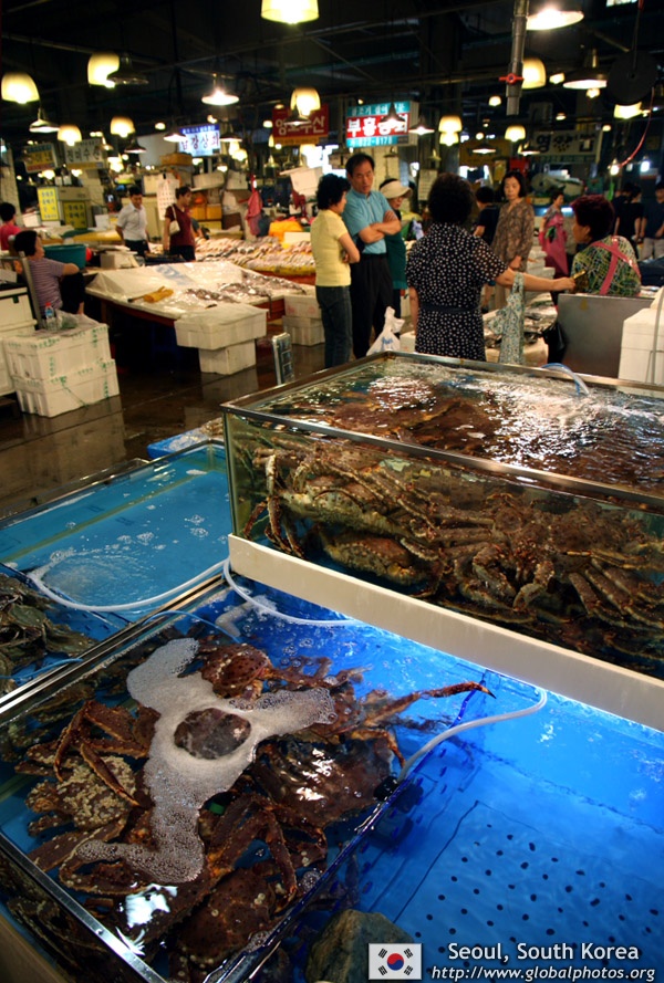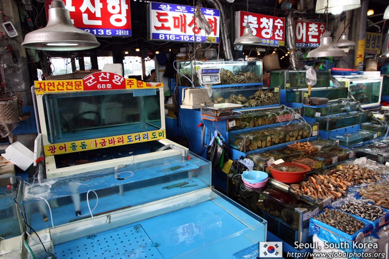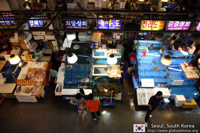 The sheer volume of the abundant fish and seafood, not to mention the freshness of the products, will overwhelm you. They are transported during the night directly from fishing boats in the East Sea, the Yellow Sea, and the South Sea, as well as from the Pacific Ocean.