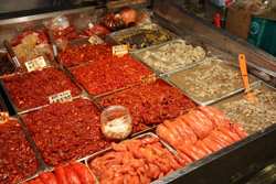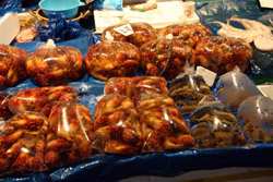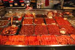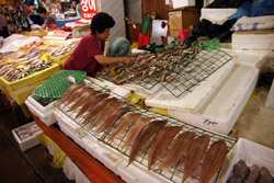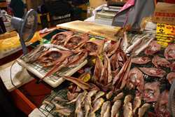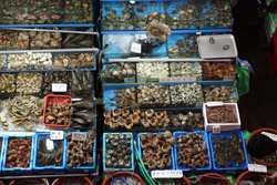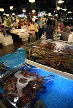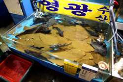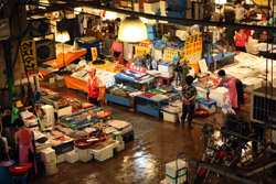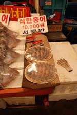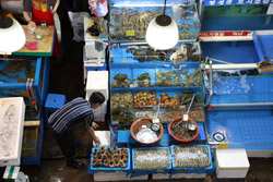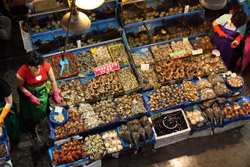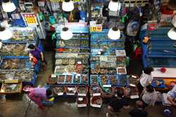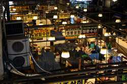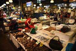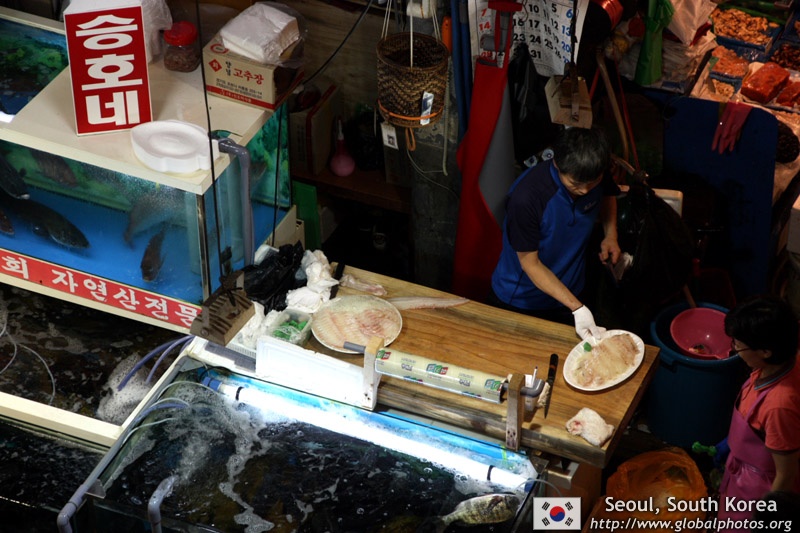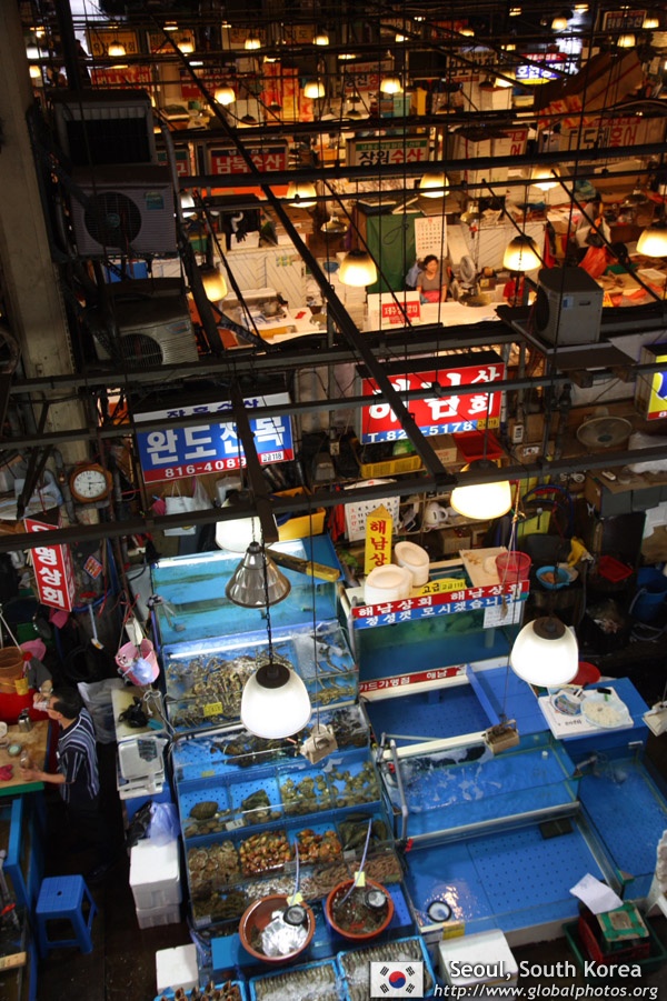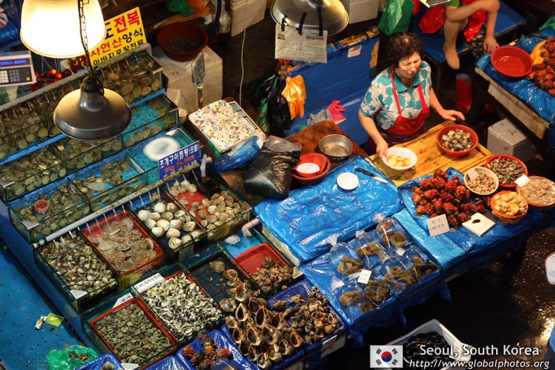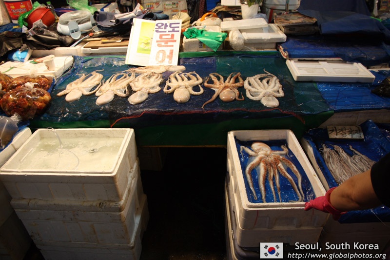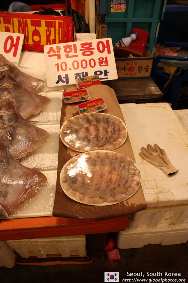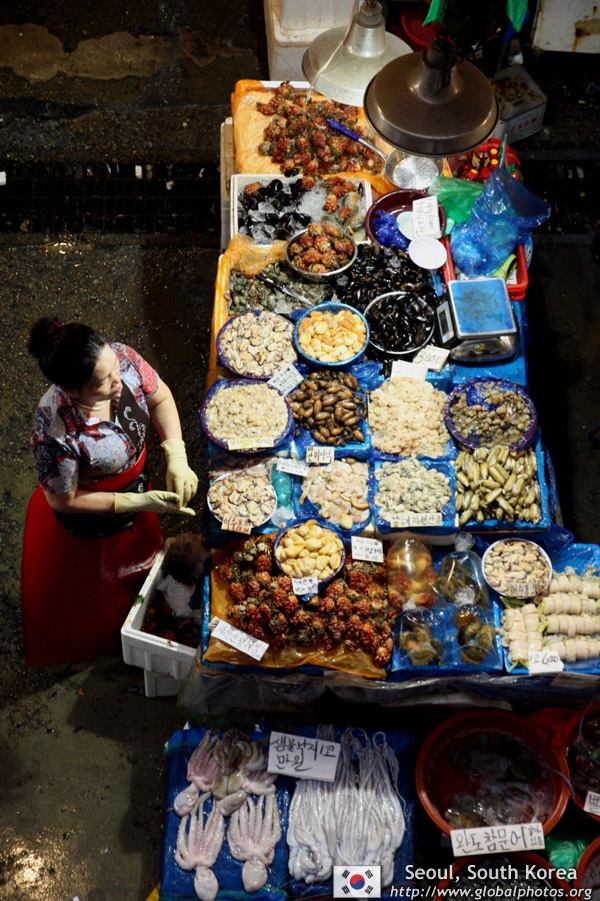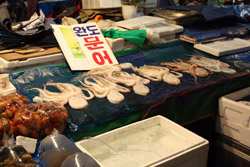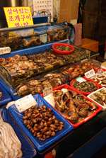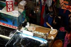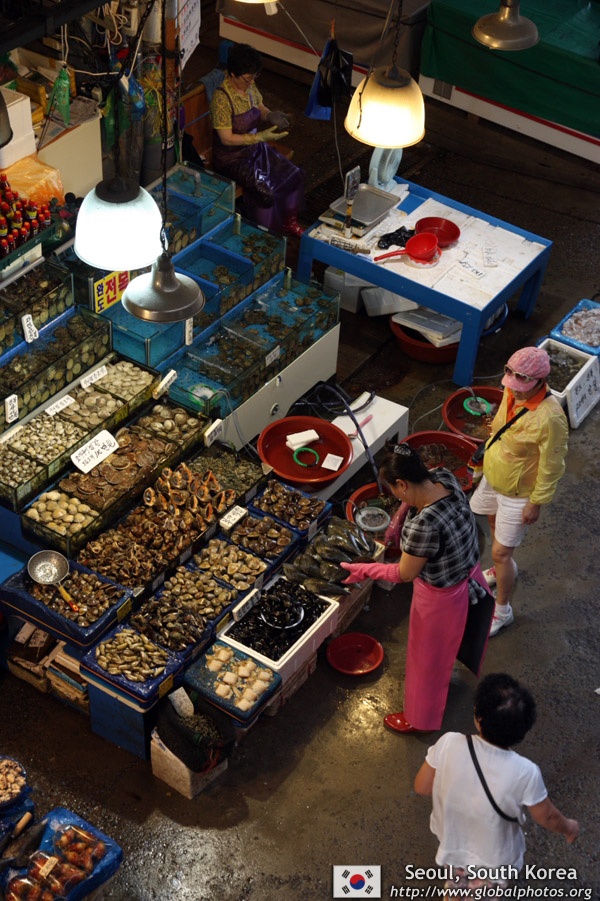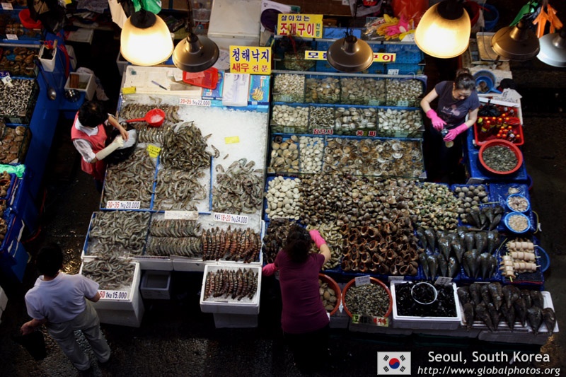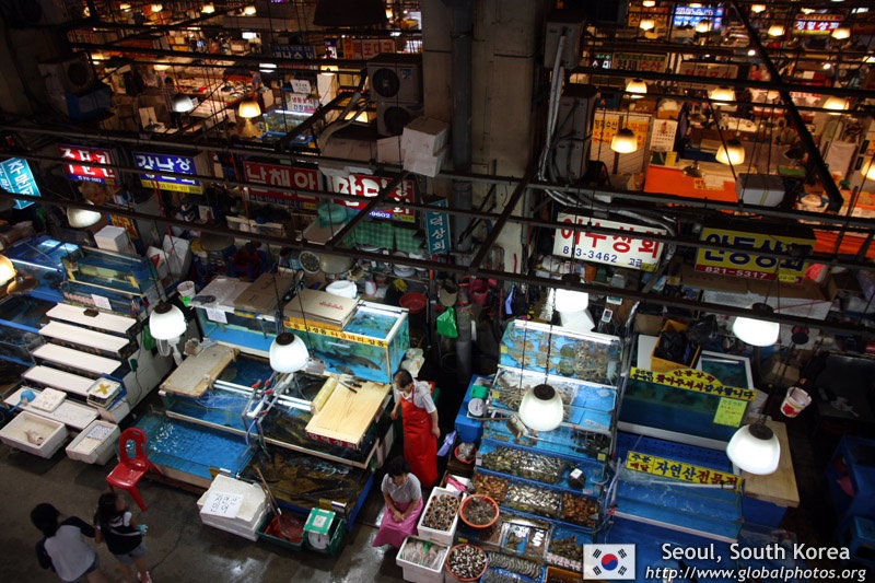 The sheer volume of the abundant fish and seafood, not to mention the freshness of the products, will overwhelm you. They are transported during the night directly from fishing boats in the East Sea, the Yellow Sea, and the South Sea, as well as from the Pacific Ocean.