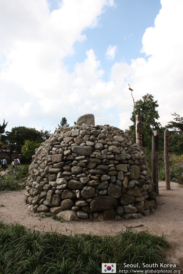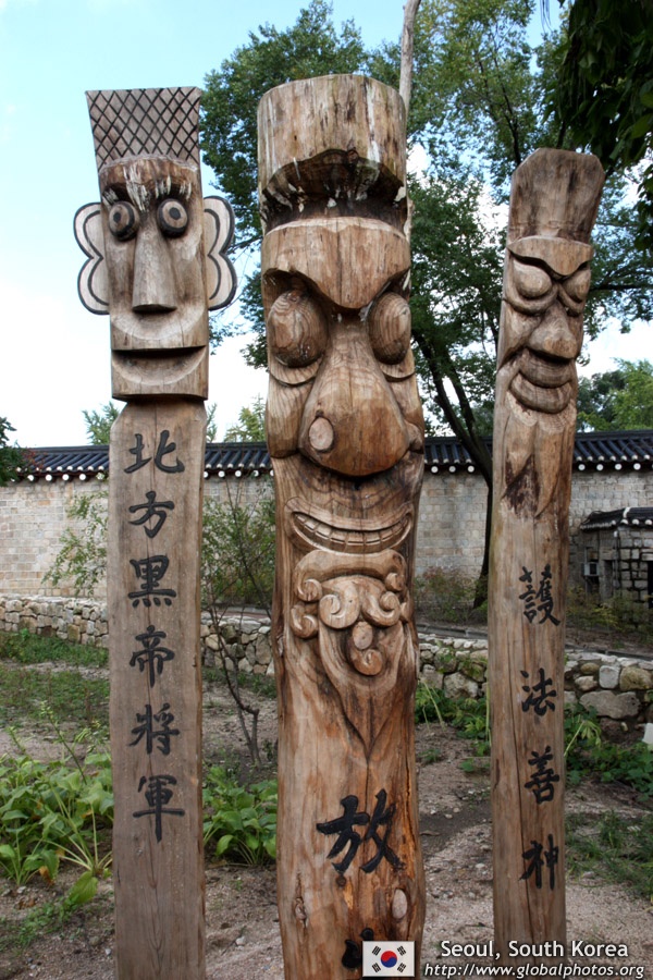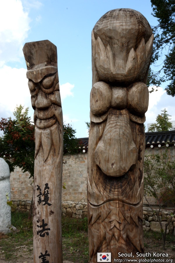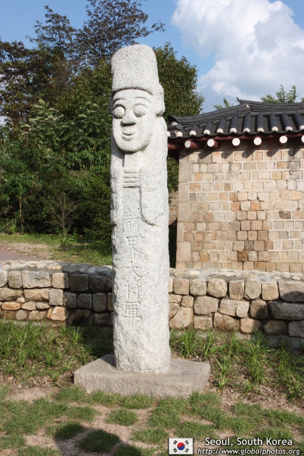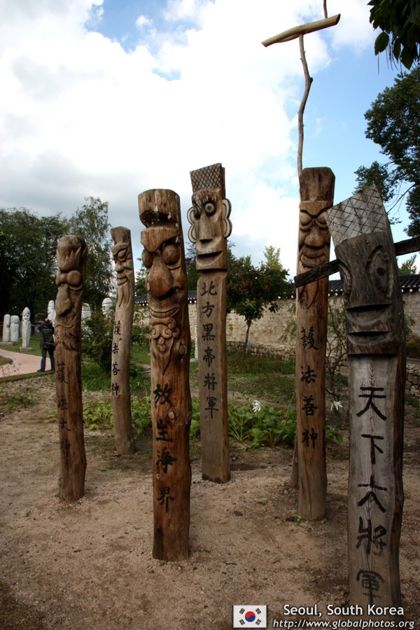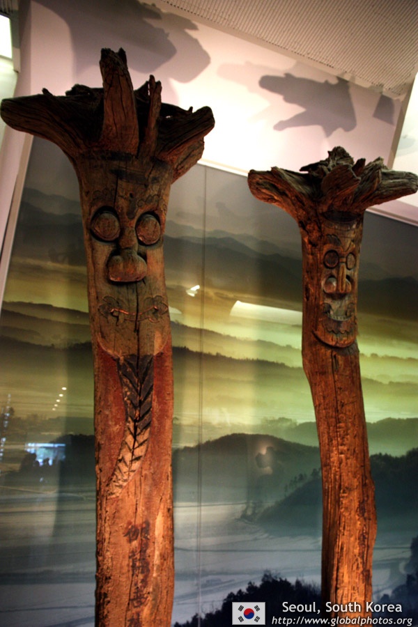 These jangseung spirit posts were very important to villagers. They prayed to them to prevent disasters and to bring a good harvest.