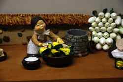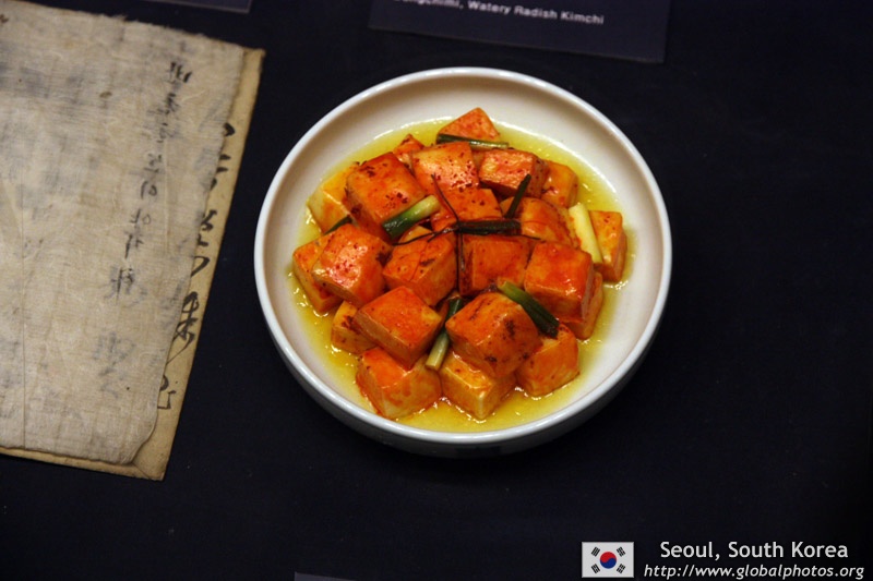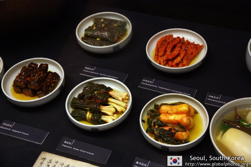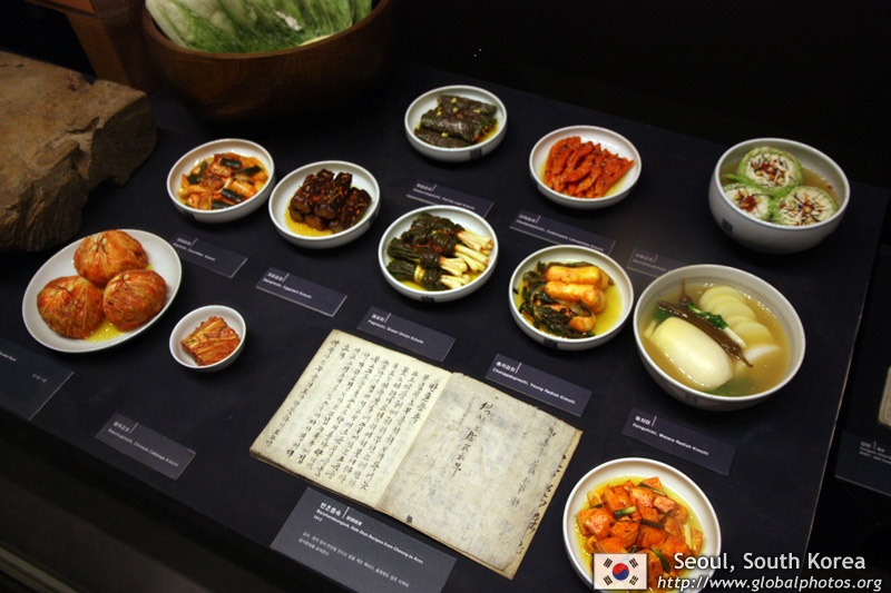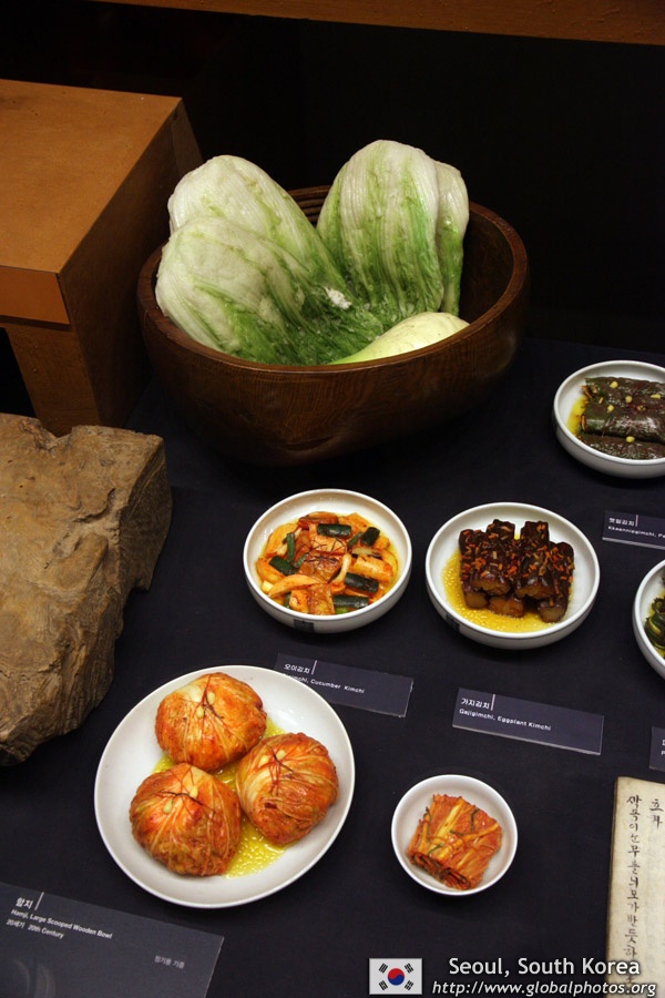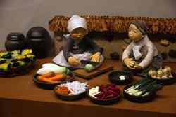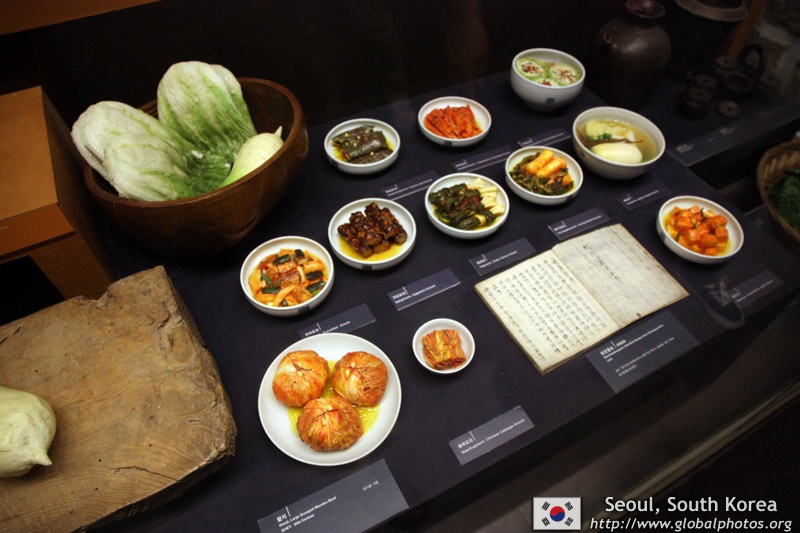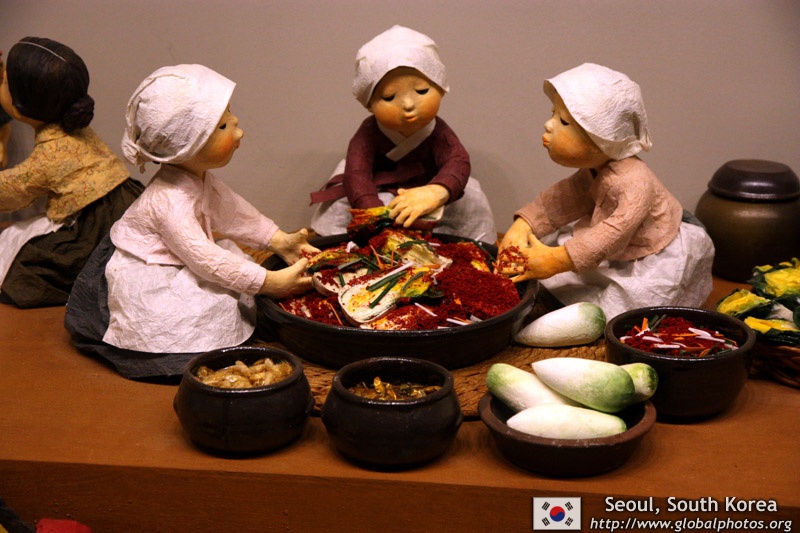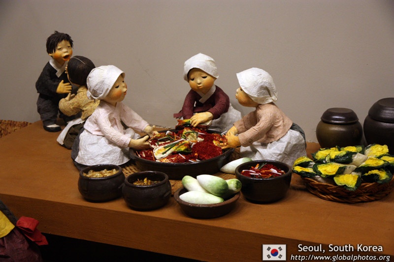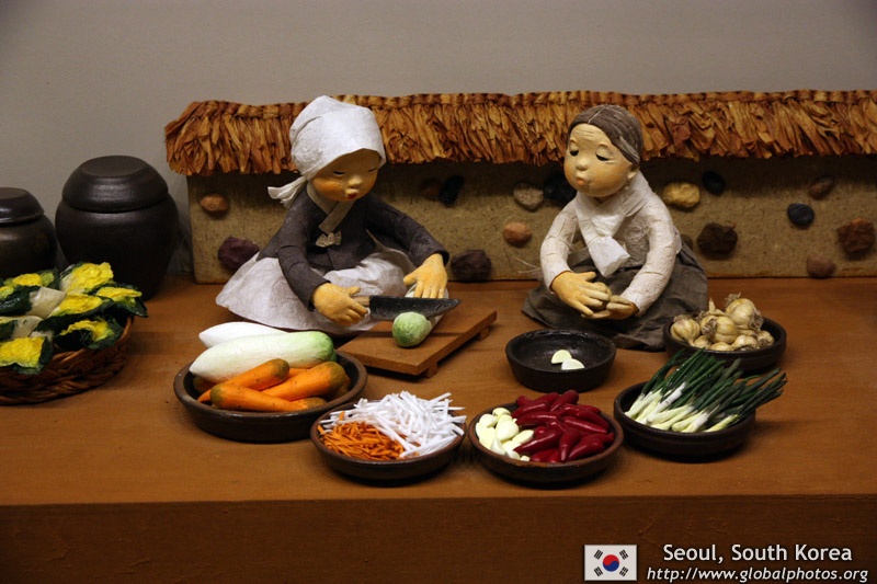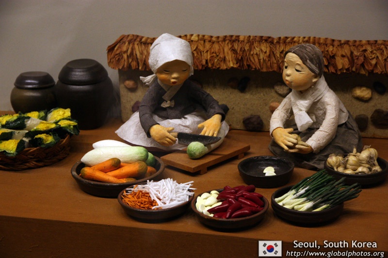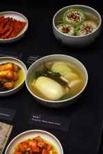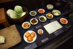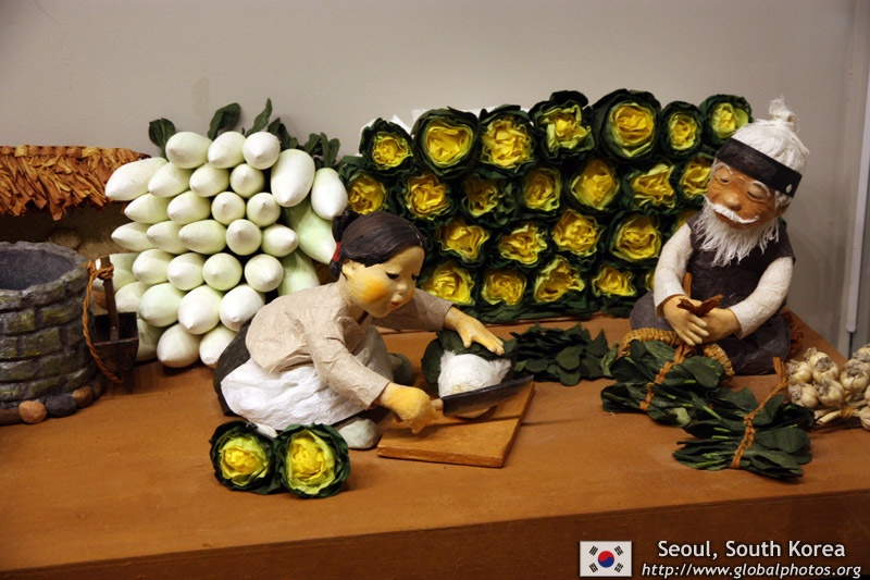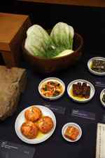 Kimchi is a key food in Korean cuisine, and there are many kinds. This display shows how it is made.