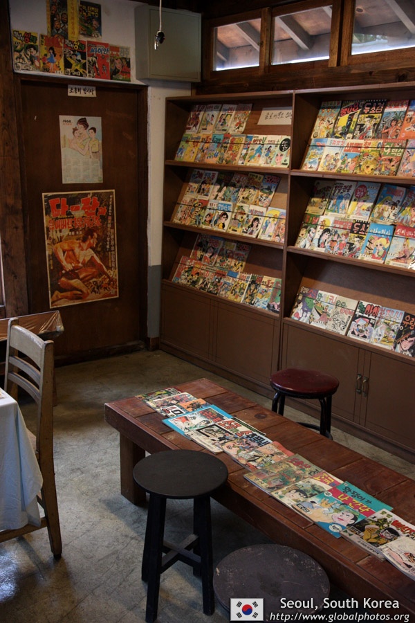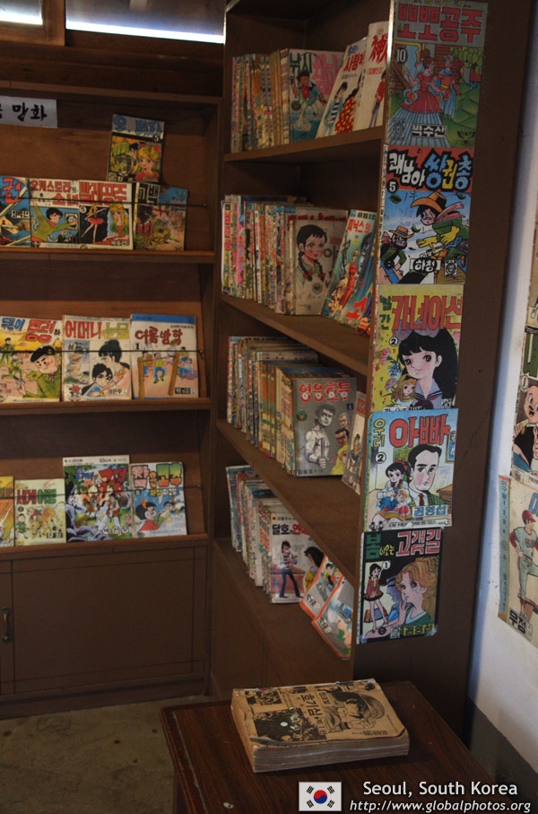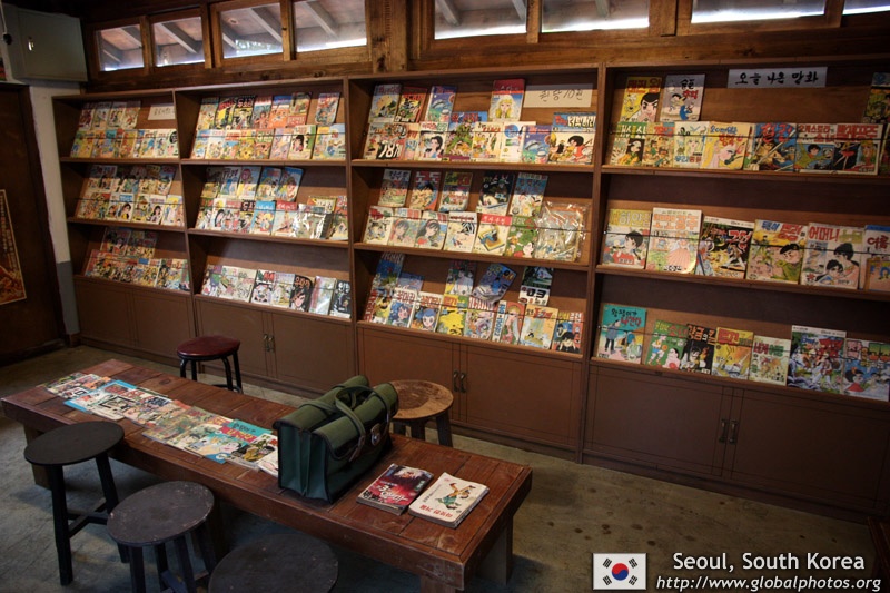 Outside the museum building, a traditional shopping street from the late Joseon period has been re-created. Even the interiors have been furnished to re-enact scenes from yesteryear. This is a comic book shop.