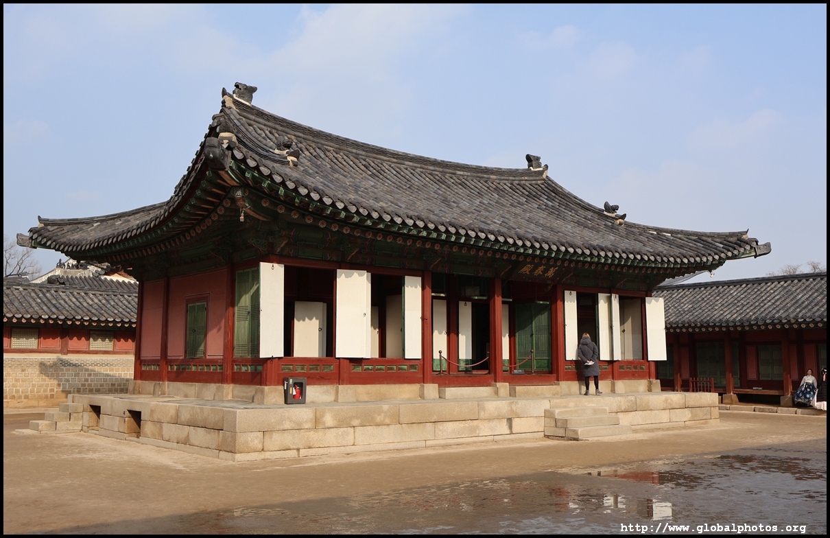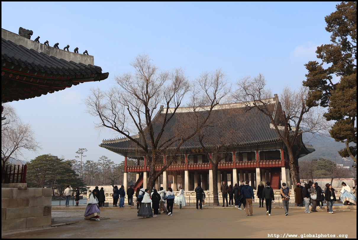 Located west of the living quarters, Gyeonghoeru Pavilion sits in the middle of a pond and was used by the king to host parties and banquets. The original is long gone after the invading Japanese razed it during the late 16th century but it was rebuilt in 1867.