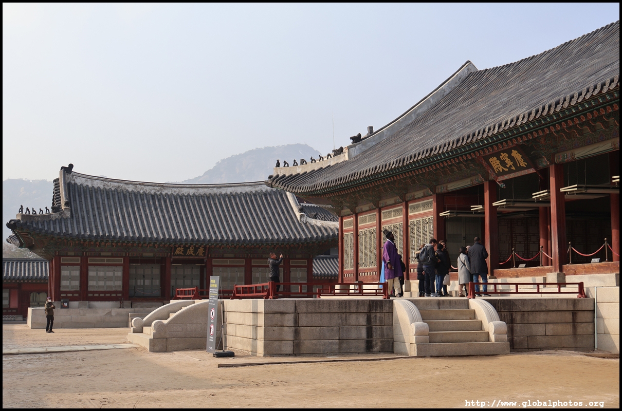 Noticing many foreigners of all sizes and colours dressed in traditional Korean style walking through Gyeongbokgung's main gate, I can't help but think I could have done the same to save on the 3000 won admission charge.Built for the Joseon dynasty's royal family after the capital moved here in the late 14th century, this is the most popular of the city's 5 palaces. Burned down by the Japanese during their invasion in the late 16th century, what we see today is a lot more recent from the 1860s. The Japanese invaders returned and annexed Korea in 1910, using the palace for police interrogation and torture, and changes were made to the structure to break its Korean styles. Behind Geunjeongjeon are various buildings where government business took place and living quarters. The king and queen sleep in separate places.