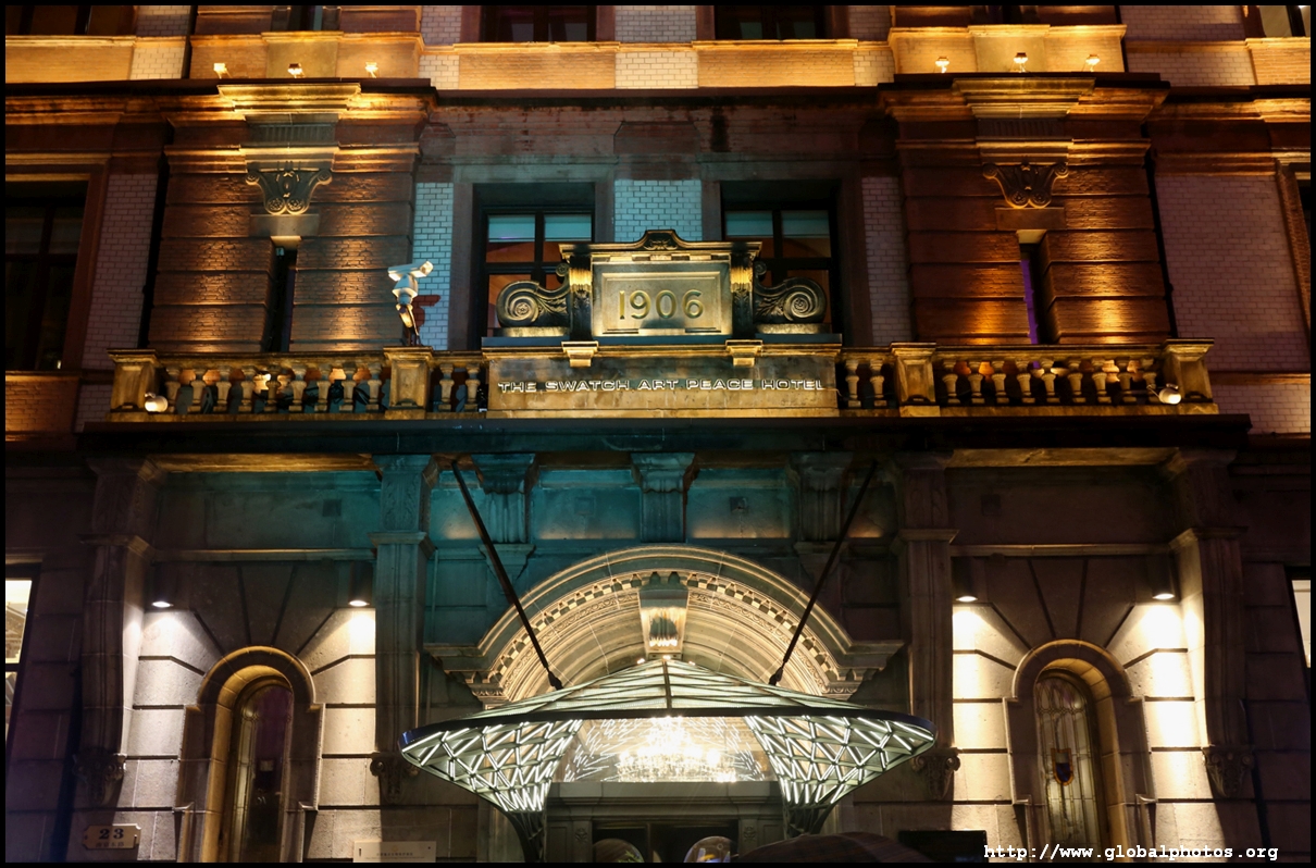 Across the street is the Swatch Art Peace Hotel, which was formerly the Palace Hotel and built in 1906.