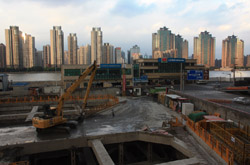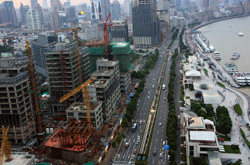 The Bund doesn't stop at the last of the colonial buildings. A series of construction sites now line the Huangpu riverfront south of the main historic area.