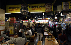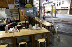 Food here is very cheap, and the atmosphere is very lively. The only down-sides are people smoke in the building, and you likely need to share a table with others.