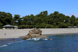The beach is really nothing special but there is a small aquarium and shrine nearby.