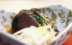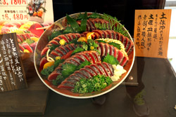 Kochi's local specialty is the bonito, which is lightly-roasted fish with a seared skin but completely raw inside. Add some lemon sauce and garlic and you are set to eat!