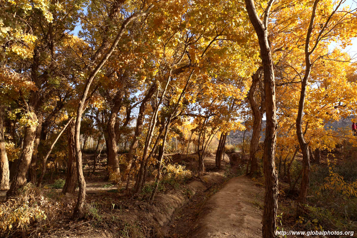 Autumn is a great time to visit Dunhuang with much cooler temperatures amidst the persistent sunshine. Fall colours are generally yellow as the leaves don't turn red before falling off.