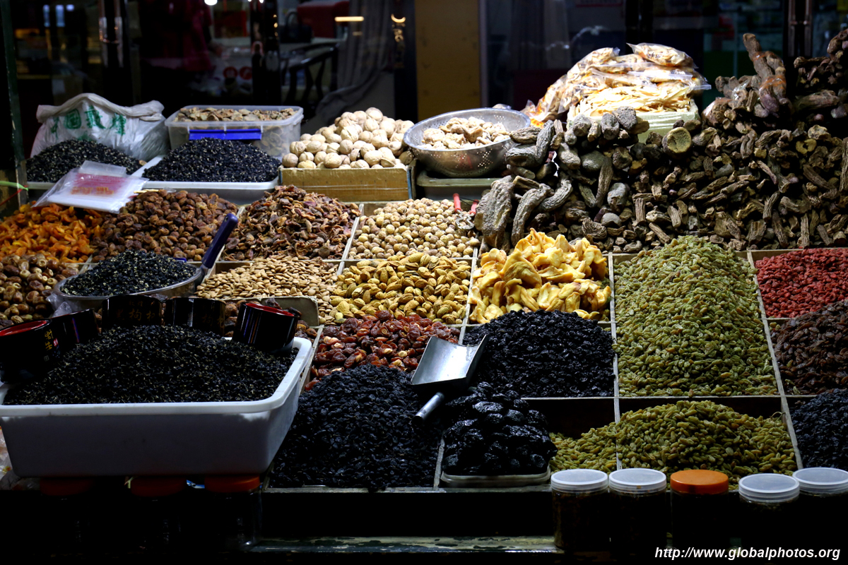 The dry climate means this region, from Gansu stretching all the way to Xinjiang along the Silk Road, is a major source of raisins and nuts.