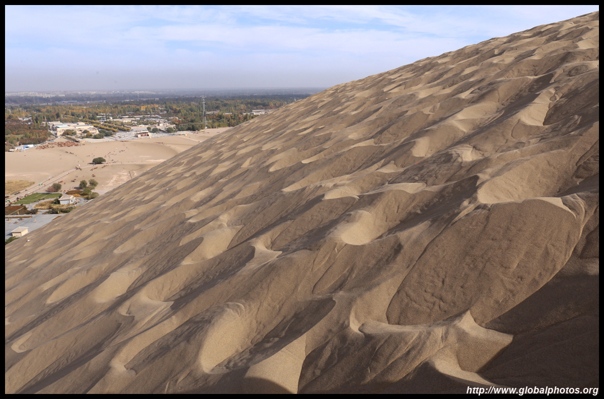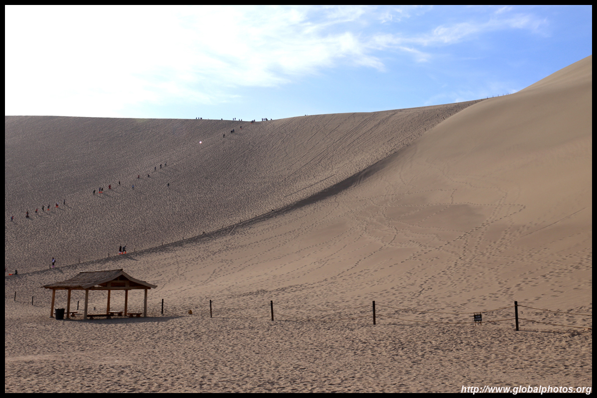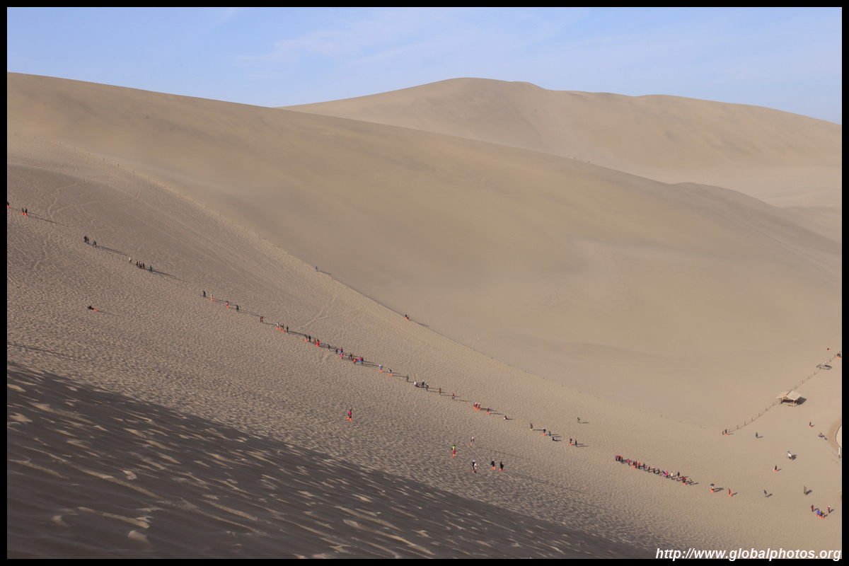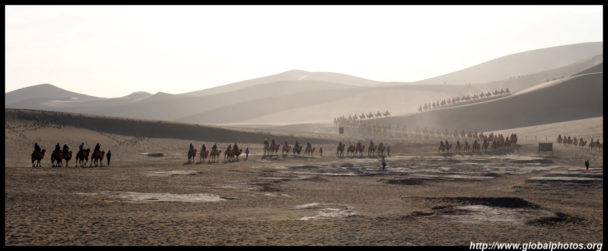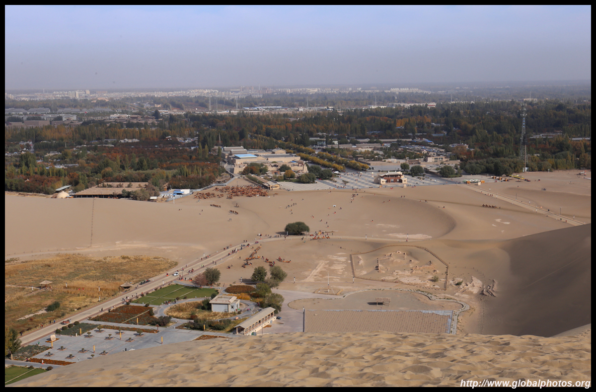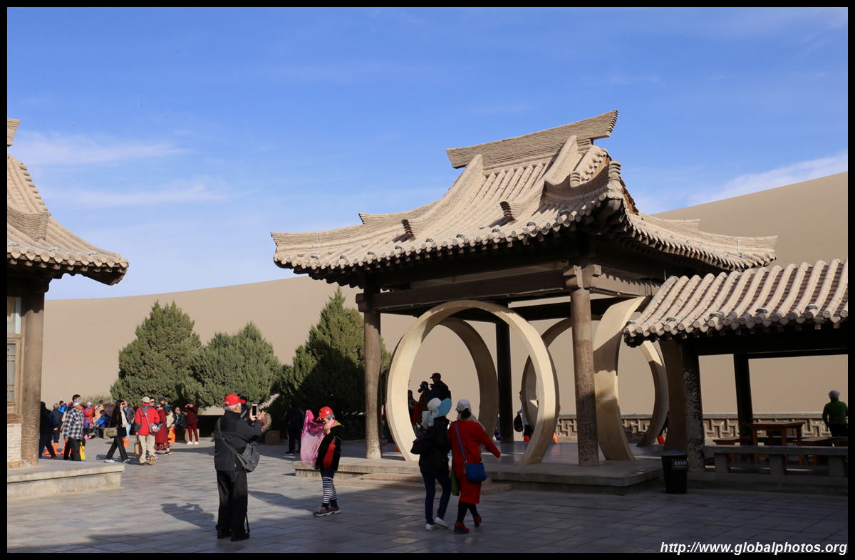 Crescent Lake is an oasis in the middle of the desert just outside Dunhuang. Camels herd tourists from the visitor's centre to the site, but I opted for the shuttle bus instead. There were plenty of camels, and the guide mentioned each needs to be licensed.