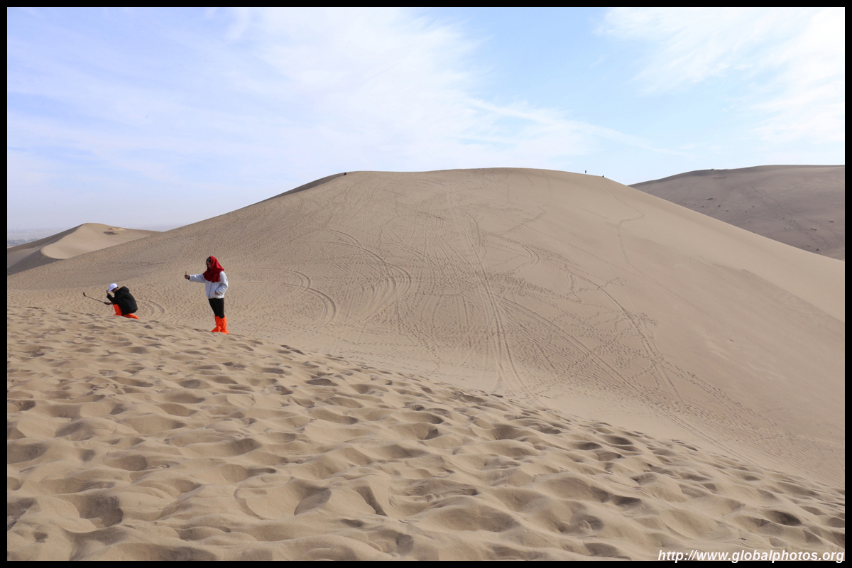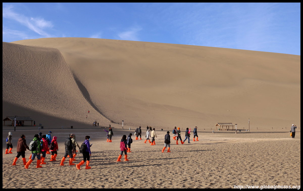 You can pay for a lot of things on top of your admission, from camel rides to the bright orange shoe covers which are great to keep the fine sand out. Looking around at the bright orange landscape, you can see just how crowded this place gets even though it is in the middle of nowhere.