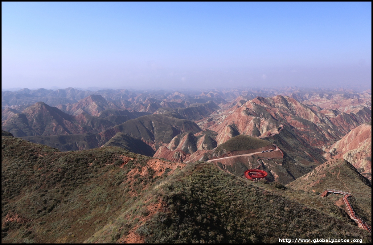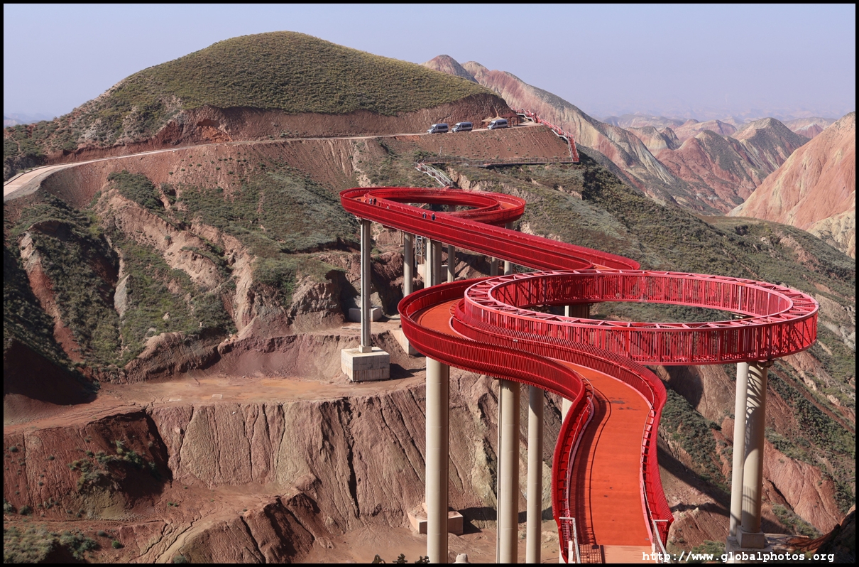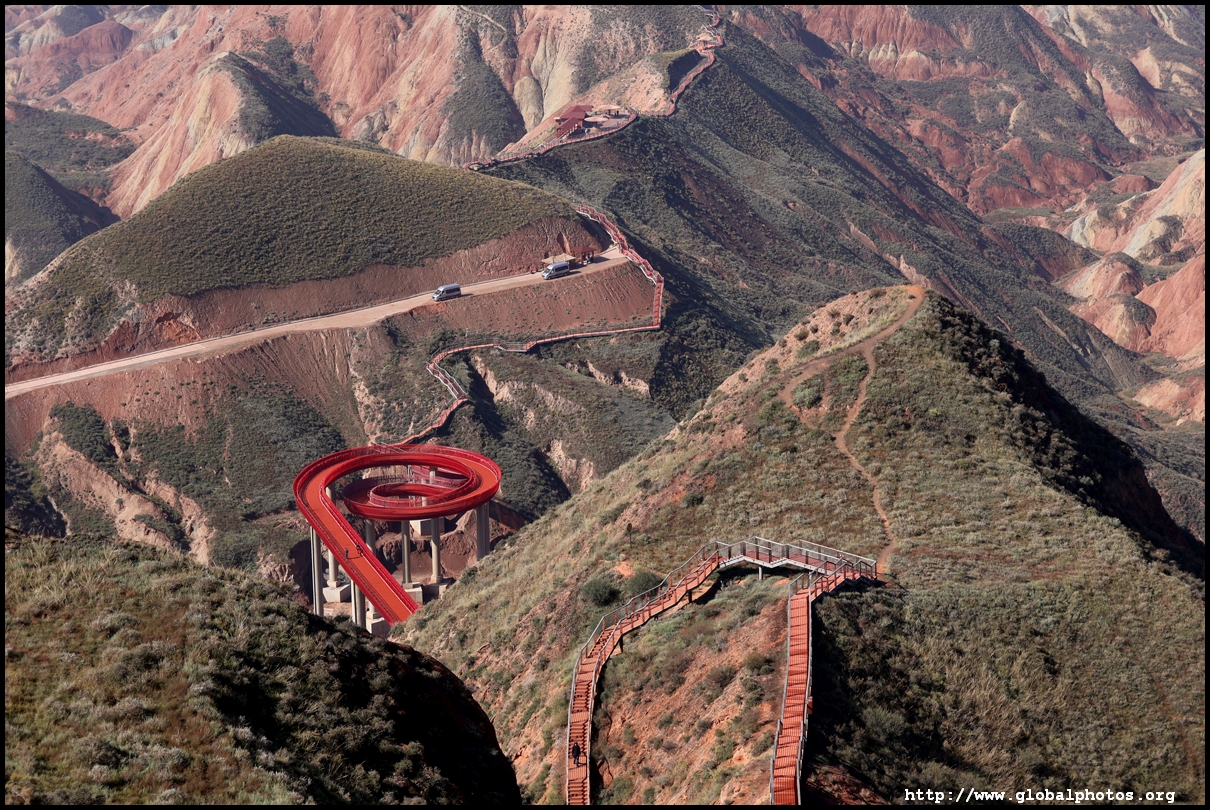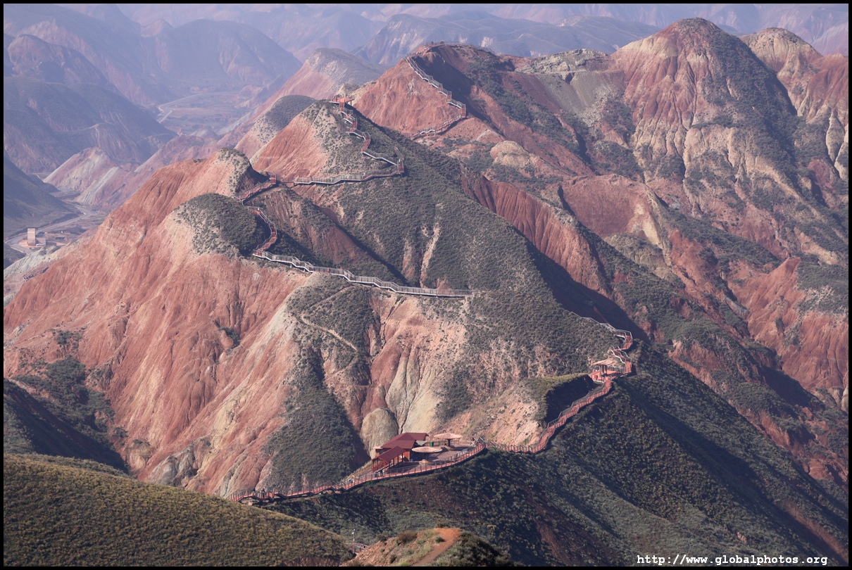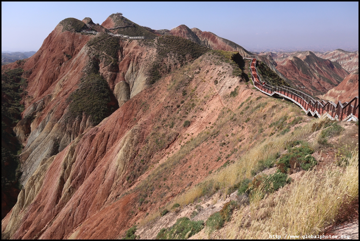 Just beyond Lanzhou's suburbs is a natural attraction well worth visiting. In fact, it was the main reason why I ended up including this city on the itinerary. Shuimo Danxia was formed about 150 million years ago during the Cretaceous and Tertiary periods. The red sandstone was eroded into the colourful mountain landscapes we see today.The site is vast but they have set up a lot of paths and routes so you will not be hiking in the wild. Prices vary with the most expensive SVIP ticket (288 yuan) including private transport so you can travel the entire loop in luxury. The standard fare (80 yuan) requires you to change various types of transport and there are gaps in between where you need to walk, and you won't be able to see the full loop with a large section of the park not reachable at all. Even with the cheaper standard ticket, I doubt you can see all that is available on a ticket in a full day either as the hiking paths are long and you have to backtrack to catch the transport out. After the initial coach ride (#1), you need to walk about 10 minutes down the road to the next intersection. On the right side, there are smaller train-like buses (#2) that will go uphill on the narrow road to the observation point (#3) and starting point for the long hike (#4).