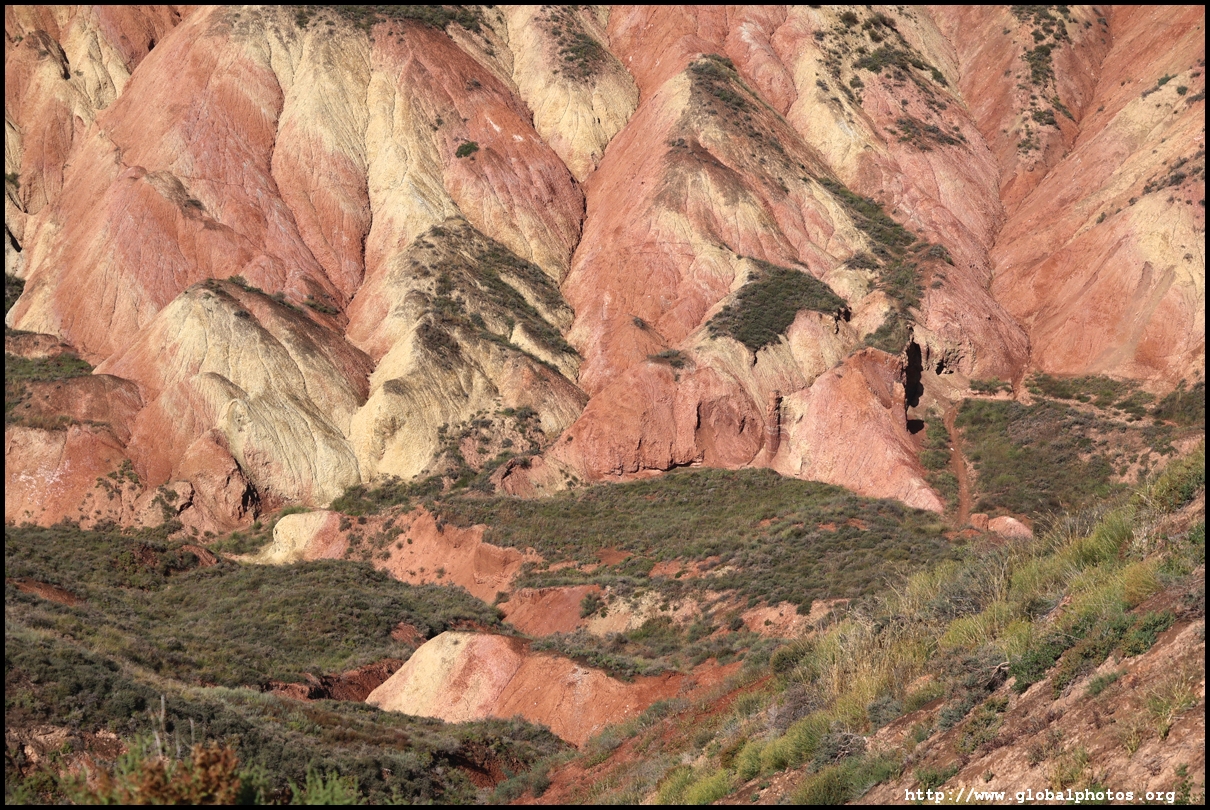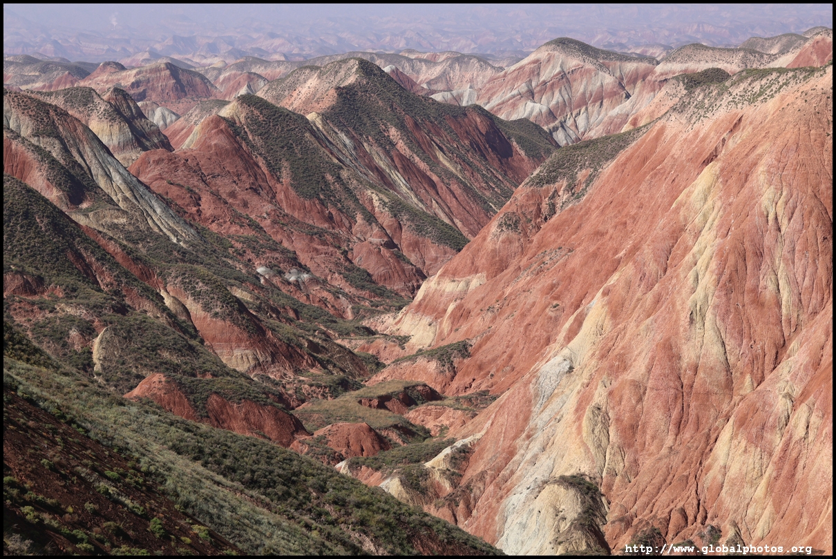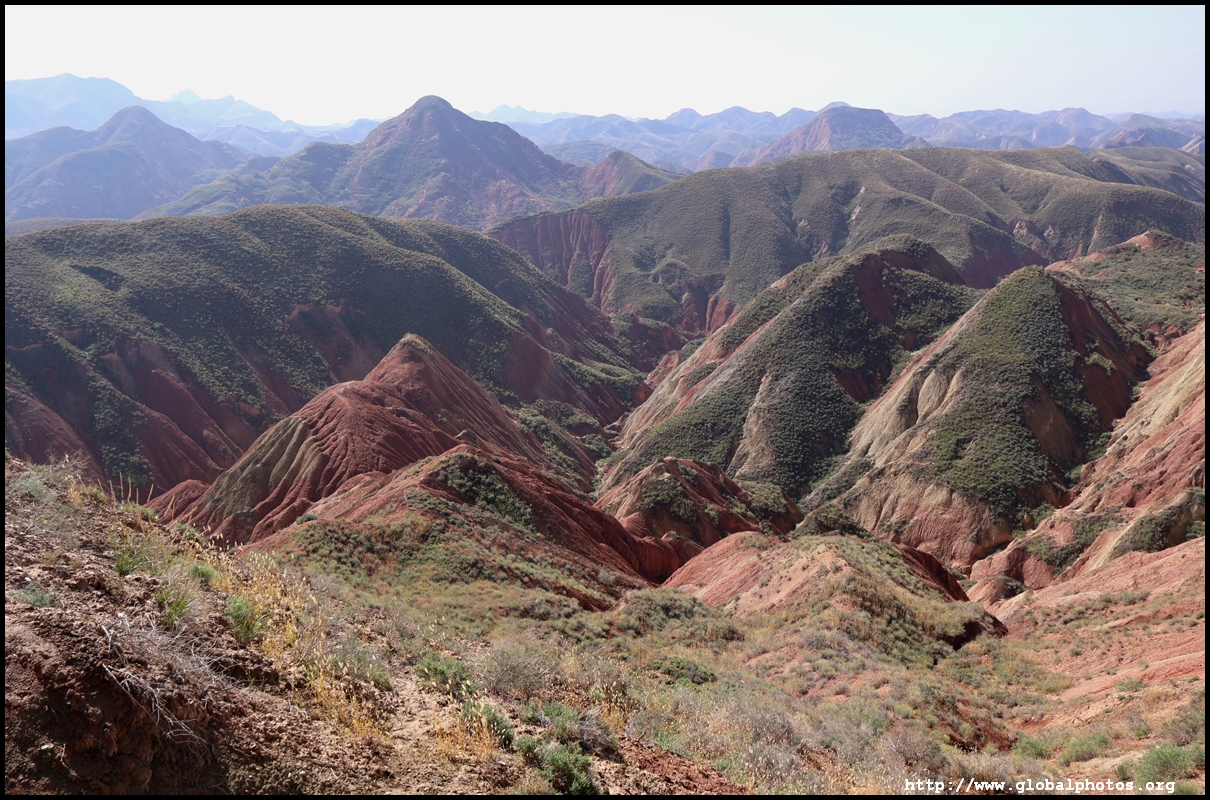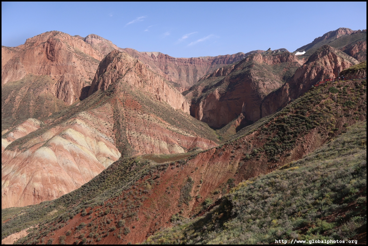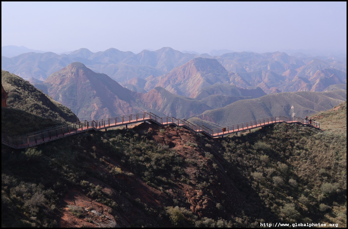 Just beyond Lanzhou's suburbs is a natural attraction well worth visiting. In fact, it was the main reason why I ended up including this city on the itinerary. Shuimo Danxia was formed about 150 million years ago during the Cretaceous and Tertiary periods. The red sandstone was eroded into the colourful mountain landscapes we see today.The site is vast but they have set up a lot of paths and routes so you will not be hiking in the wild. Prices vary with the most expensive SVIP ticket (288 yuan) including private transport so you can travel the entire loop in luxury. The standard fare (80 yuan) requires you to change various types of transport and there are gaps in between where you need to walk, and you won't be able to see the full loop with a large section of the park not reachable at all. Even with the cheaper standard ticket, I doubt you can see all that is available on a ticket in a full day either as the hiking paths are long and you have to backtrack to catch the transport out. After the initial coach ride (#1), you need to walk about 10 minutes down the road to the next intersection. On the right side, there are smaller train-like buses (#2) that will go uphill on the narrow road to the observation point (#3) and starting point for the long hike (#4).