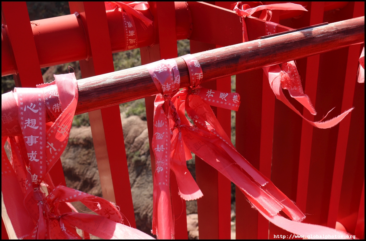 The long hike is along paved sections but there is a long staircase going down the mountain to the photogenic red Ruyi Bridge.