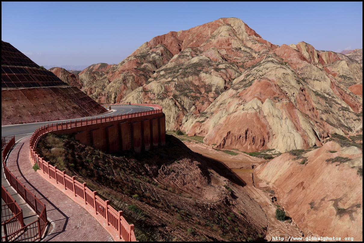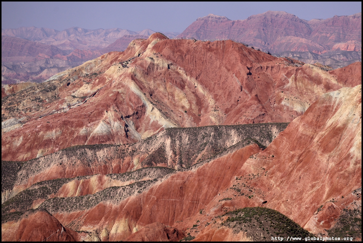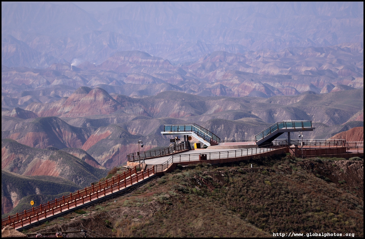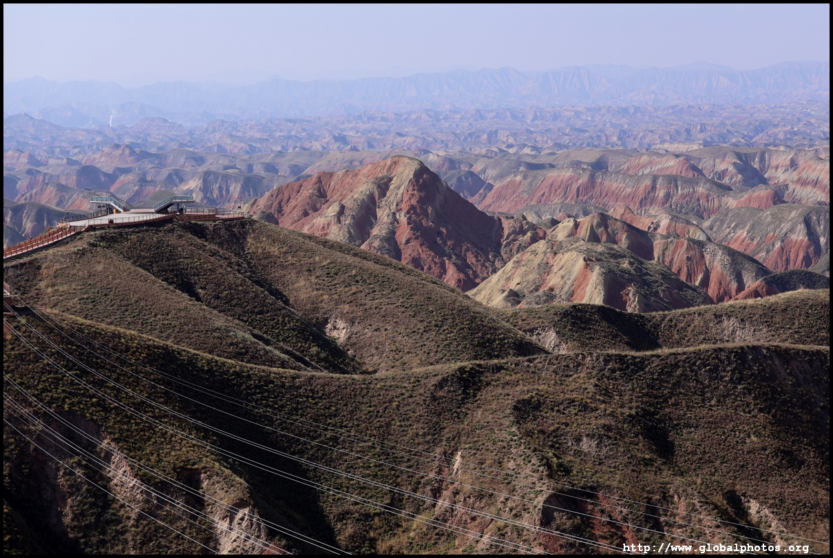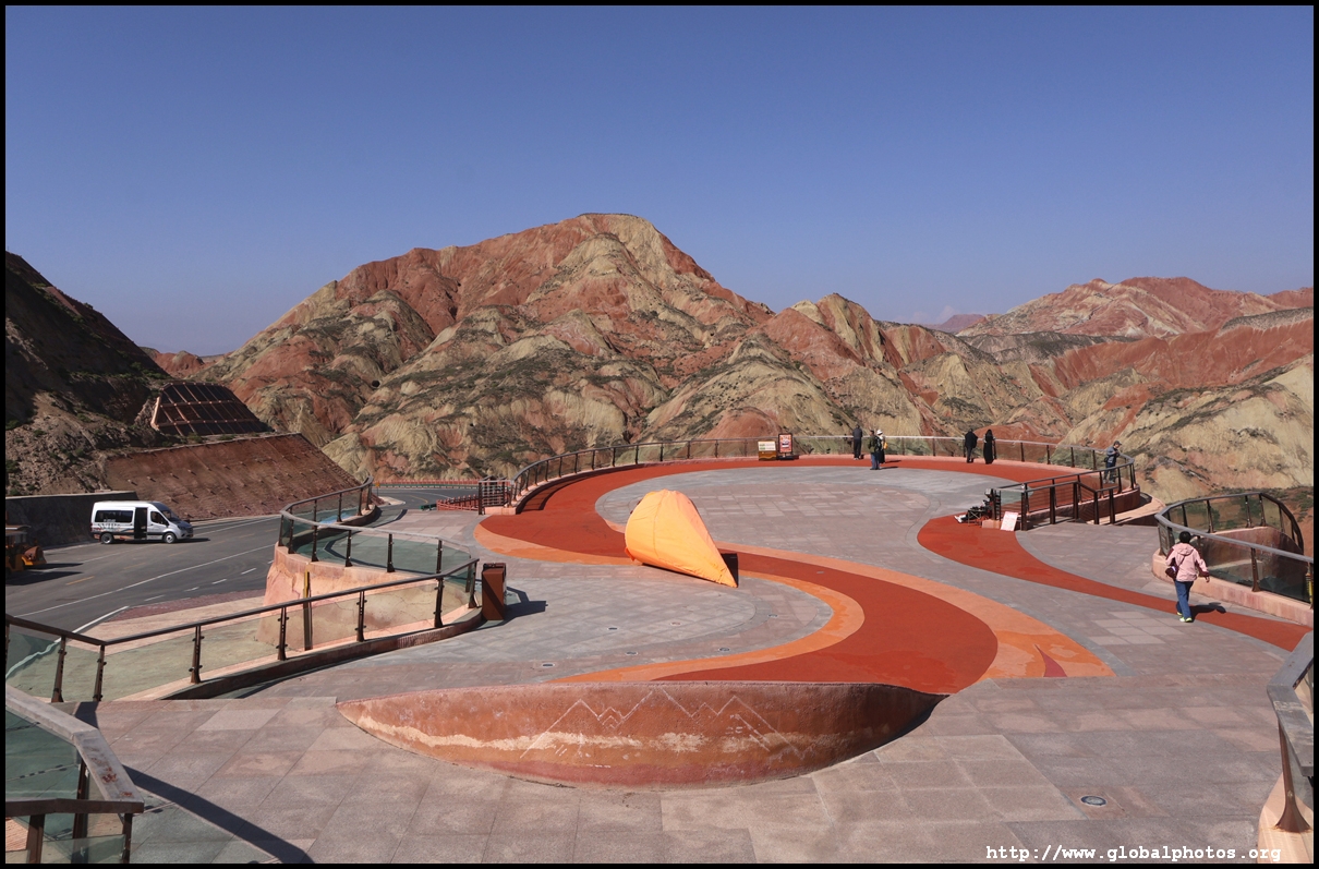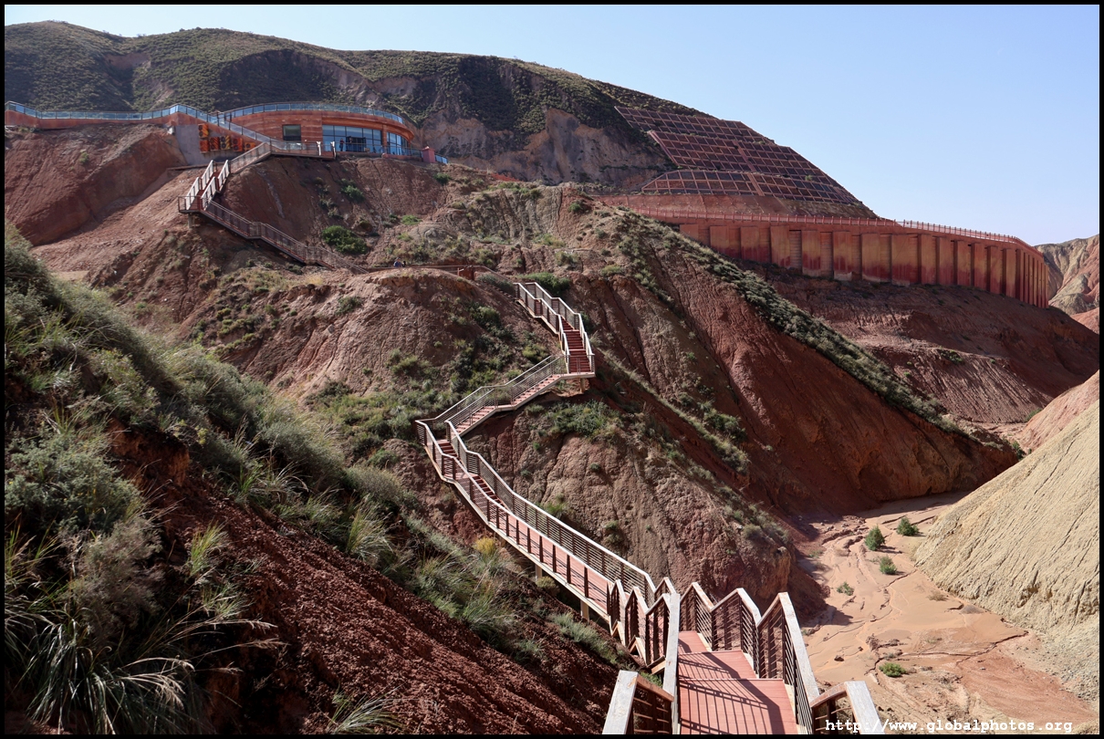 Just beyond Lanzhou's suburbs is a natural attraction well worth visiting. In fact, it was the main reason why I ended up including this city on the itinerary. Shuimo Danxia was formed about 150 million years ago during the Cretaceous and Tertiary periods. The red sandstone was eroded into the colourful mountain landscapes we see today.The site is vast but they have set up a lot of paths and routes so you will not be hiking in the wild. Prices vary with the most expensive SVIP ticket (288 yuan) including private transport so you can travel the entire loop in luxury. The standard fare (80 yuan) requires you to change various types of transport and there are gaps in between where you need to walk, and you won't be able to see the full loop with a large section of the park not reachable at all. Even with the cheaper standard ticket, I doubt you can see all that is available on a ticket in a full day either as the hiking paths are long and you have to backtrack to catch the transport out. After exploring the upper section of the park, I returned back the way I came. From the end of the train-like bus, take a 20 minute walk to your right (#5) along a scenic road to reach the shuttle bus to the next viewpoint (#6). There are small vehicles you can rent to save the walk if you are on a standard ticket, but I suggest walking as the scenery is breathtaking. You get a very wide view of the colourful mountains and the perspective is a bit different.