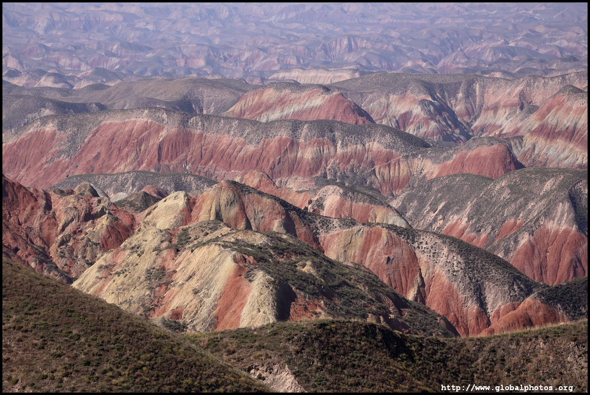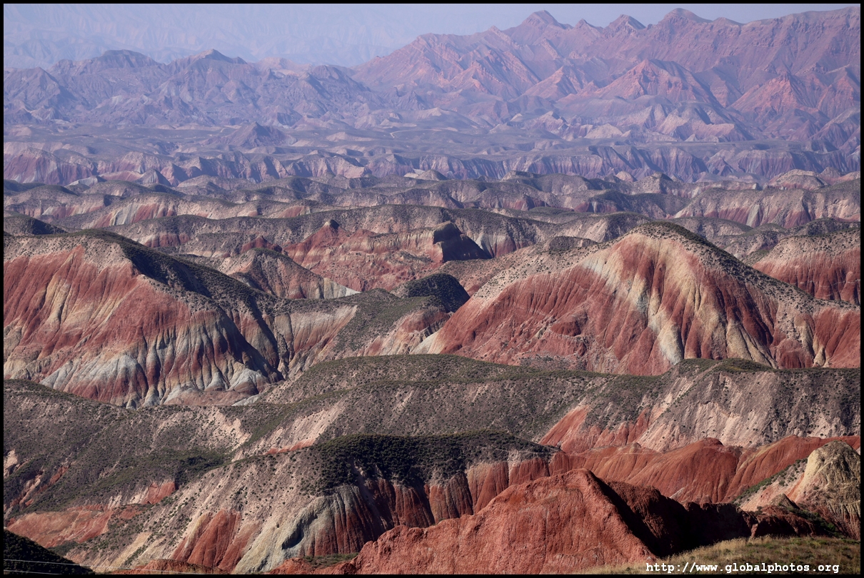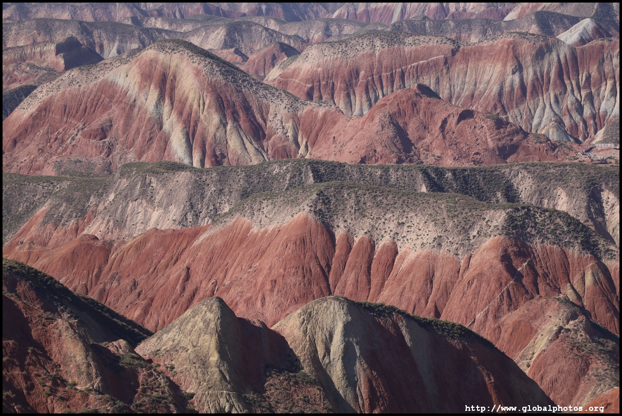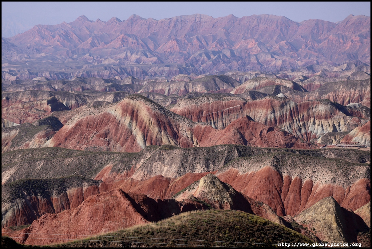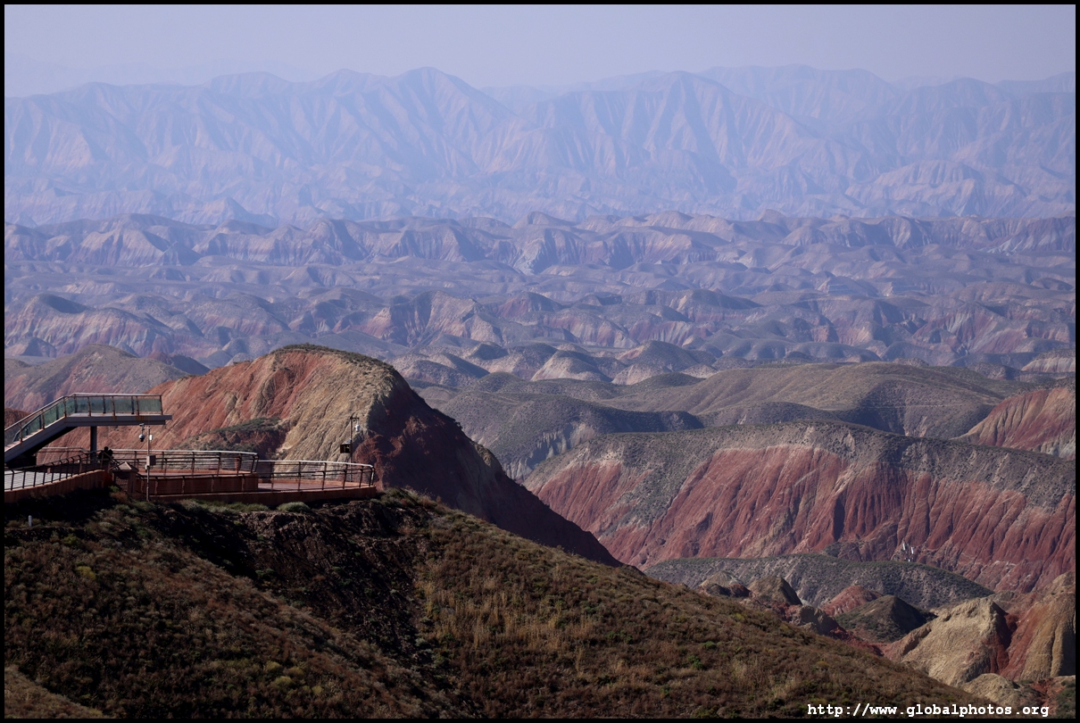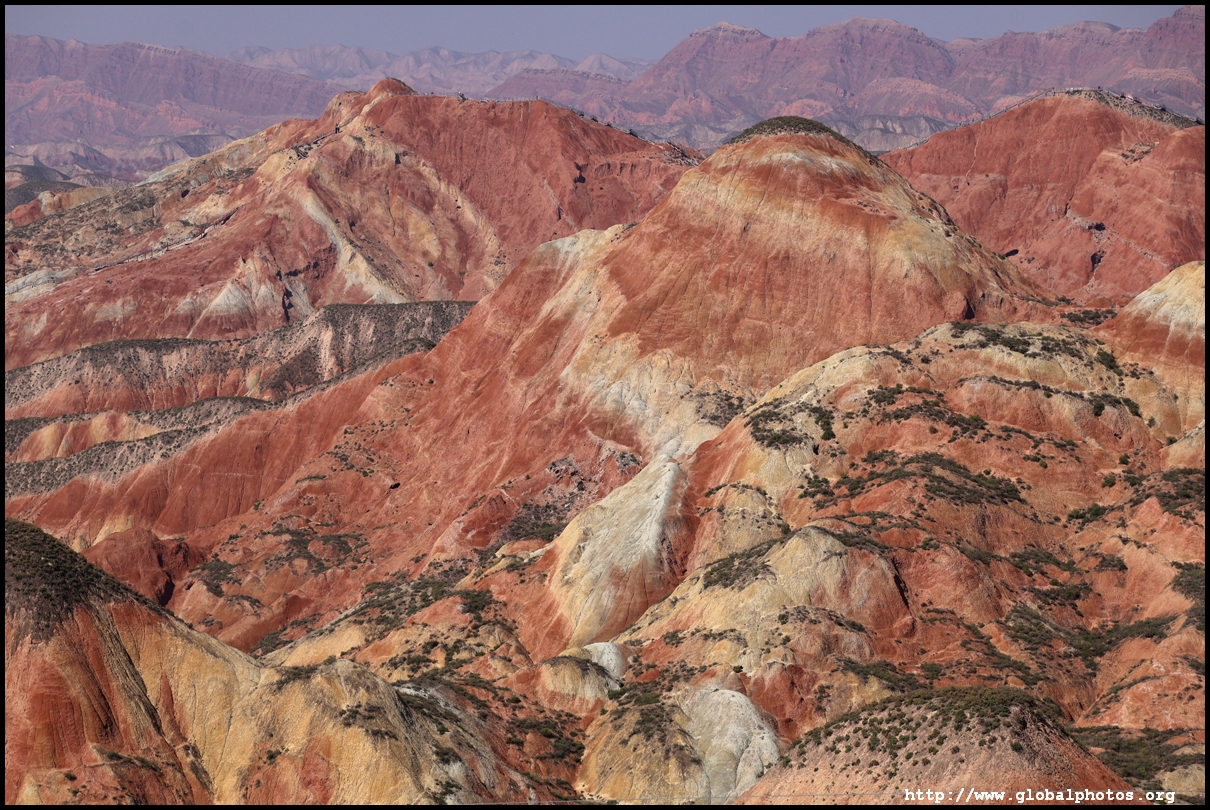 Just beyond Lanzhou's suburbs is a natural attraction well worth visiting. In fact, it was the main reason why I ended up including this city on the itinerary. Shuimo Danxia was formed about 150 million years ago during the Cretaceous and Tertiary periods. The red sandstone was eroded into the colourful mountain landscapes we see today.The site is vast but they have set up a lot of paths and routes so you will not be hiking in the wild. Prices vary with the most expensive SVIP ticket (288 yuan) including private transport so you can travel the entire loop in luxury. The standard fare (80 yuan) requires you to change various types of transport and there are gaps in between where you need to walk, and you won't be able to see the full loop with a large section of the park not reachable at all. Even with the cheaper standard ticket, I doubt you can see all that is available on a ticket in a full day either as the hiking paths are long and you have to backtrack to catch the transport out. After exploring the upper section of the park, I returned back the way I came. From the end of the train-like bus, take a 20 minute walk to your right (#5) along a scenic road to reach the shuttle bus to the next viewpoint (#6). There are small vehicles you can rent to save the walk if you are on a standard ticket, but I suggest walking as the scenery is breathtaking. You get a very wide view of the colourful mountains and the perspective is a bit different.