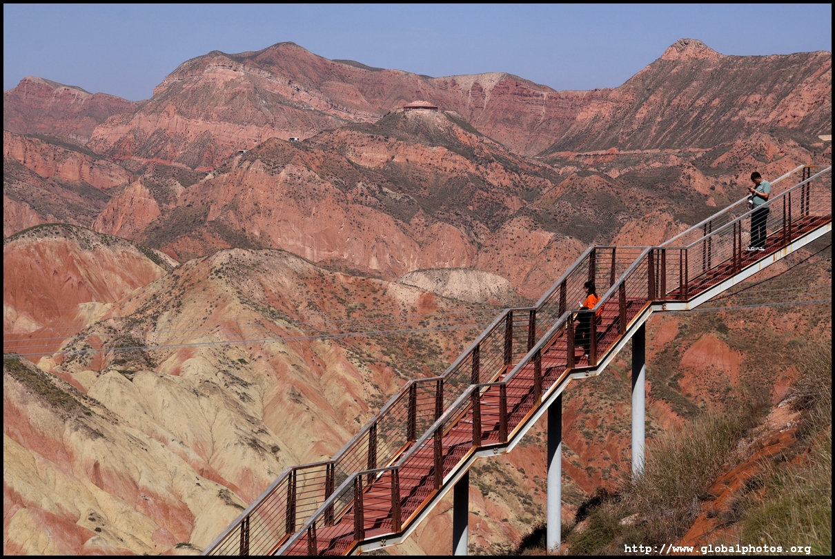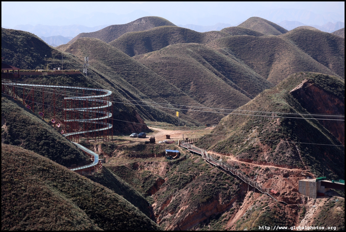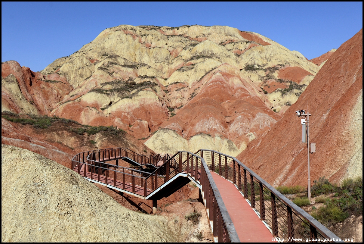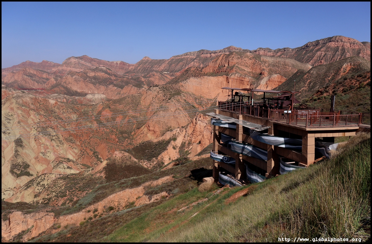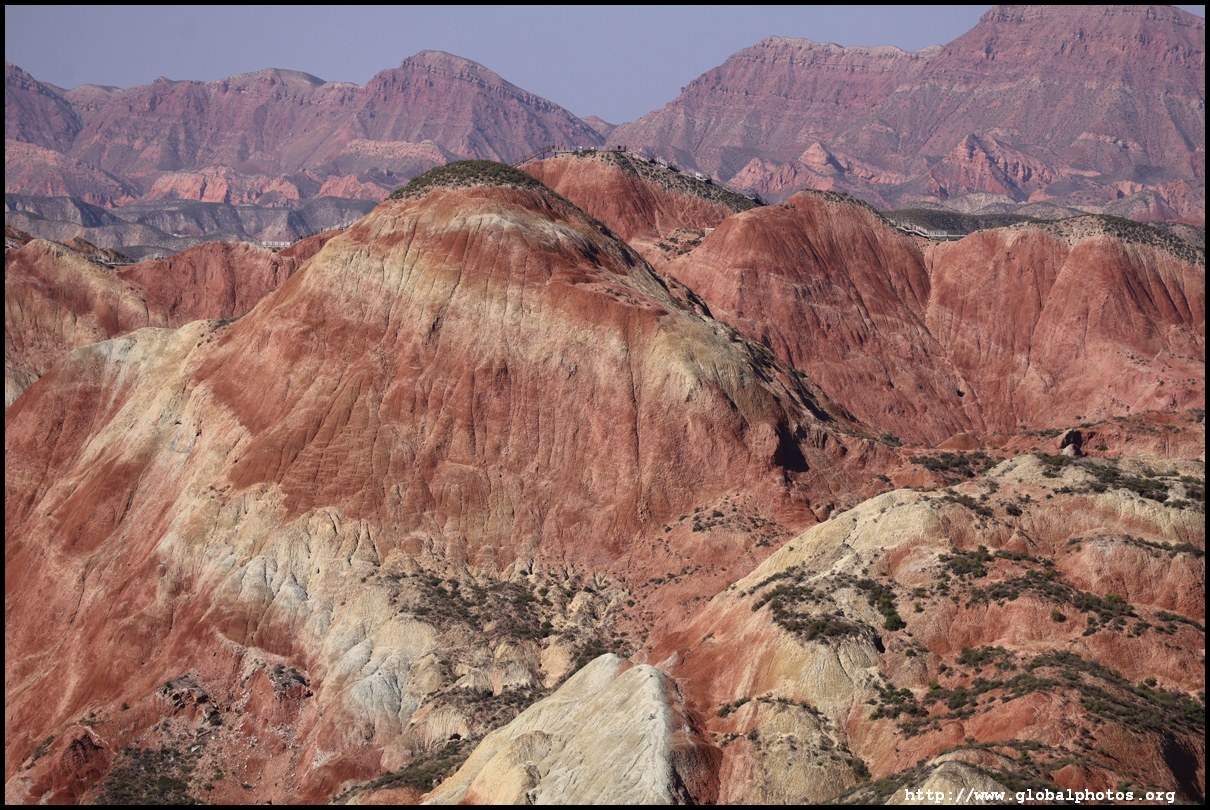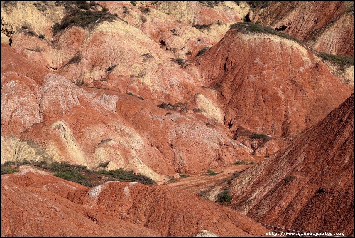 Just beyond Lanzhou's suburbs is a natural attraction well worth visiting. In fact, it was the main reason why I ended up including this city on the itinerary. Shuimo Danxia was formed about 150 million years ago during the Cretaceous and Tertiary periods. The red sandstone was eroded into the colourful mountain landscapes we see today.The site is vast but they have set up a lot of paths and routes so you will not be hiking in the wild. Prices vary with the most expensive SVIP ticket (288 yuan) including private transport so you can travel the entire loop in luxury. The standard fare (80 yuan) requires you to change various types of transport and there are gaps in between where you need to walk, and you won't be able to see the full loop with a large section of the park not reachable at all. Even with the cheaper standard ticket, I doubt you can see all that is available on a ticket in a full day either as the hiking paths are long and you have to backtrack to catch the transport out. After exploring the upper section of the park, I returned back the way I came. From the end of the train-like bus, take a 20 minute walk to your right (#5) along a scenic road to reach the shuttle bus to the next viewpoint (#6). There are small vehicles you can rent to save the walk if you are on a standard ticket, but I suggest walking as the scenery is breathtaking. You get a very wide view of the colourful mountains and the perspective is a bit different.