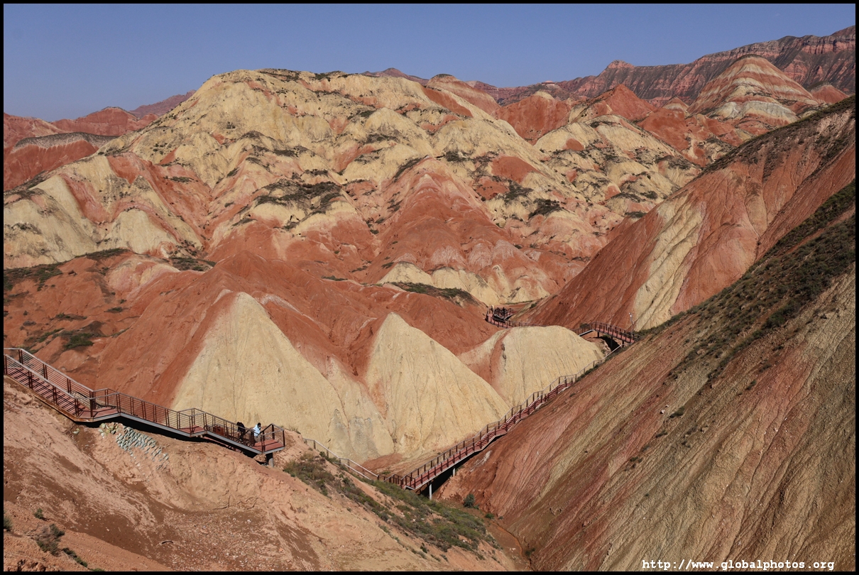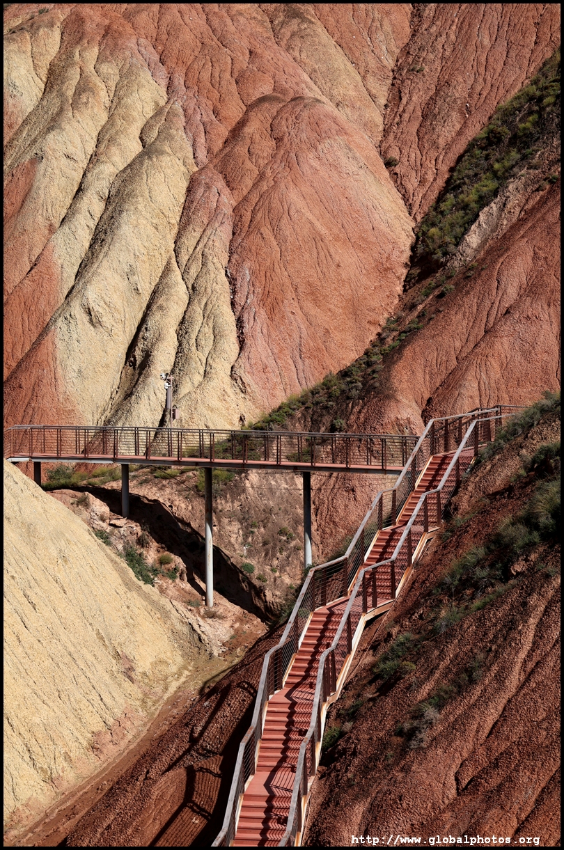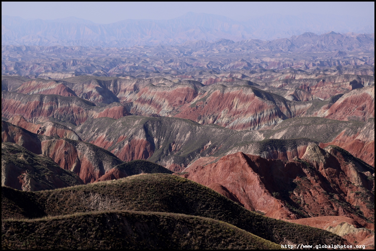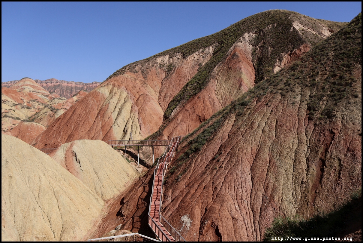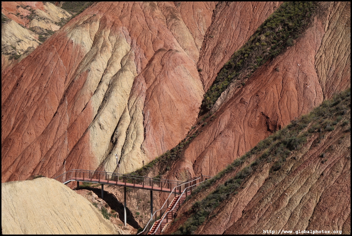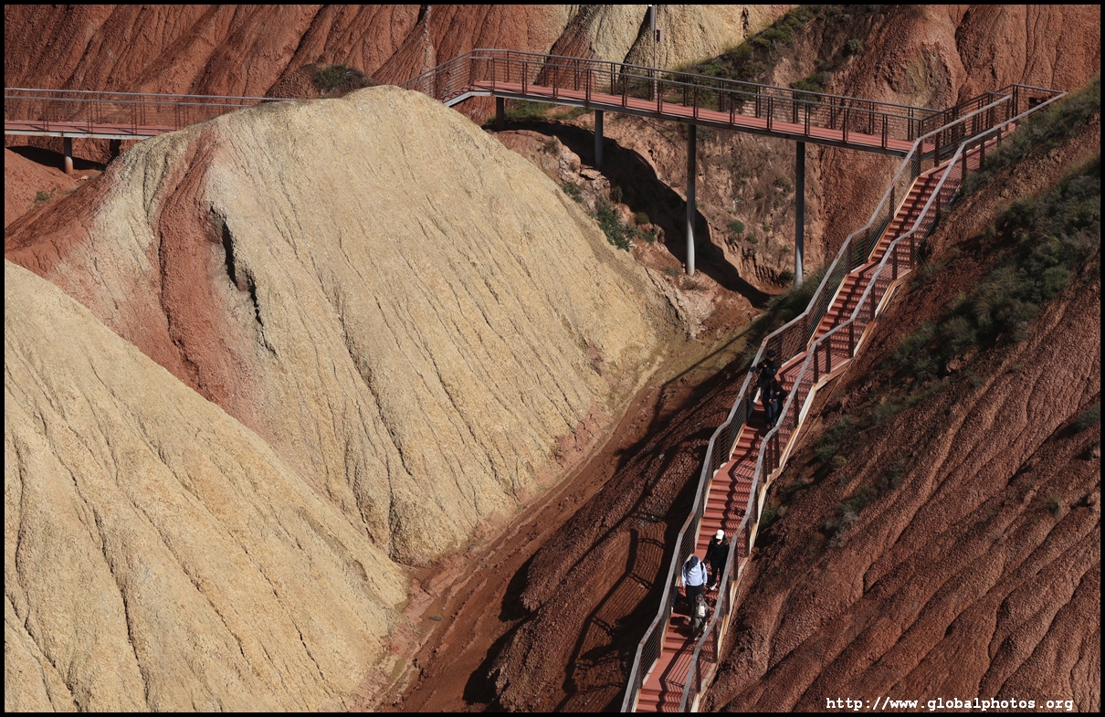 Just beyond Lanzhou's suburbs is a natural attraction well worth visiting. In fact, it was the main reason why I ended up including this city on the itinerary. Shuimo Danxia was formed about 150 million years ago during the Cretaceous and Tertiary periods. The red sandstone was eroded into the colourful mountain landscapes we see today.The site is vast but they have set up a lot of paths and routes so you will not be hiking in the wild. Prices vary with the most expensive SVIP ticket (288 yuan) including private transport so you can travel the entire loop in luxury. The standard fare (80 yuan) requires you to change various types of transport and there are gaps in between where you need to walk, and you won't be able to see the full loop with a large section of the park not reachable at all. Even with the cheaper standard ticket, I doubt you can see all that is available on a ticket in a full day either as the hiking paths are long and you have to backtrack to catch the transport out. After exploring the upper section of the park, I returned back the way I came. From the end of the train-like bus, take a 20 minute walk to your right (#5) along a scenic road to reach the shuttle bus to the next viewpoint (#6). There are small vehicles you can rent to save the walk if you are on a standard ticket, but I suggest walking as the scenery is breathtaking. You get a very wide view of the colourful mountains and the perspective is a bit different.
