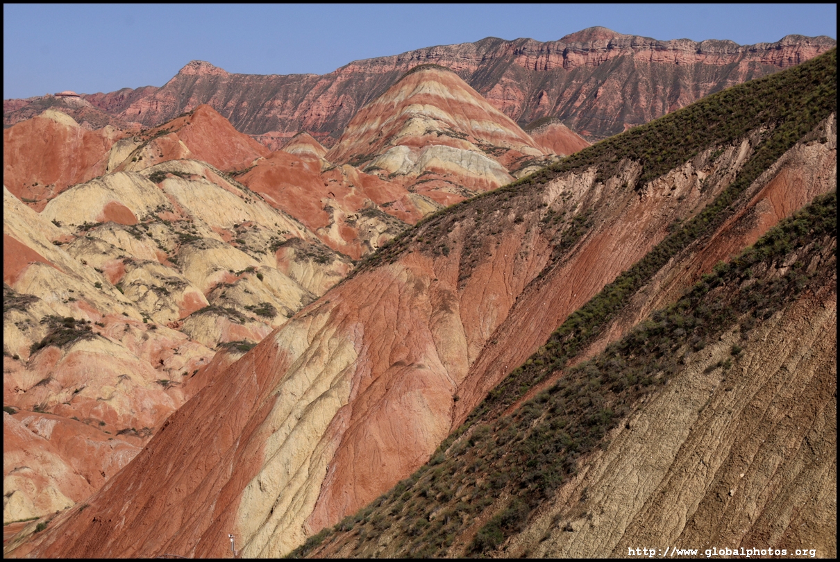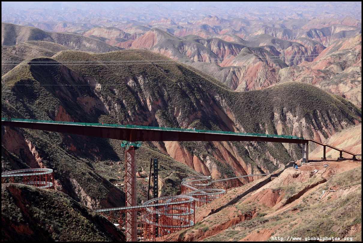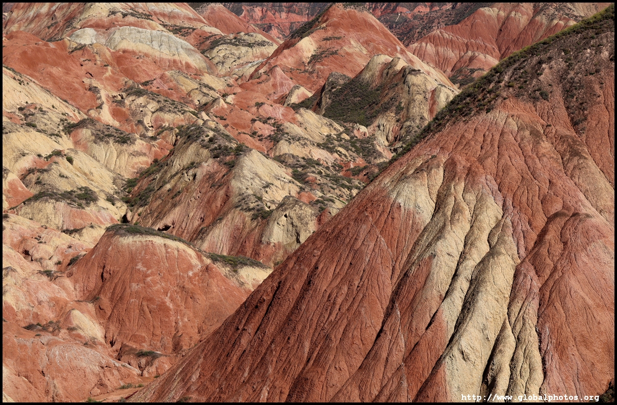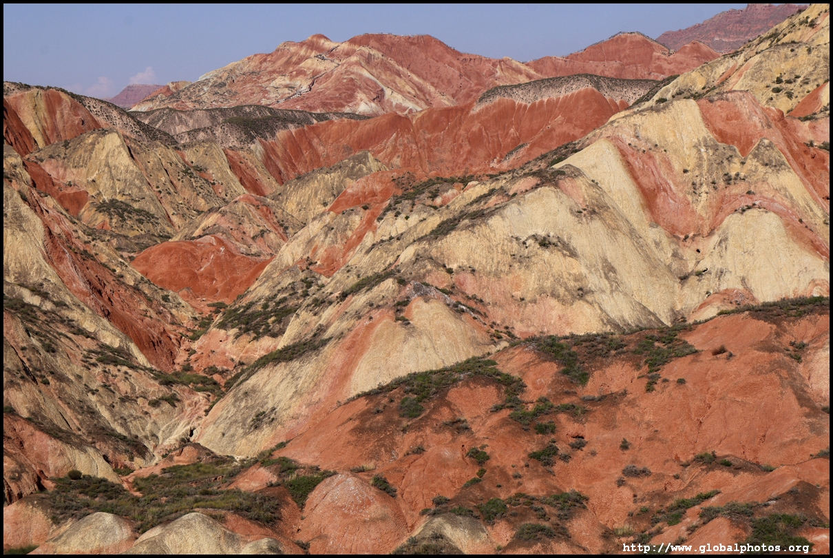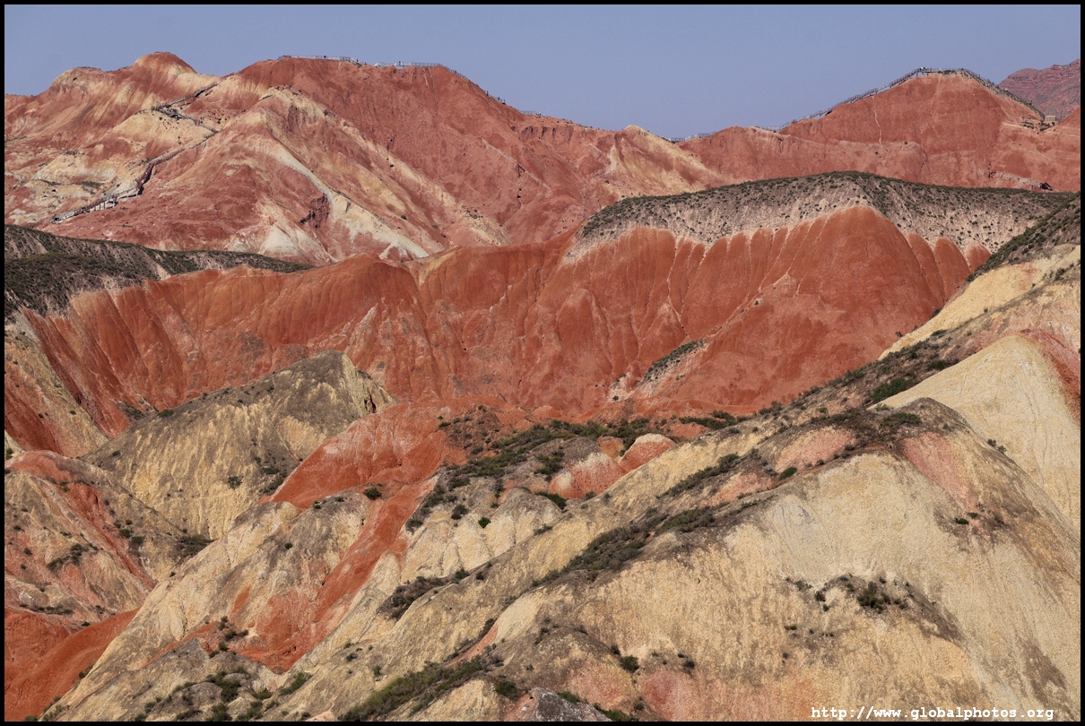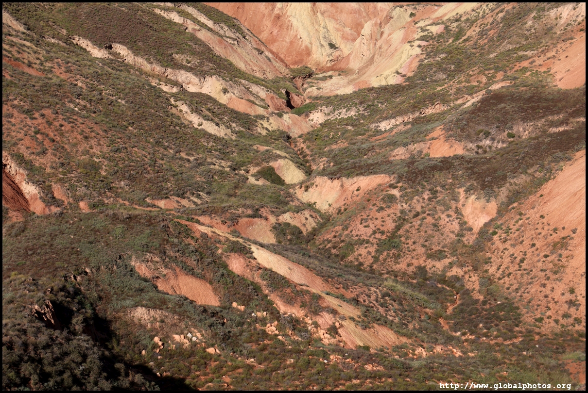 Just beyond Lanzhou's suburbs is a natural attraction well worth visiting. In fact, it was the main reason why I ended up including this city on the itinerary. Shuimo Danxia was formed about 150 million years ago during the Cretaceous and Tertiary periods. The red sandstone was eroded into the colourful mountain landscapes we see today.The site is vast but they have set up a lot of paths and routes so you will not be hiking in the wild. Prices vary with the most expensive SVIP ticket (288 yuan) including private transport so you can travel the entire loop in luxury. The standard fare (80 yuan) requires you to change various types of transport and there are gaps in between where you need to walk, and you won't be able to see the full loop with a large section of the park not reachable at all. Even with the cheaper standard ticket, I doubt you can see all that is available on a ticket in a full day either as the hiking paths are long and you have to backtrack to catch the transport out. After exploring the upper section of the park, I returned back the way I came. From the end of the train-like bus, take a 20 minute walk to your right (#5) along a scenic road to reach the shuttle bus to the next viewpoint (#6). There are small vehicles you can rent to save the walk if you are on a standard ticket, but I suggest walking as the scenery is breathtaking. You get a very wide view of the colourful mountains and the perspective is a bit different.