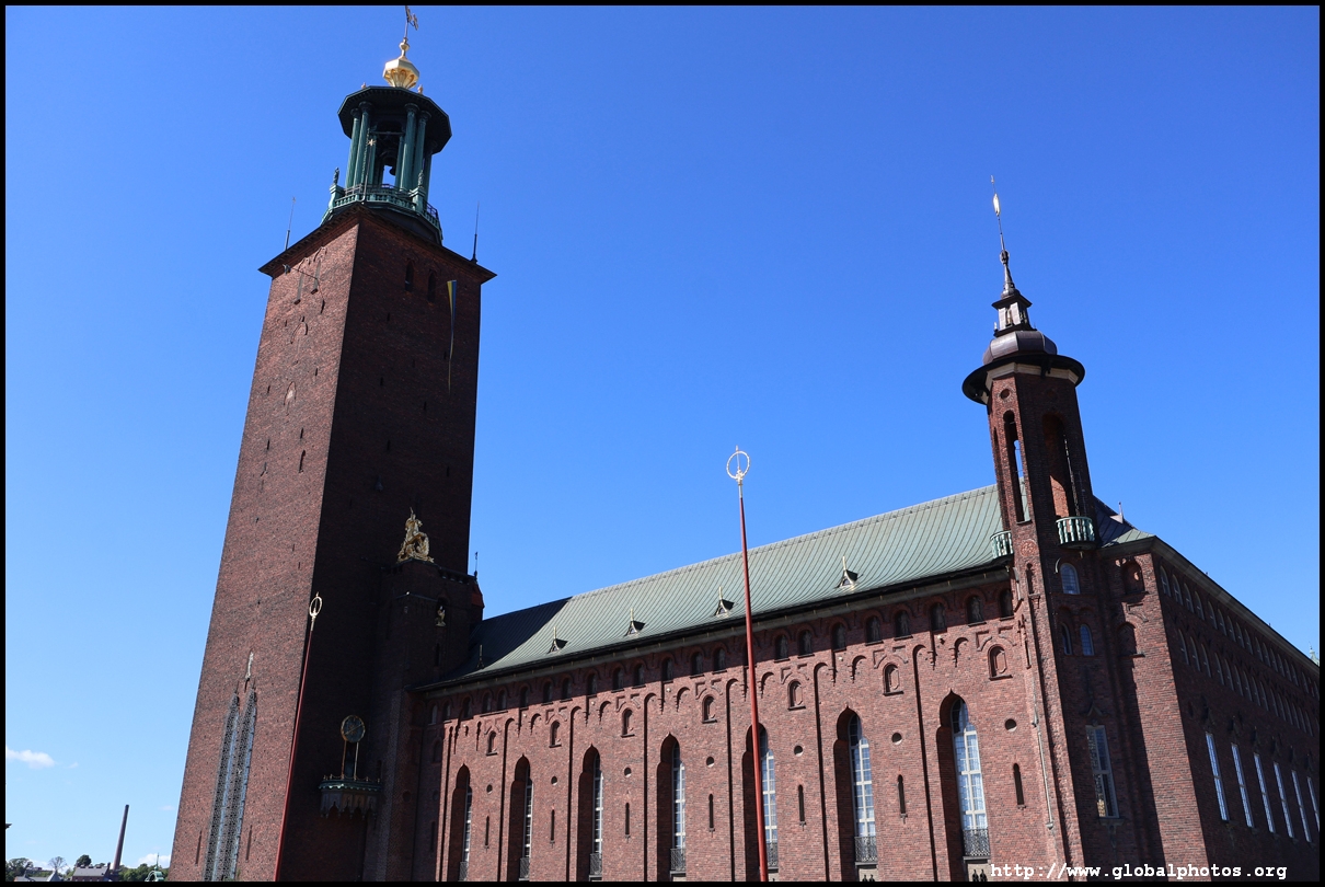 City Hall's design revolves around 2 courtyards, which takes inspiration from Italian palaces. The tour starts in the Blue Hall, which is used for banquets and is lined with red bricks. Initially, the plan was to install blue bricks, but that was changed. The 8 million bricks used in the building were made locally by hand. Since 1974, the Nobel banquet has been held in this spot annually. 65 tables, 6730 pieces of orcelain, 5384 glasses, and 9422 pieces of cutlery are used for the meal. The menu choices are presented to the Nobel Foundation in September and the final decision is kept secret until the day of in December.