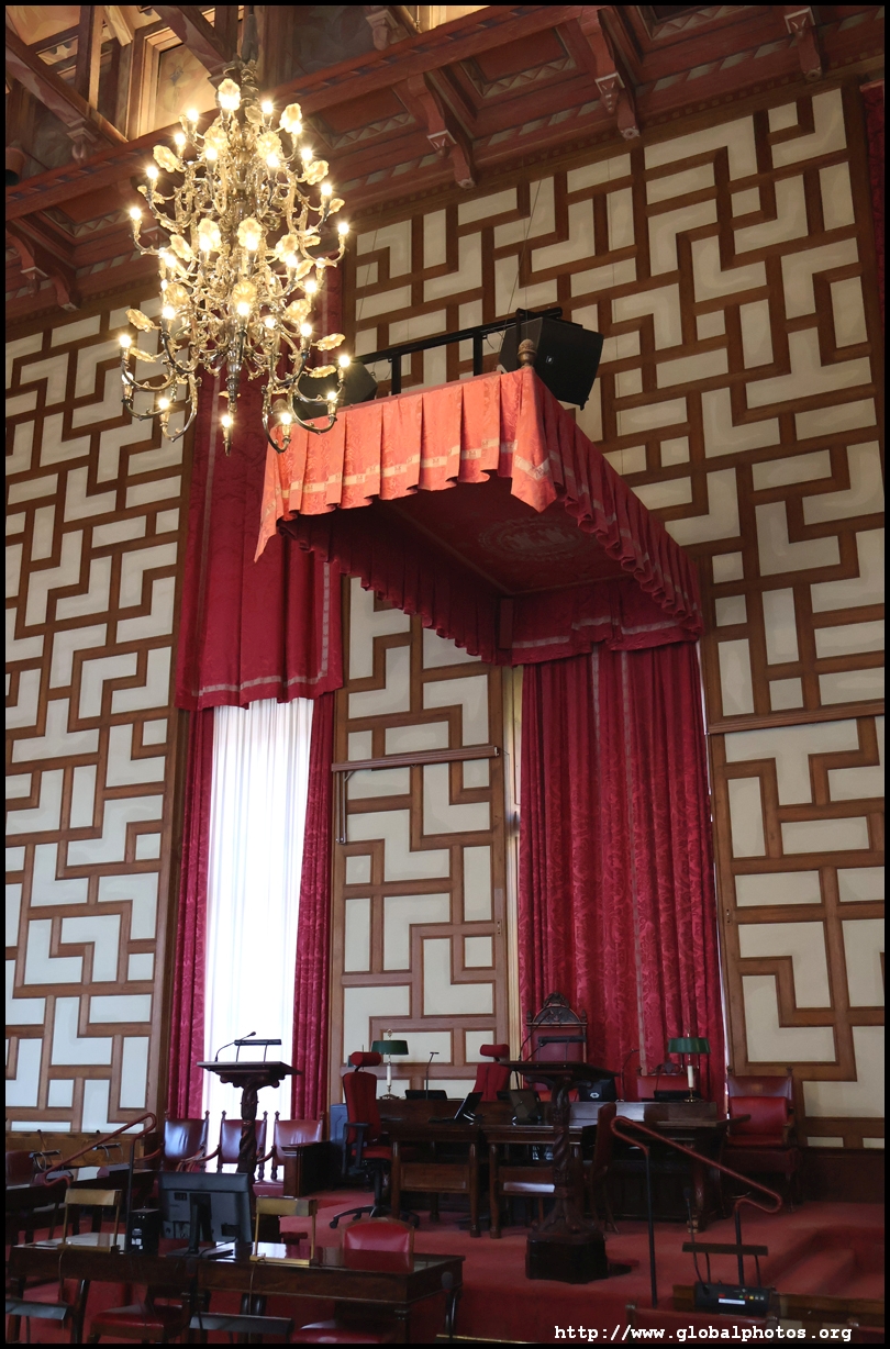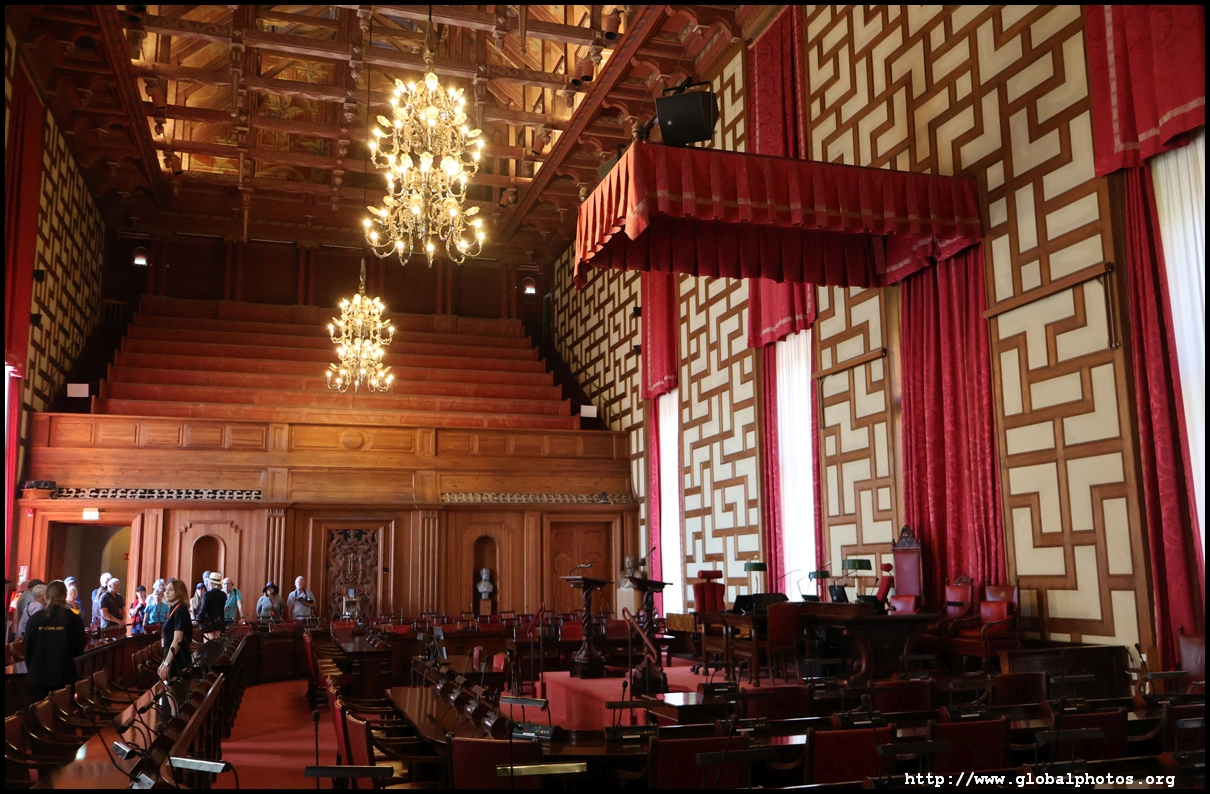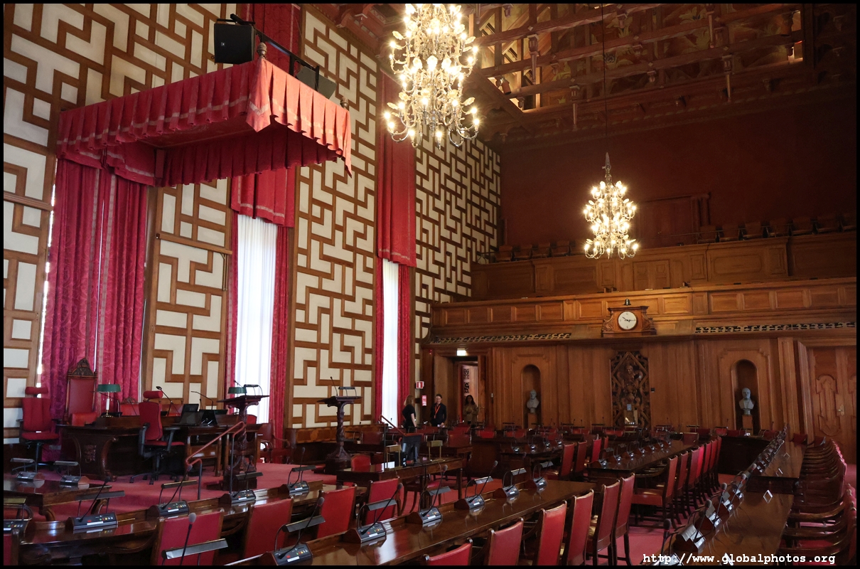 The Stockholm City Council meets in the Council Chamber every third Monday. 101 members strong, the public and journalists have their own sections of gallery on opposite sides.
