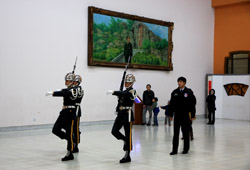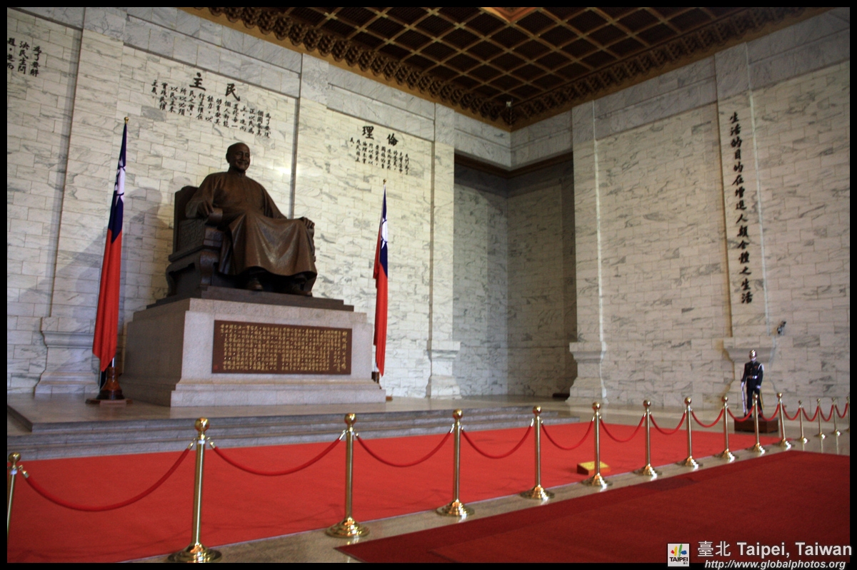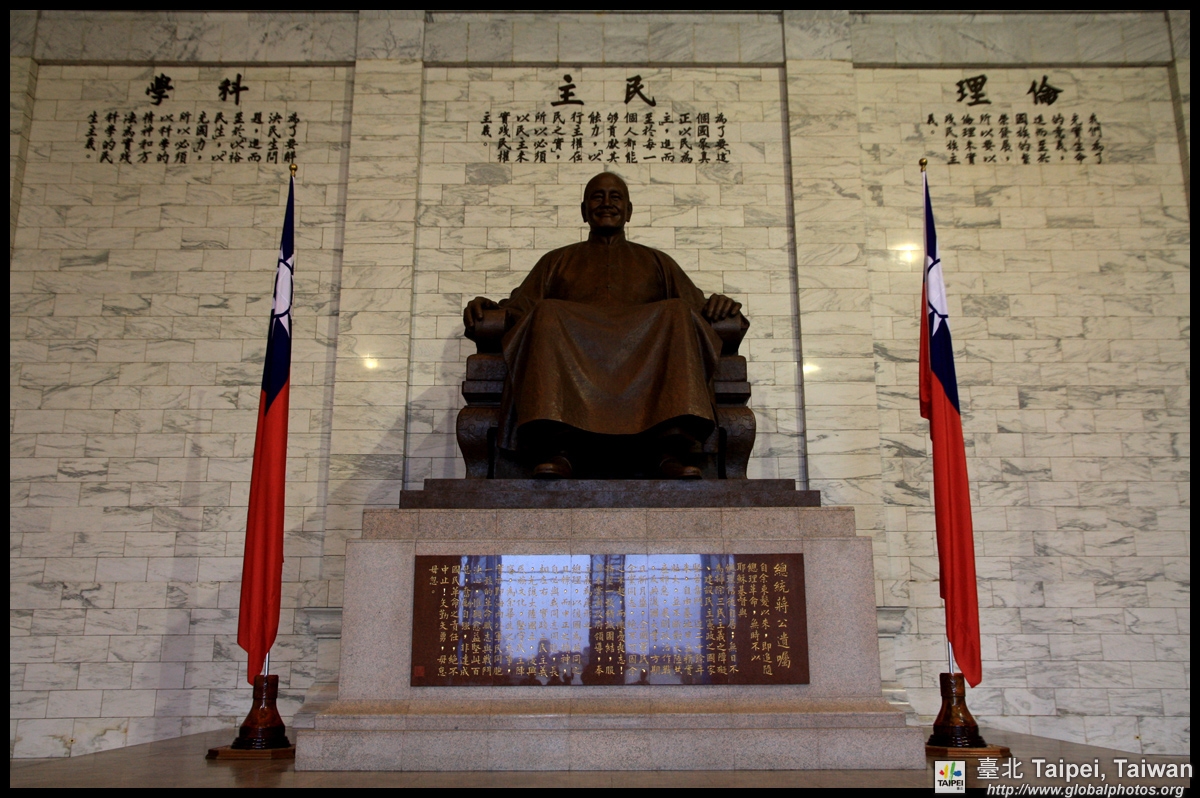 Chiang died in 1975 and the memorial opened in 1980. The honour guard protecting the statue changes hourly, while behind it is an exhibition of his life and how he fled with his Nationalist government across the strait.