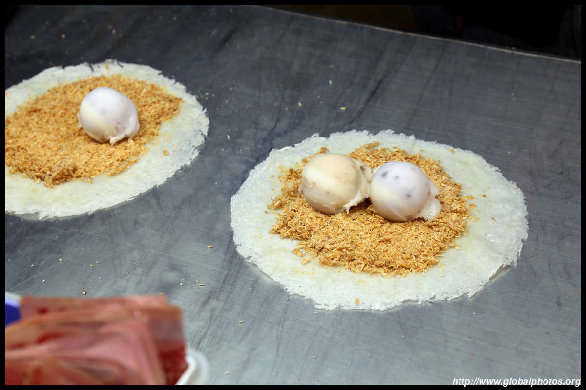 Do your research beforehand for some key local eats. This one wraps ice cream around a freshly-carved peanut block.