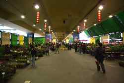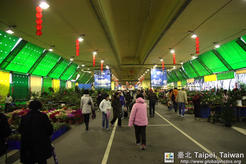 Jianguo Holiday Flower Market is situated under a highway bridge and is a popular weekend shopping destination.