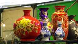 Across the street, this section sells art creations.
