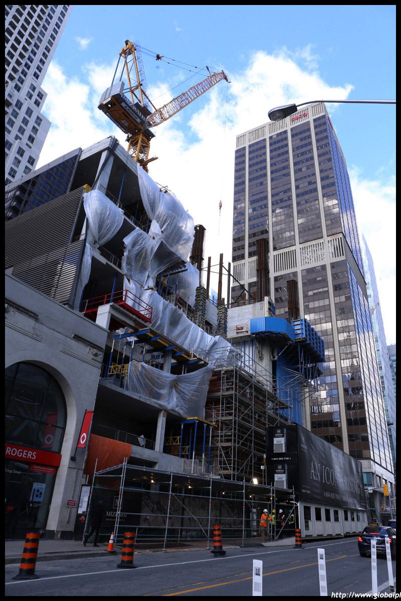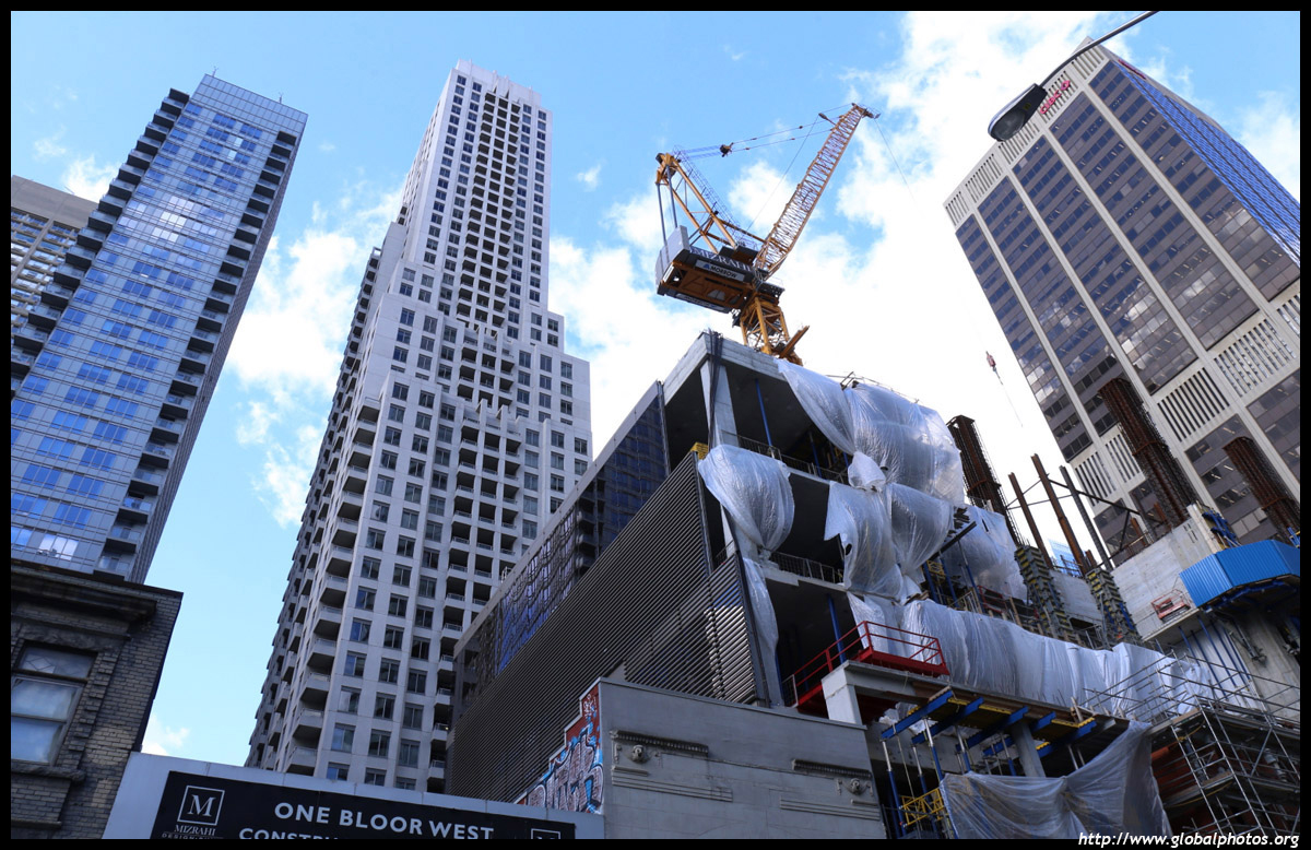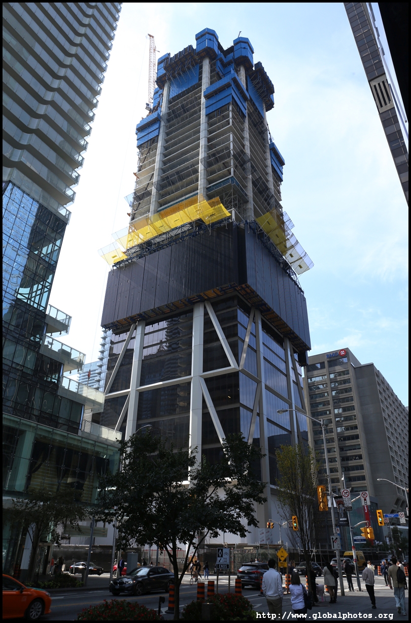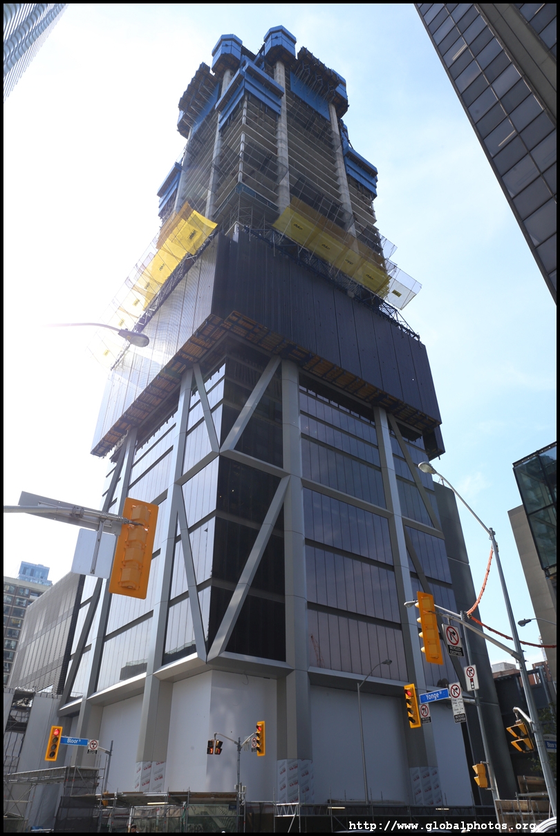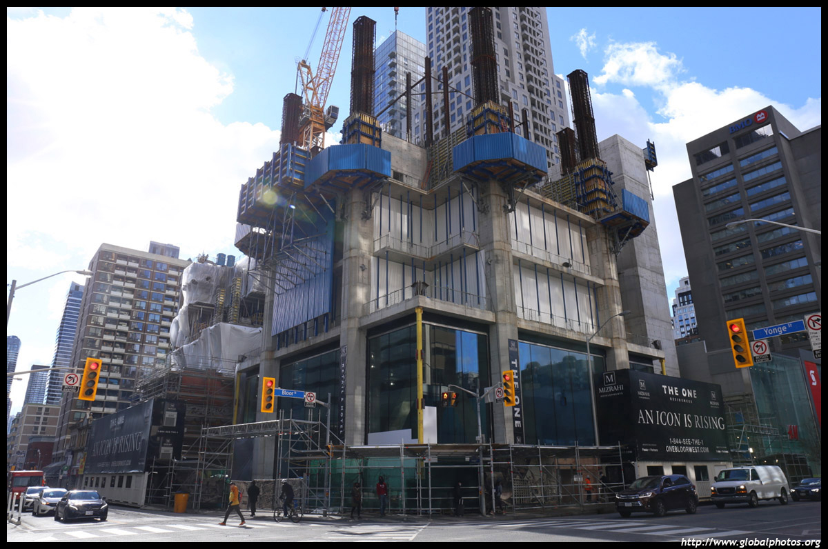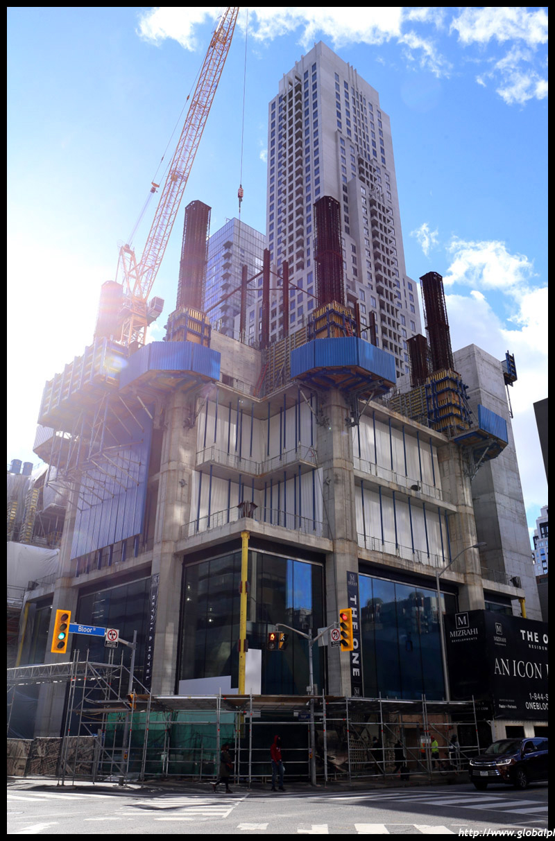One Bloor Street West, or The One, is one of many tall condominium towers under construction downtown. Located at the intersection of Yonge and Bloor, a traditionbally high-class shopping area, the 85-storey building was hoping to become the tallest residential tower in the country.Designed by reknowned international architect firm Foster + Partners, the building's design has a lattice exoskeleton and bronze trusses. It will be home to 416 residences, including a $35 million penthouse on the entire 80th floor with 6 bedrooms and 8 bathrooms. The project was placed into receivership in October 2023 after a lender decided not to provide additional funding and the original developer was pushed out. There were also allegations of infighting between its principals. Oct 8, 2024