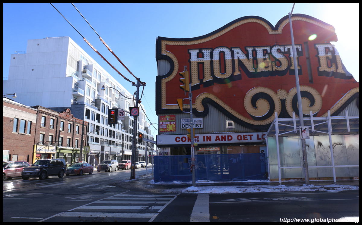 Honest Ed's opened in 1948, selling bargains to neighbourhood residents when big box stores were not invented yet. It became an institution in the city, famous for its hand-painted signs, bright neon exterior, and annual turkey giveaways. Redevelopment knocked on its heels, and the store closed its doors in 2016.