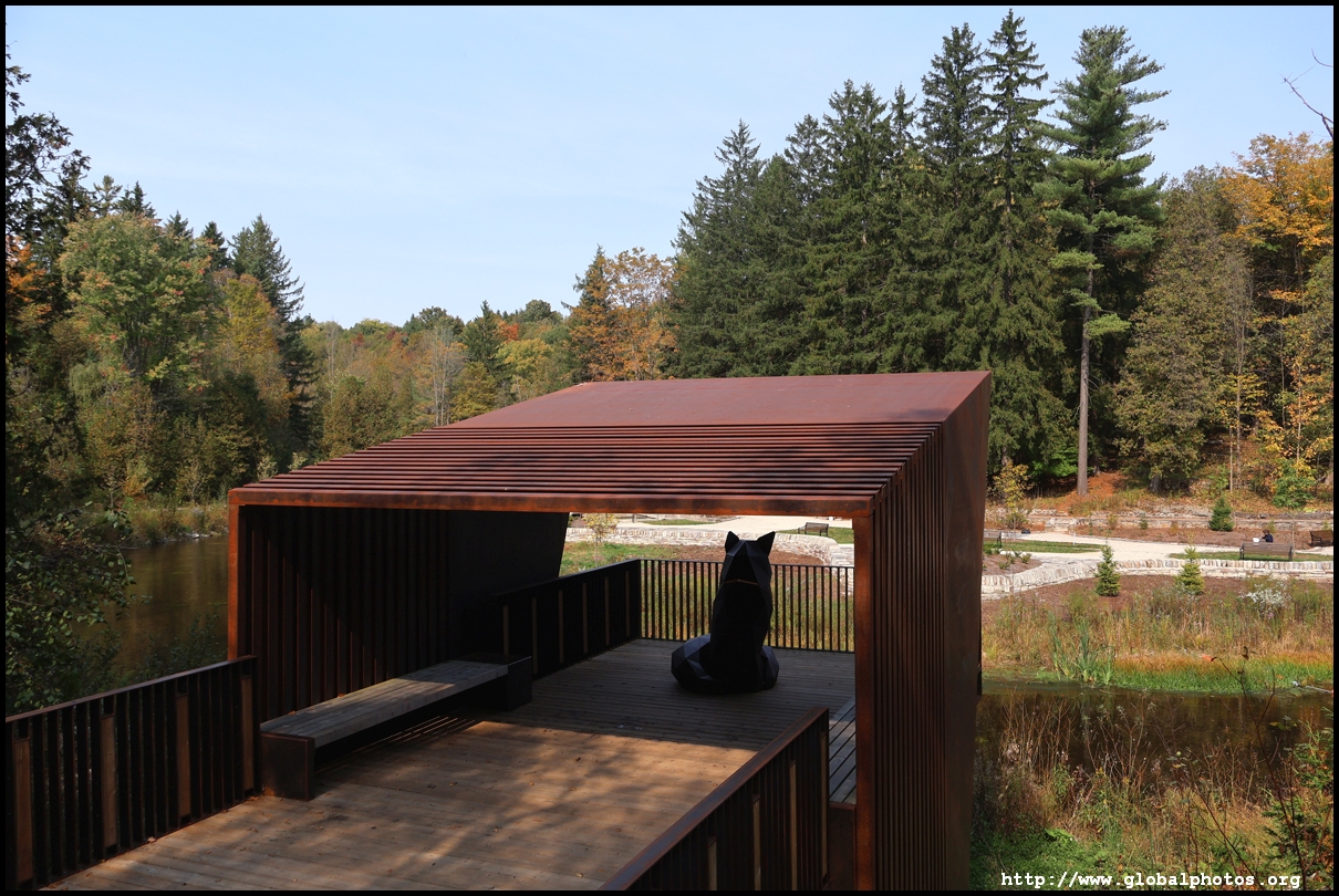Belfountain Conservation Area has a series of very short trails along the West Credit River and waterfalls. It underwent restoration in 2021 with new and restored features such as a fox sculpture, fountain, and suspension bridge.