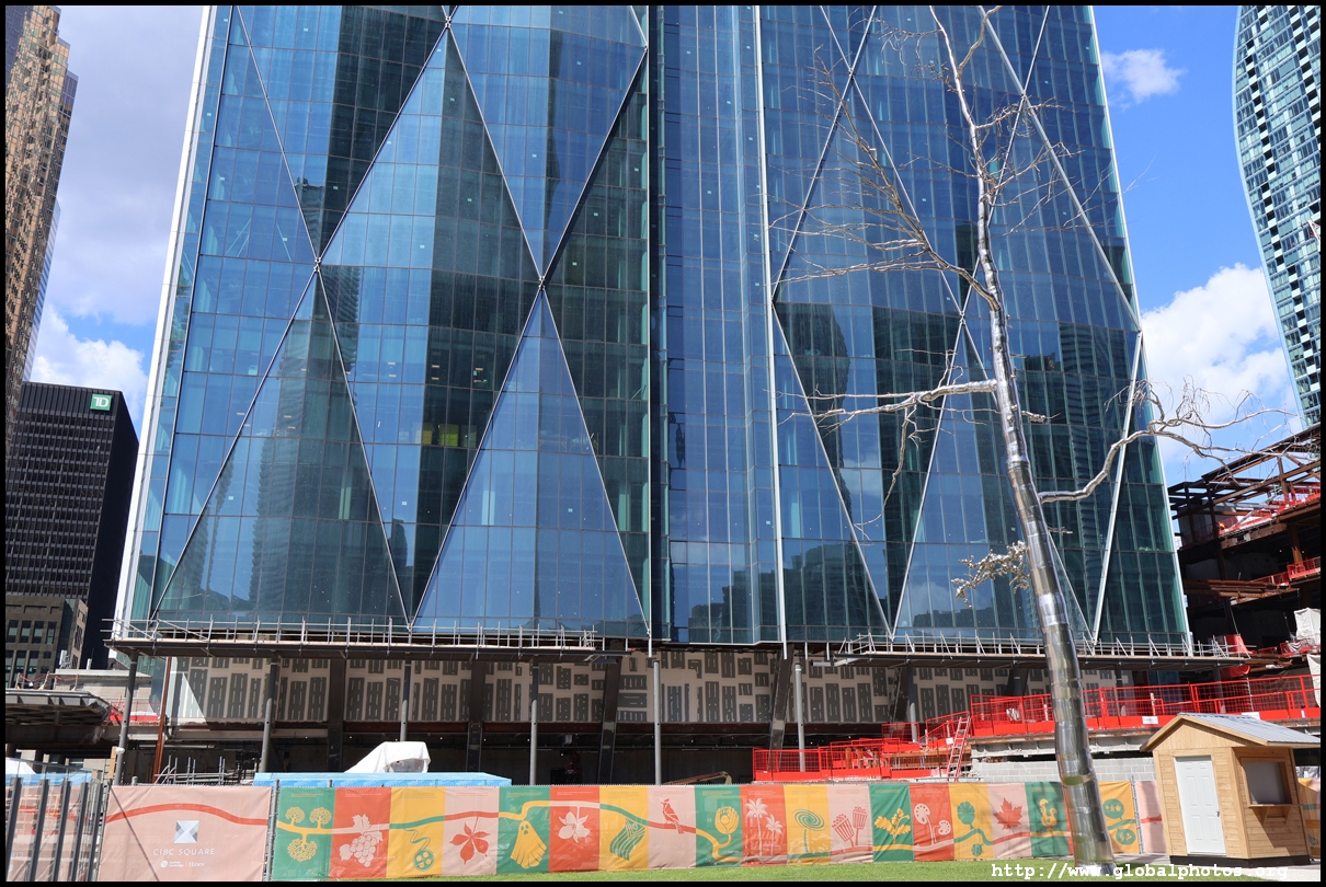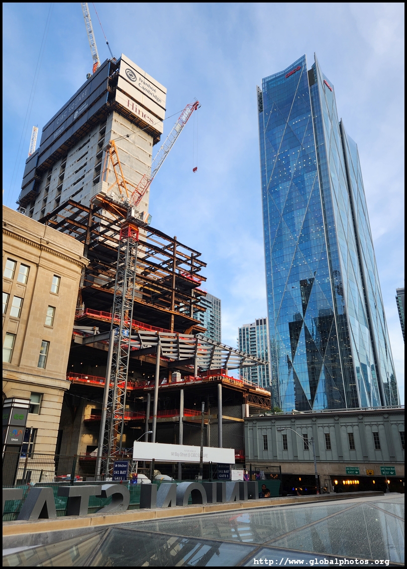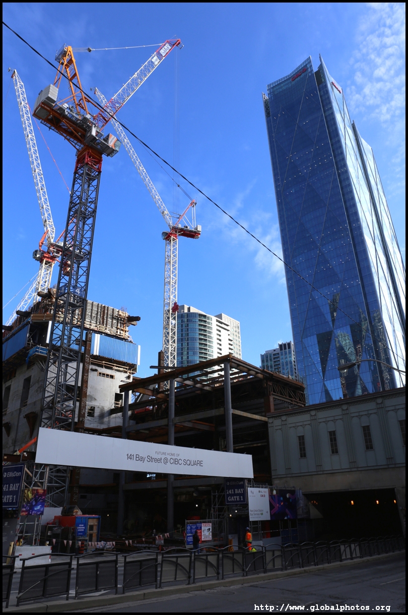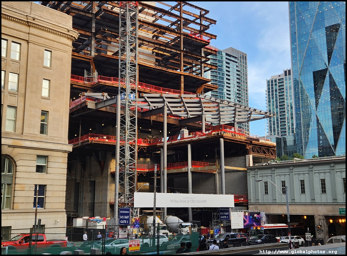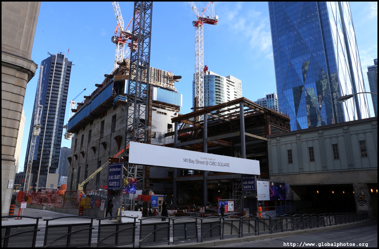 CIBC Square is a 2-tower office development around Union Station in the heart of downtown Toronto.The 49-storey South Tower has opened and the 50-storey North Tower is now under construction. The second phase is being financed by a syndicate green loan worth $780 million led by the Canadian Imperial Bank of Commerce in 2021, the largest ever green real estate construction loan in the country. The North Tower will house 1.5 million square feet of office space and connect with the South Tower through a 1-acre elevated park above the railway tracks. November 2, 2025