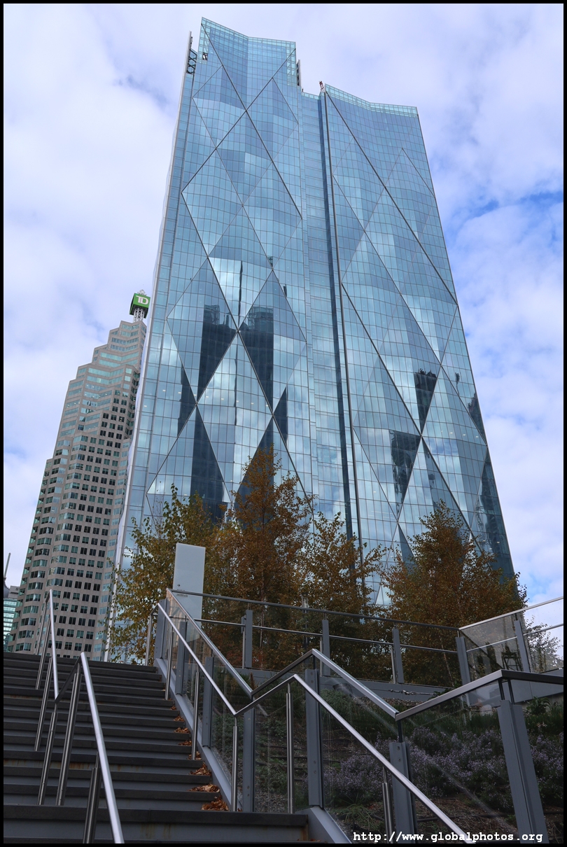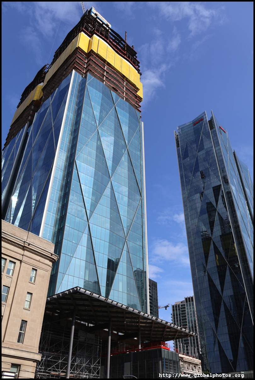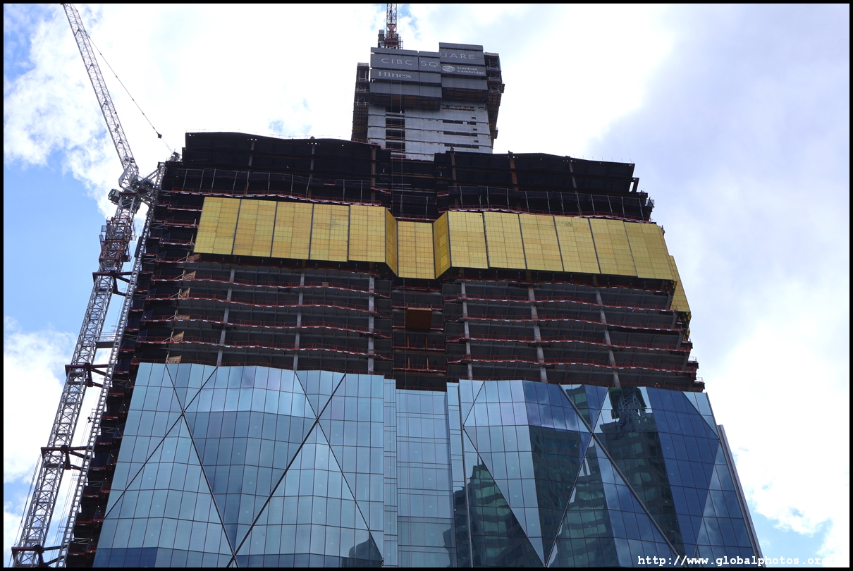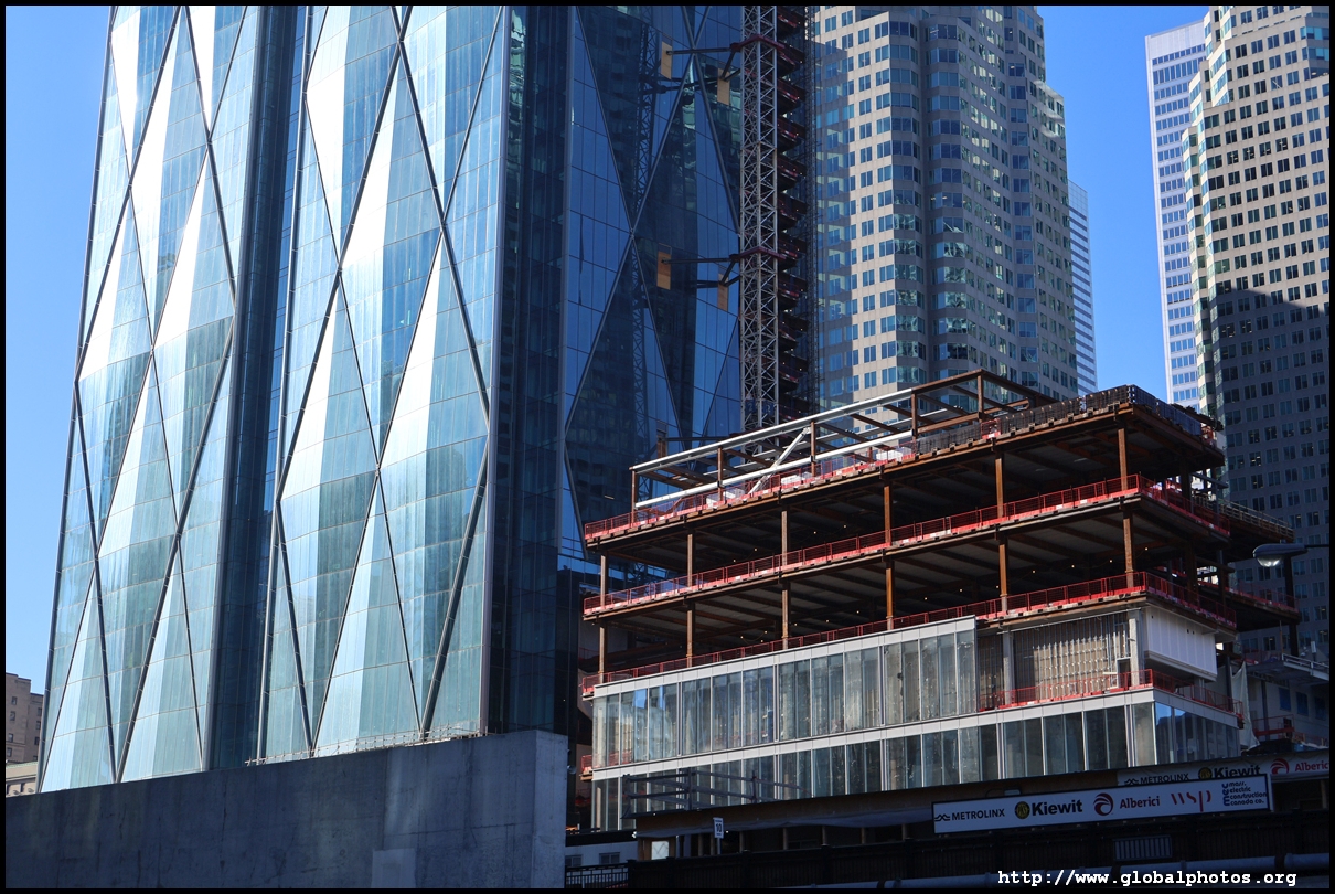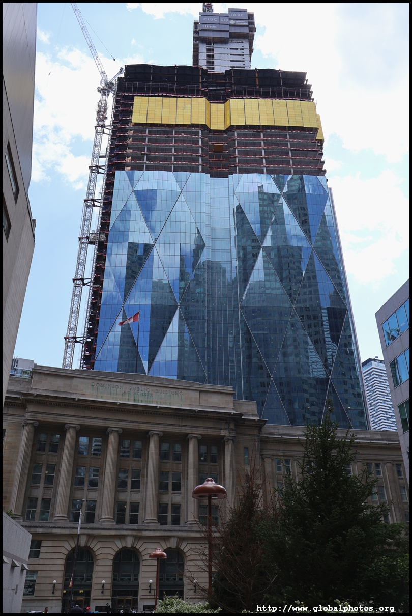 CIBC Square is a 2-tower office development around Union Station in the heart of downtown Toronto.The 49-storey South Tower has opened and the 50-storey North Tower is now under construction. The second phase is being financed by a syndicate green loan worth $780 million led by the Canadian Imperial Bank of Commerce in 2021, the largest ever green real estate construction loan in the country. The North Tower will house 1.5 million square feet of office space and connect with the South Tower through a 1-acre elevated park above the railway tracks. November 2, 2025