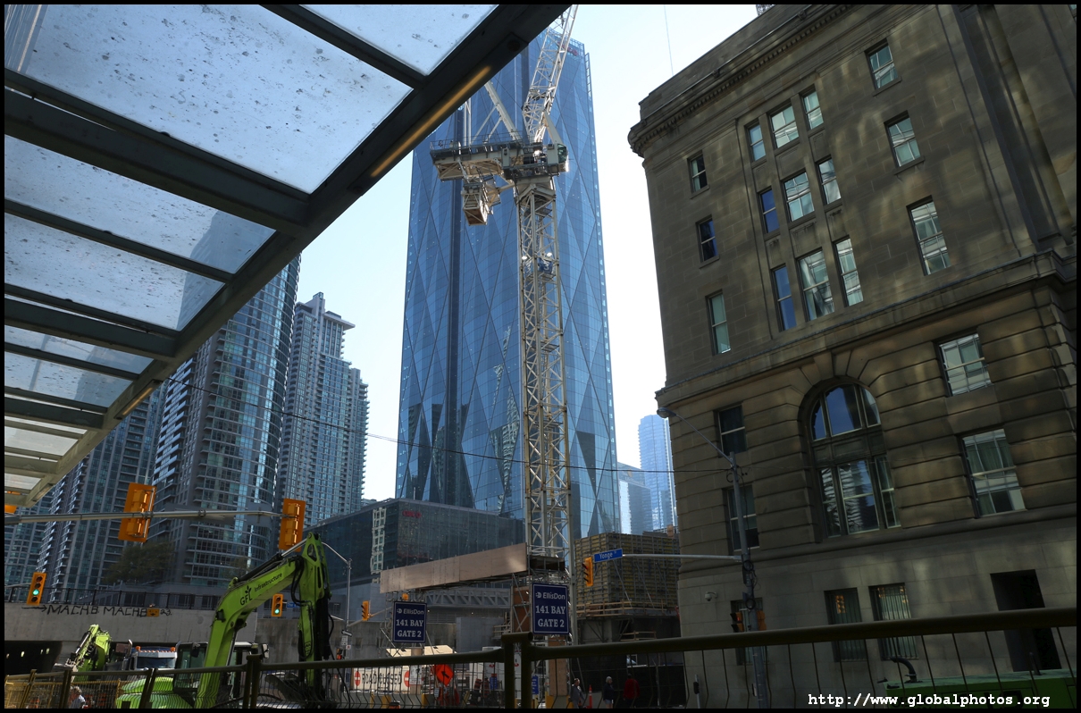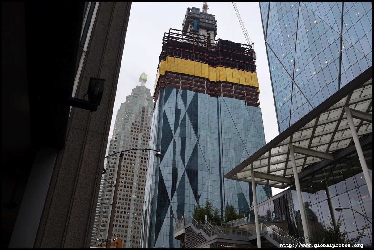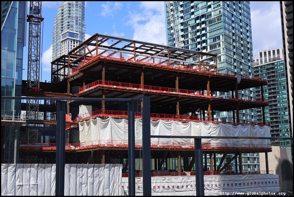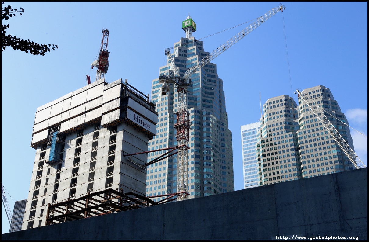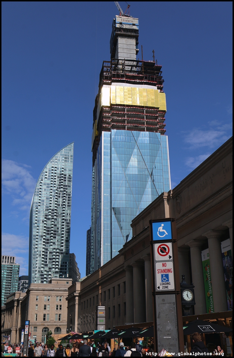 CIBC Square is a 2-tower office development around Union Station in the heart of downtown Toronto.The 49-storey South Tower has opened and the 50-storey North Tower is now under construction. The second phase is being financed by a syndicate green loan worth $780 million led by the Canadian Imperial Bank of Commerce in 2021, the largest ever green real estate construction loan in the country. The North Tower will house 1.5 million square feet of office space and connect with the South Tower through a 1-acre elevated park above the railway tracks. November 2, 2025