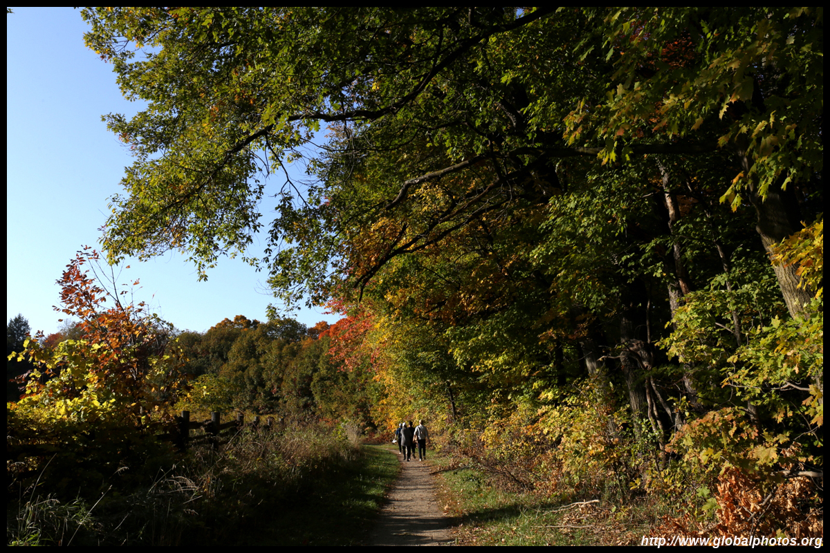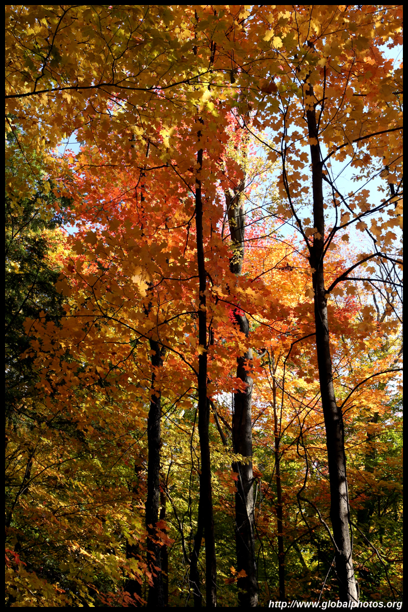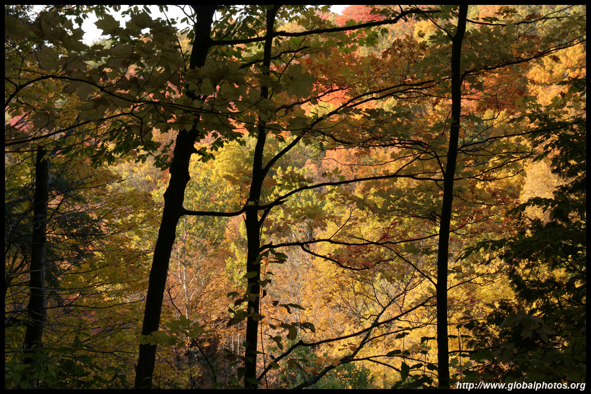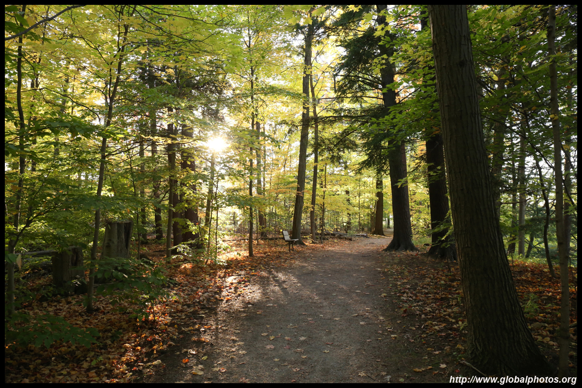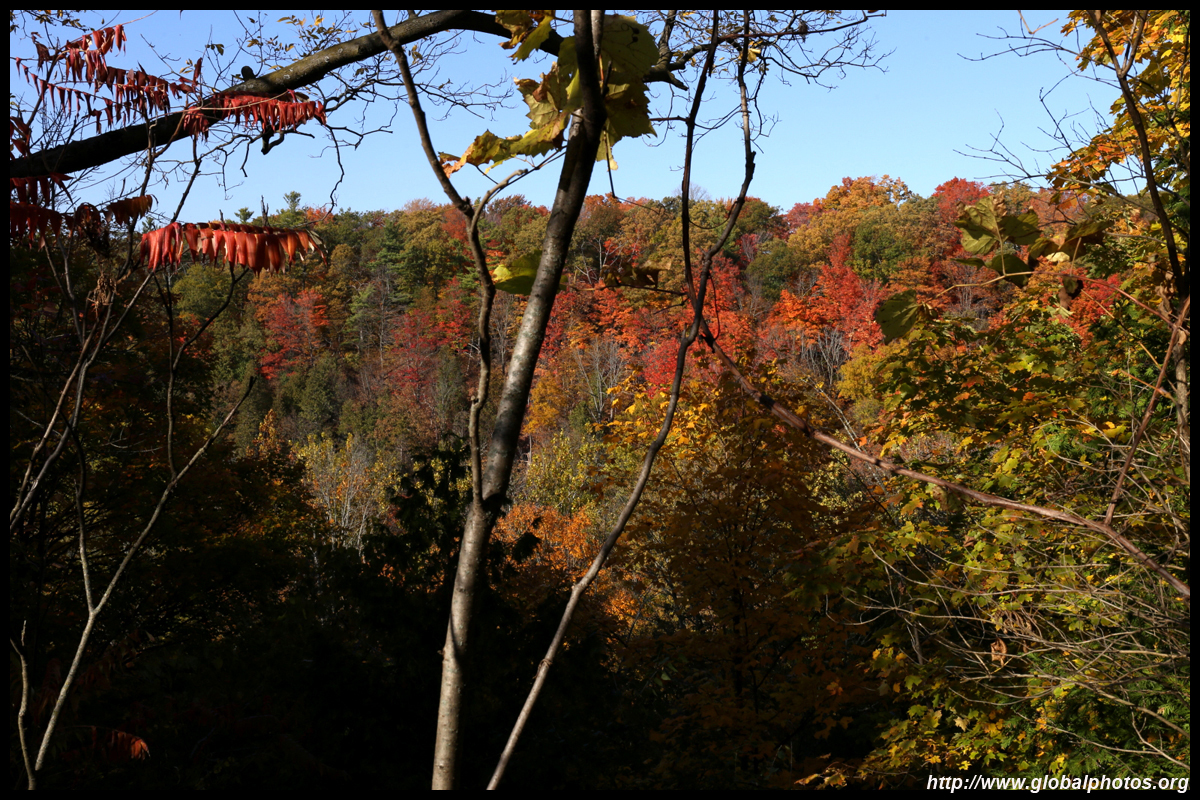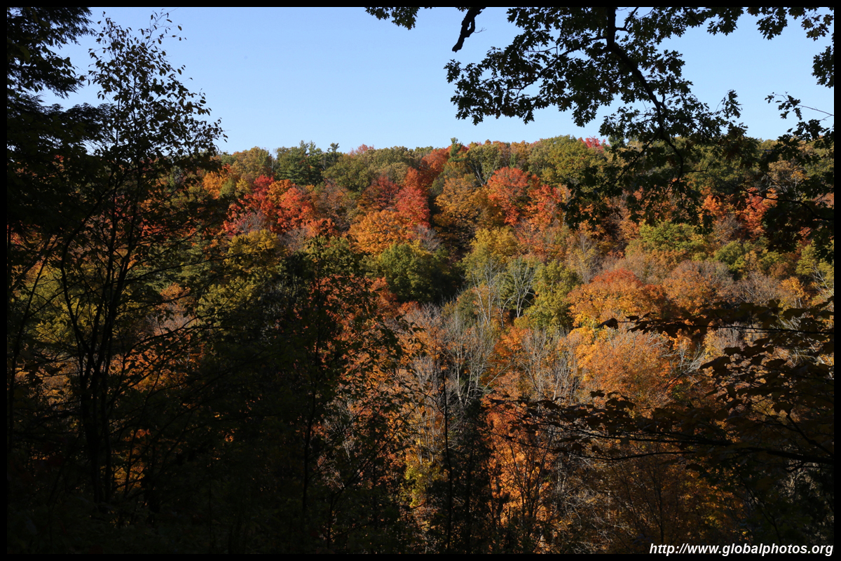 A bit closer to the city, Bronte Creek Provincial Park is located in Oakville, a western suburb. It has easy hiking paths through the forest that borders Bronte Creek Ravine, which drops up to 50m below. While there are no lookout points to admire the entire ravine's fall colours, the view from inside the forest is also nice with mushrooms on fallen logs and a canopy full of fullen leaves along the 1.8km Lookout Ravine Trail.