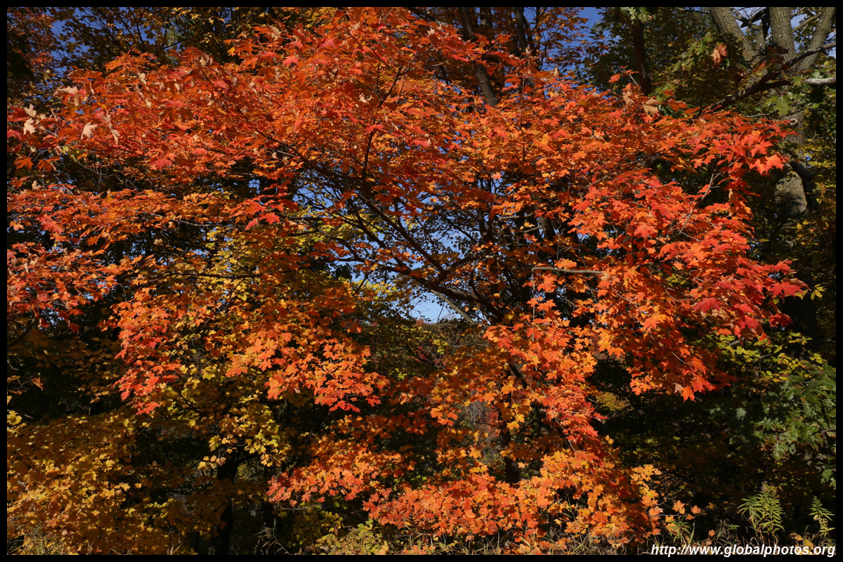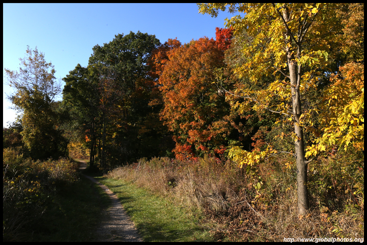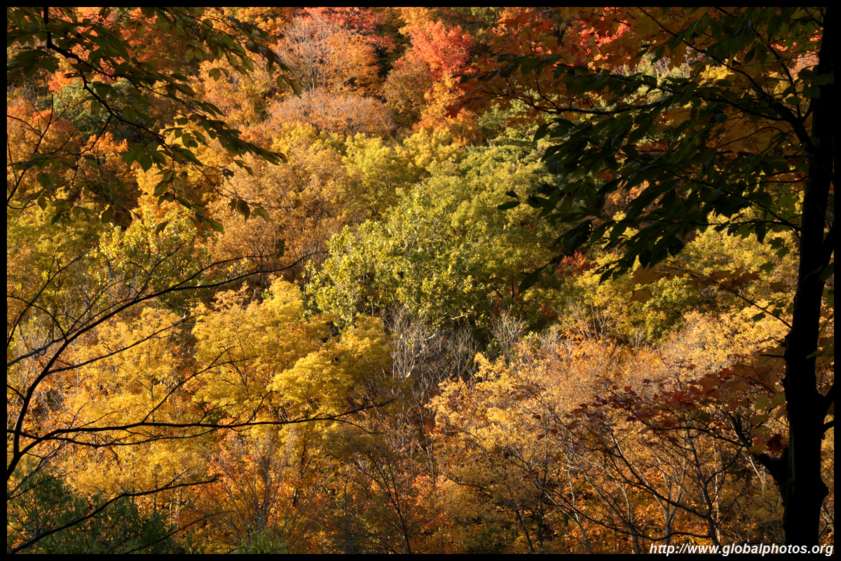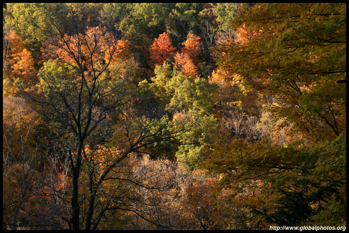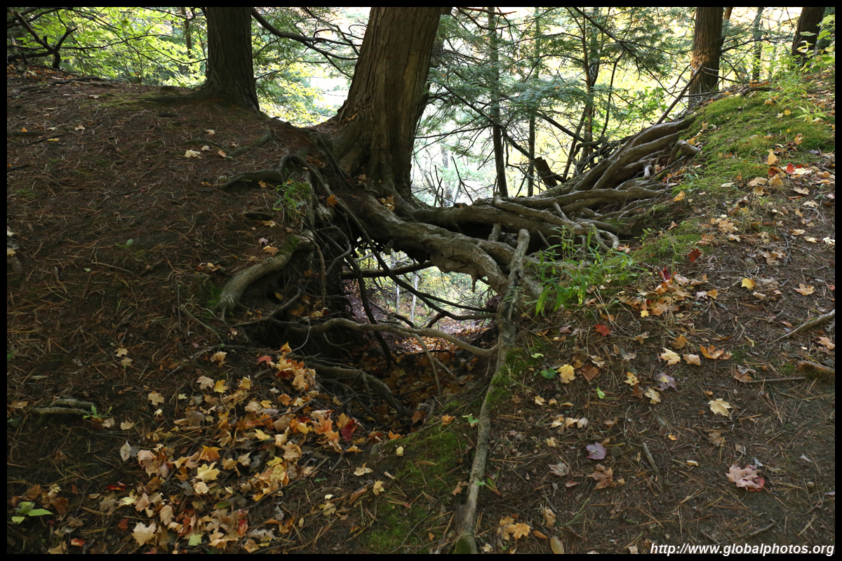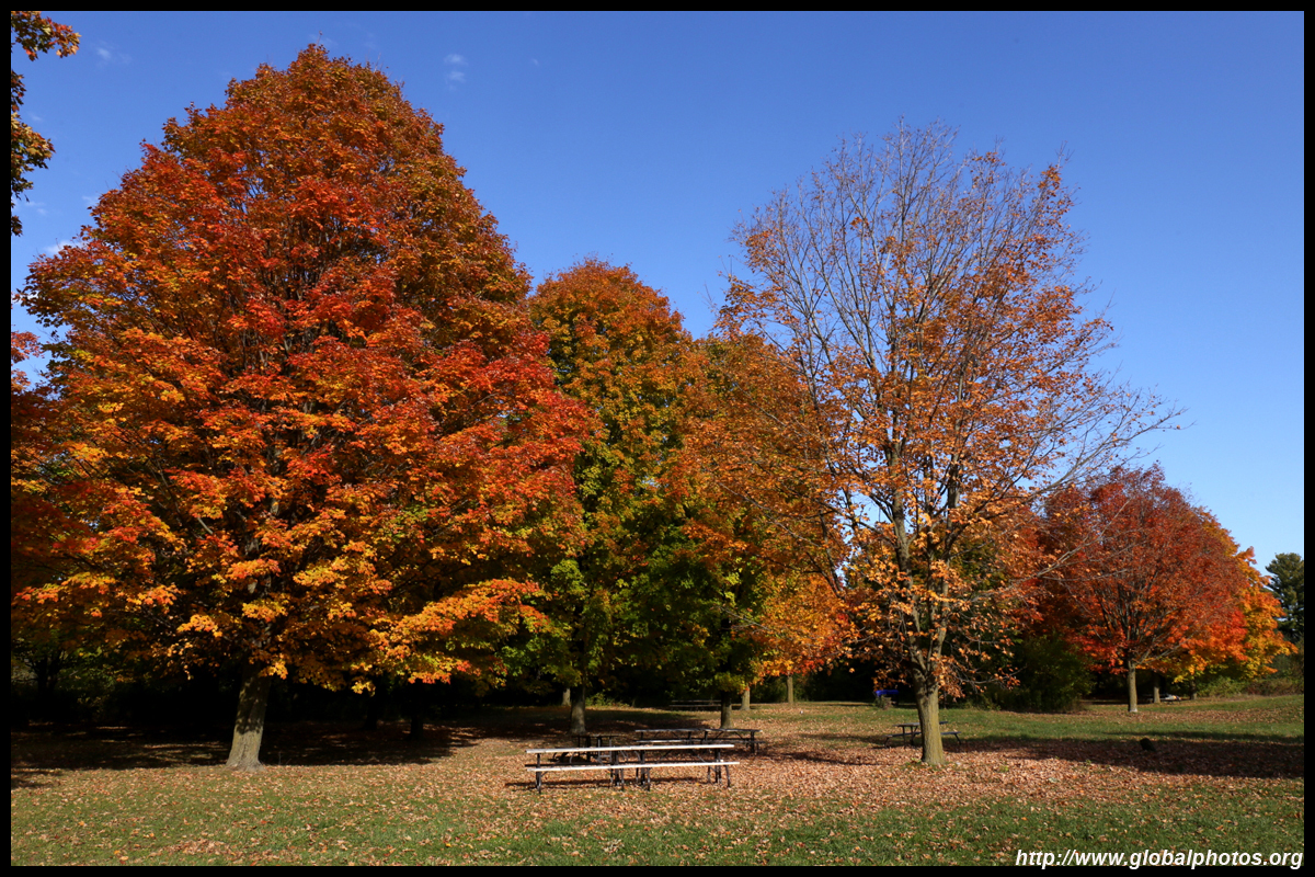 A bit closer to the city, Bronte Creek Provincial Park is located in Oakville, a western suburb. It has easy hiking paths through the forest that borders Bronte Creek Ravine, which drops up to 50m below. While there are no lookout points to admire the entire ravine's fall colours, the view from inside the forest is also nice with mushrooms on fallen logs and a canopy full of fullen leaves along the 1.8km Lookout Ravine Trail.