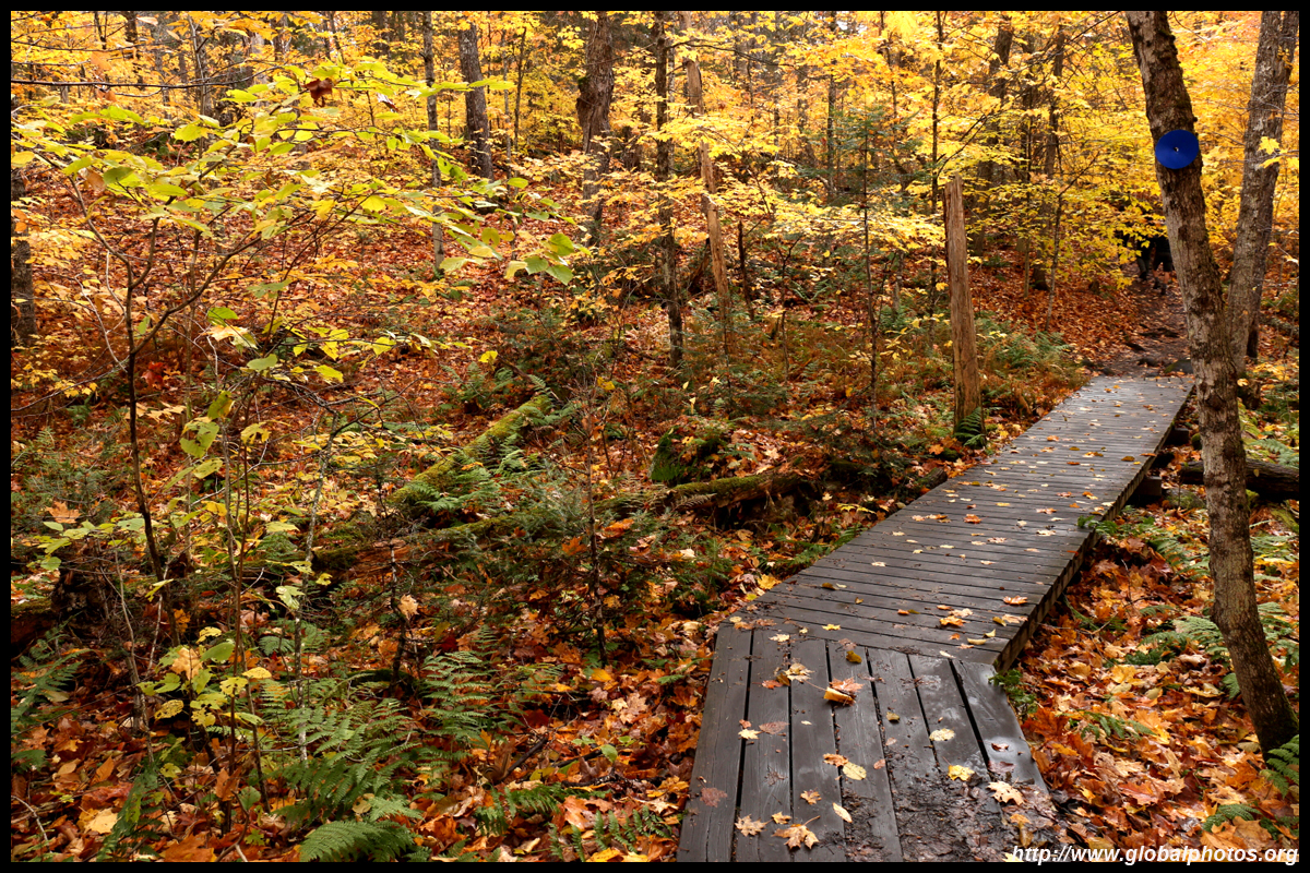 Algonquin Park is 300km north of Toronto and is one of the best places to see the fall colours. Despite the distance, many make the long journey north for the day trip. Getting here is fairly easy by highway and many of the key trails with views are accessible from Hwy 60, which traverses through the park.However, during peak season, arrive as soon as the West Gate opens before the hordes of tourists from Toronto reach here. You first need to make a turn-off from the highway to buy a day pass. The whole process is fairly well-organized so just pull your car up in line, tap your credit card for $21, grab a map, and get started. Your map will show the key trails and lookout points based on the km mark on Hwy 60. First stop is Track & Tower trail at km 25, which offers a good view at a canopy level. Don't do the entire trail but go as far as you are comfortable with the photos. I started with the western leg and walked about 2km deep into the woods.