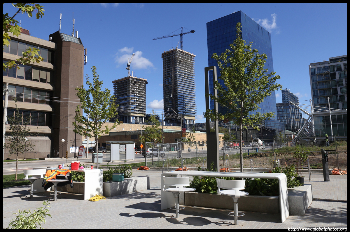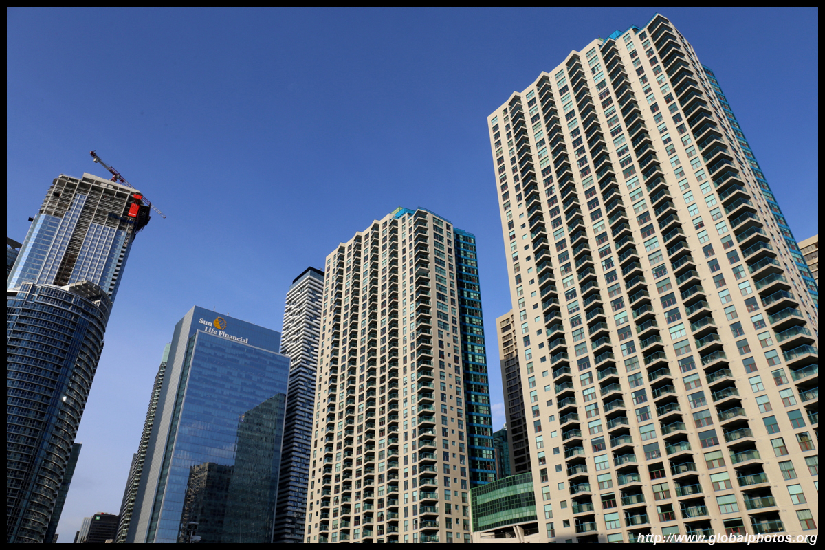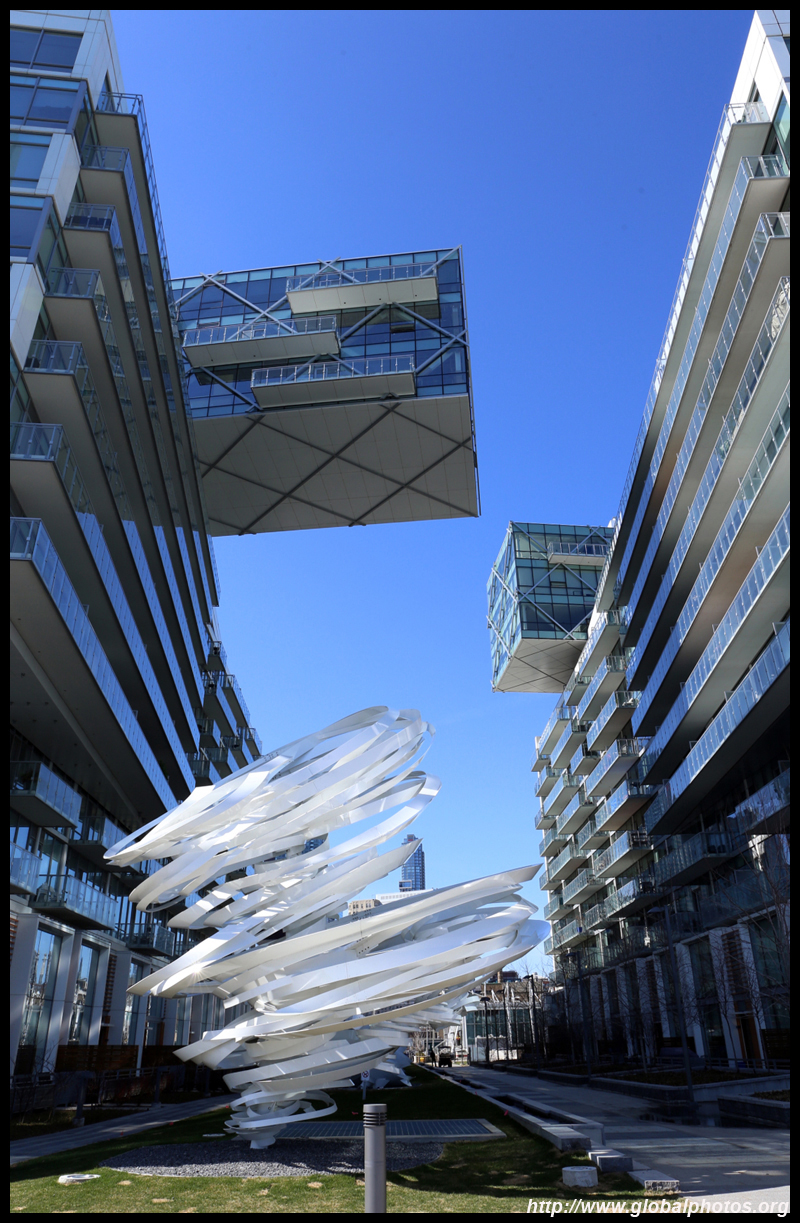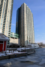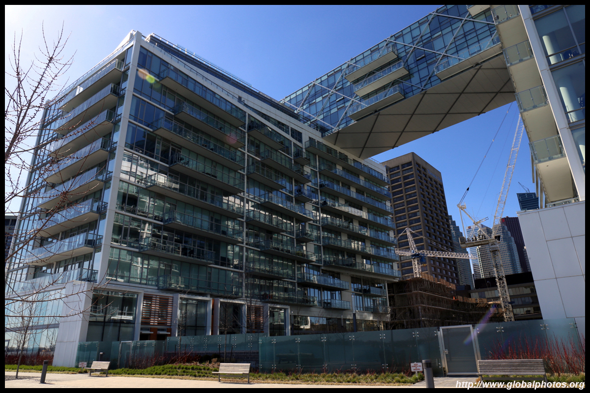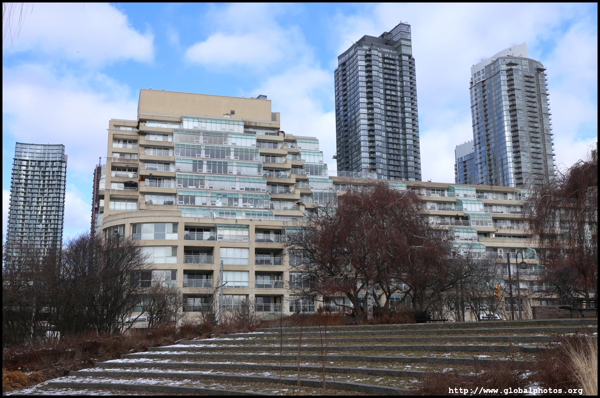 The Central Waterfront was once the city's shipping hub. Reclaimed from Front Street south over the past 2 centuries, the industry's decline gave an opportunity to revitalize the area into a residential district with the streetcar line running through Queens Quay. Stretching 2.5km from Bathurst to Lower Jarvis west to east, this oasis begins on the other side the crumbling Gardiner Expressway, which continues to form a barrier between the city and waterfront. Originally proposed to be demolished, that doesn't seem will materialize and if it does, construction will be difficult with more buildings approaching close to it.