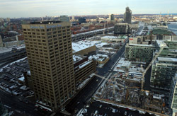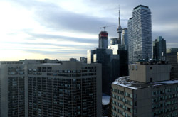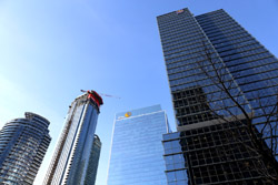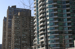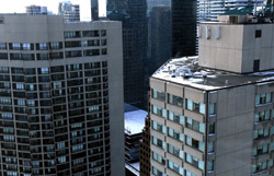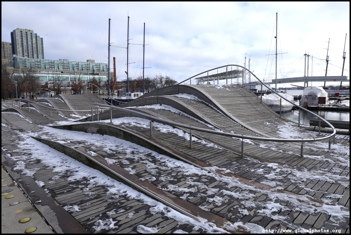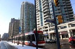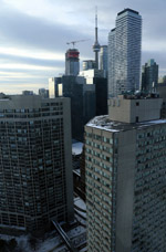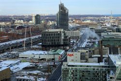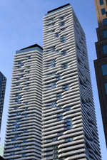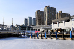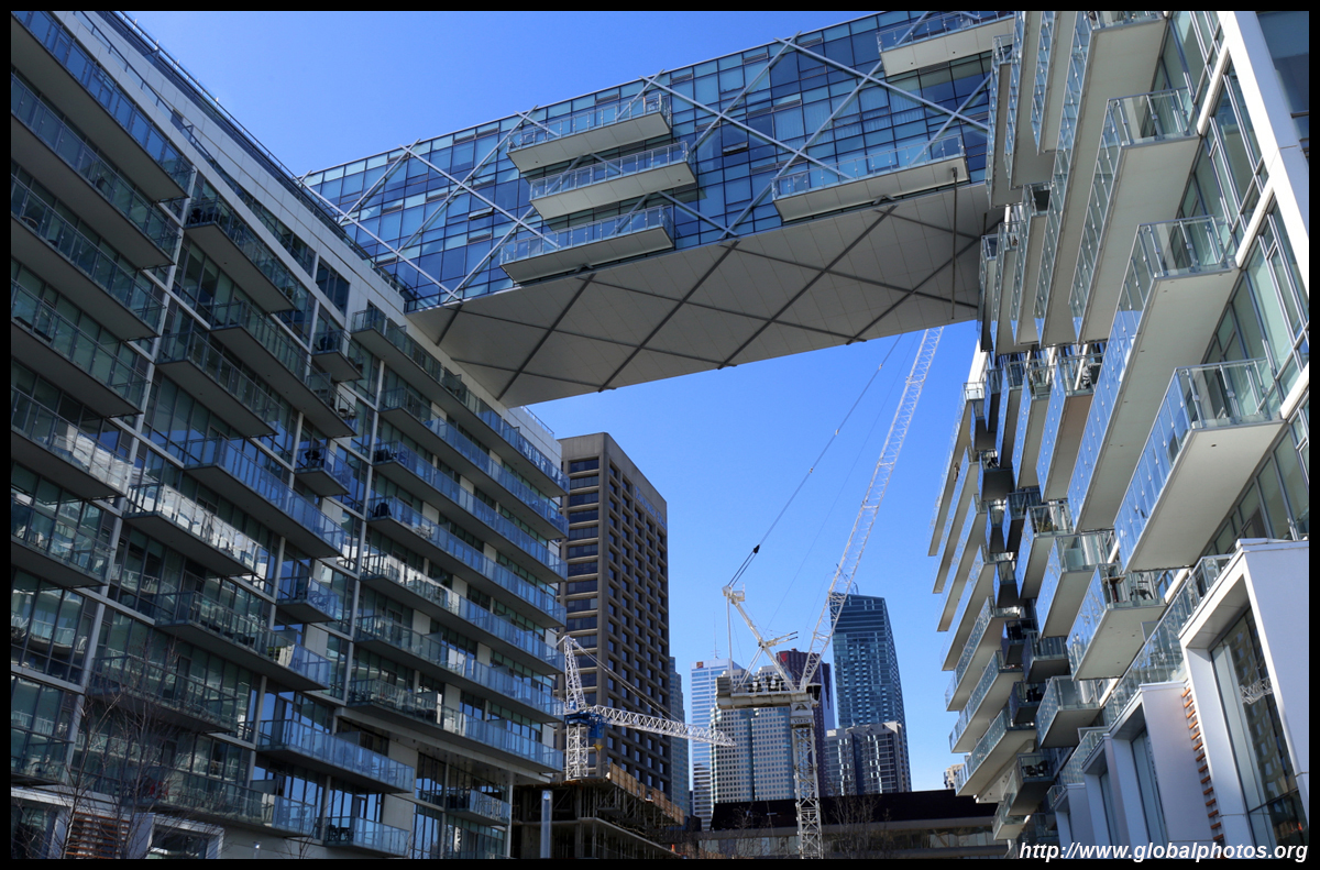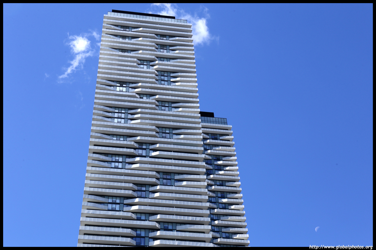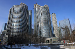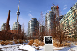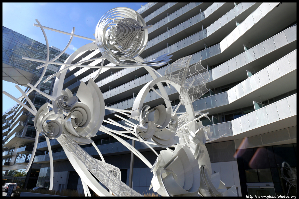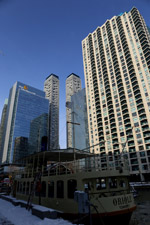 The Central Waterfront was once the city's shipping hub. Reclaimed from Front Street south over the past 2 centuries, the industry's decline gave an opportunity to revitalize the area into a residential district with the streetcar line running through Queens Quay. Stretching 2.5km from Bathurst to Lower Jarvis west to east, this oasis begins on the other side the crumbling Gardiner Expressway, which continues to form a barrier between the city and waterfront. Originally proposed to be demolished, that doesn't seem will materialize and if it does, construction will be difficult with more buildings approaching close to it.