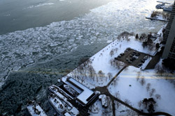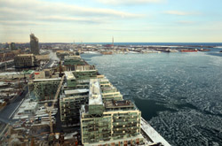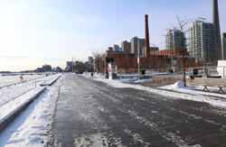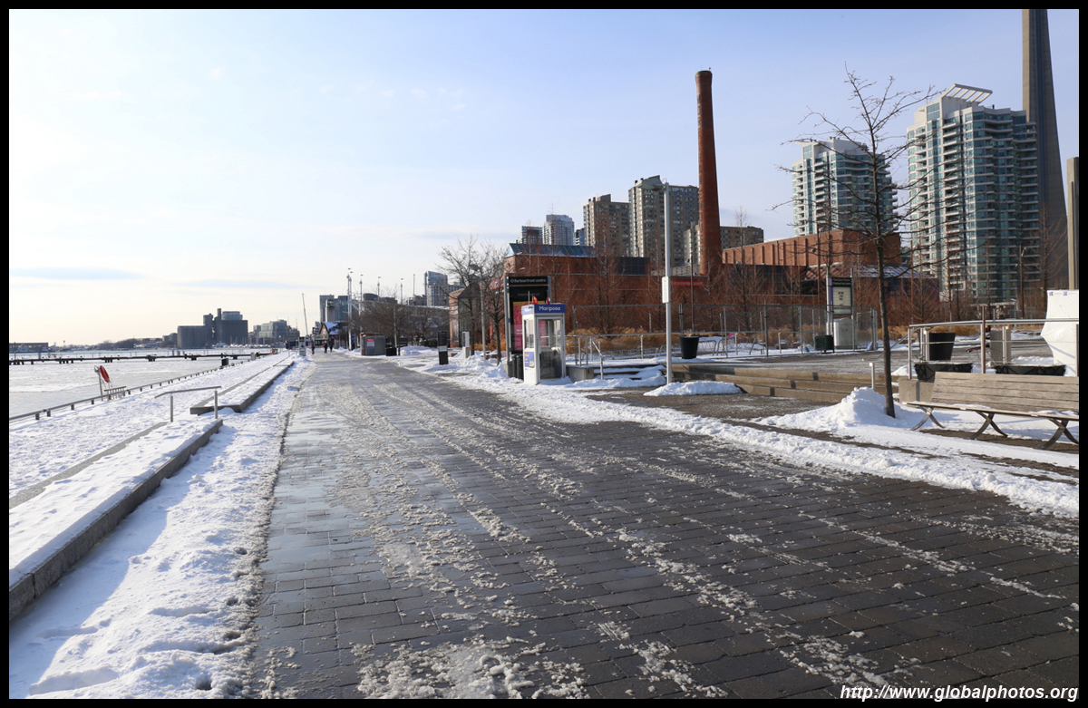 Toronto's harsh climate makes strolling along the lakefront a deadly activity in the long winter. The harbour can even freeze over, like it did in January 2018.