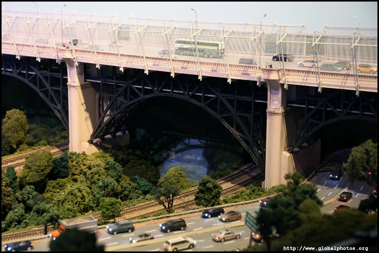 Suicide prevention nets were installed on the Bloor Street Viaduct to prevent people from dropping onto the highway or train tracks below. This bridge is unique as the subway uses the bottom deck beneath the vehicles.